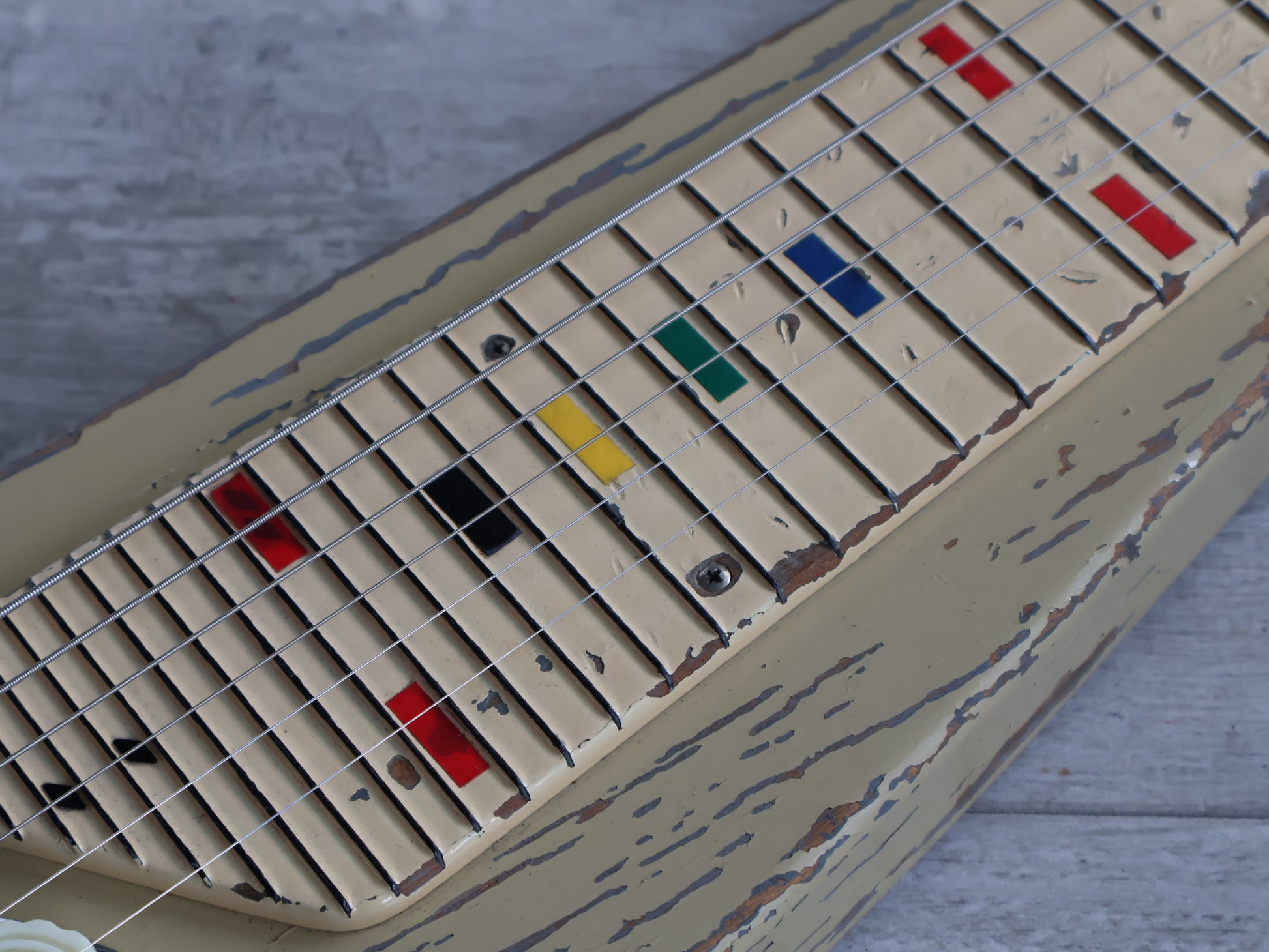 A very vibey 6-string lap steel from Teisco made in the 1960's. Restrung and tuned to open D, fully functional electronics and sounds great!
