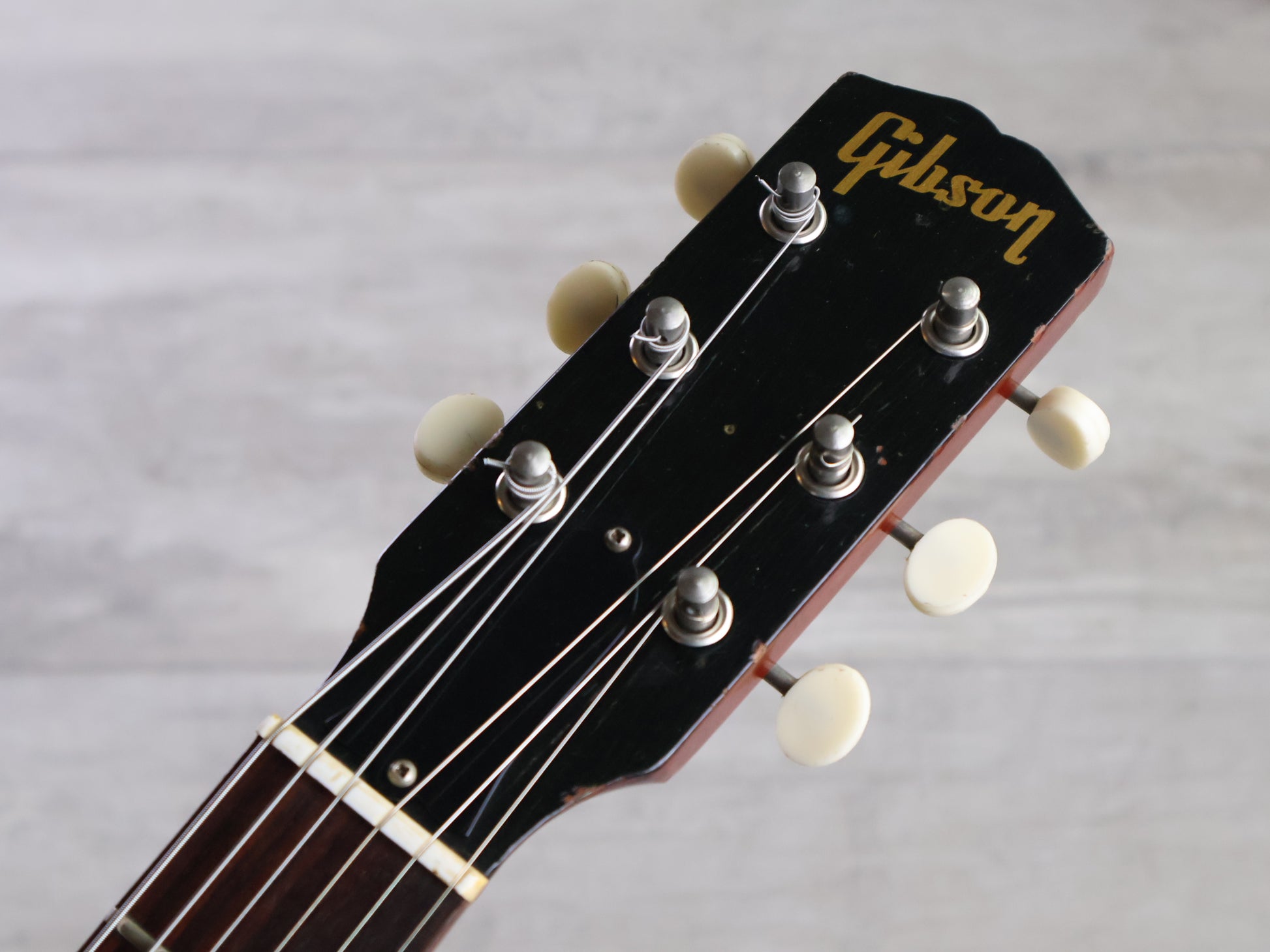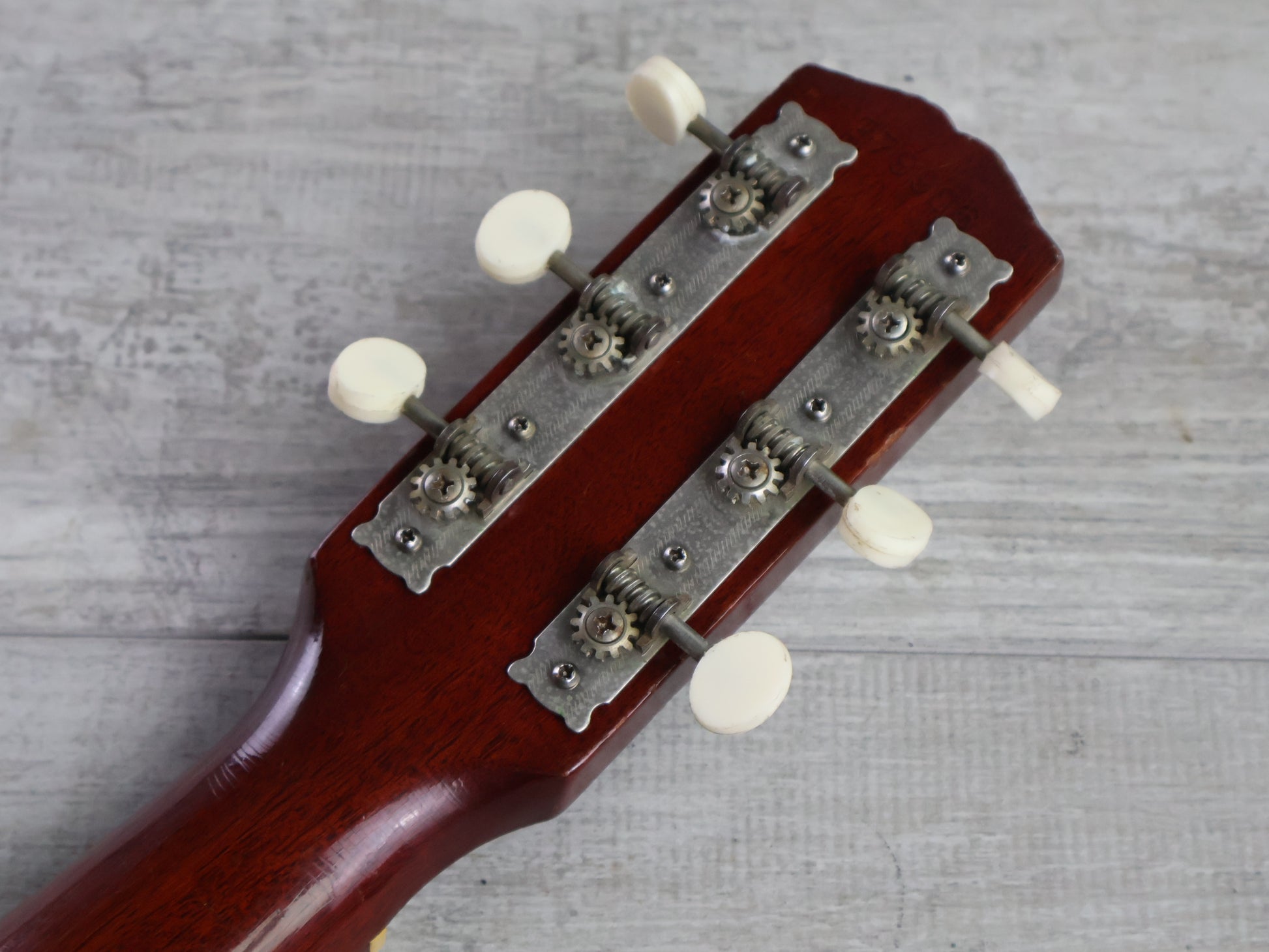 A simple 60 year old workhorse and a great example of "Affordable Vintage". Made in the USA in 1965, plays great with a nice straight neck and adjustable truss, the frets have some wear but still play smoothly. Weighs just 2.4kg's.