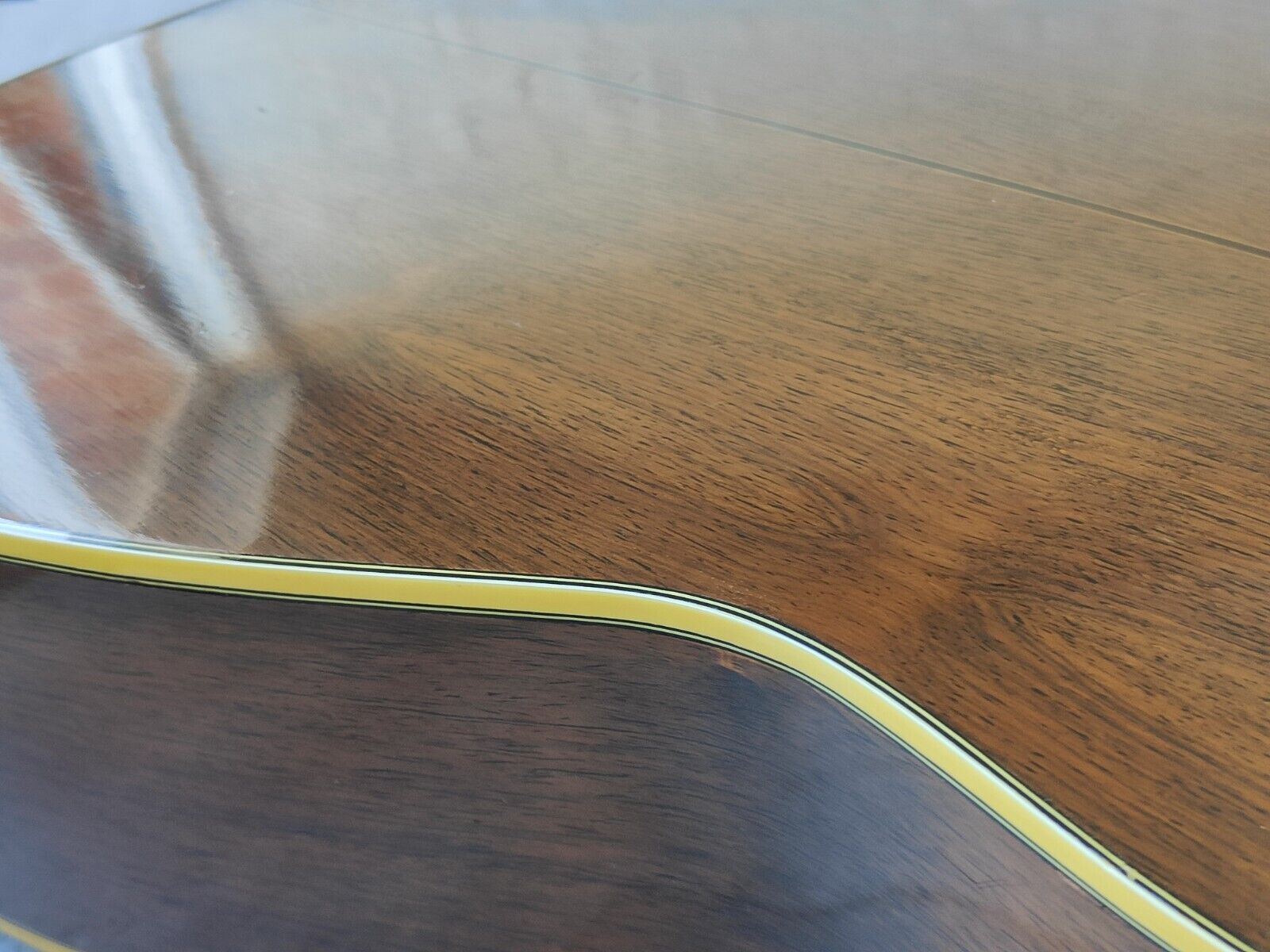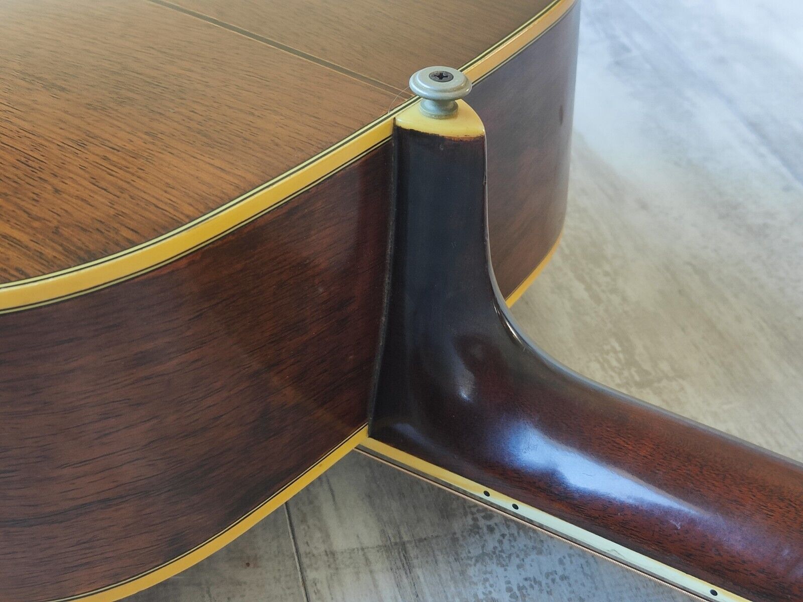 Good vintage condition as pictured with some basic wear, received a restring and basic setup prior to listing including a fret polish and fretboard oil. Frets show some wear and pitting but are shiny and the neck is straight with a fully functional truss, plays well with a medium action (3.25mm at the 12th fret on the low E), saddle has some room to lower it more if need be.