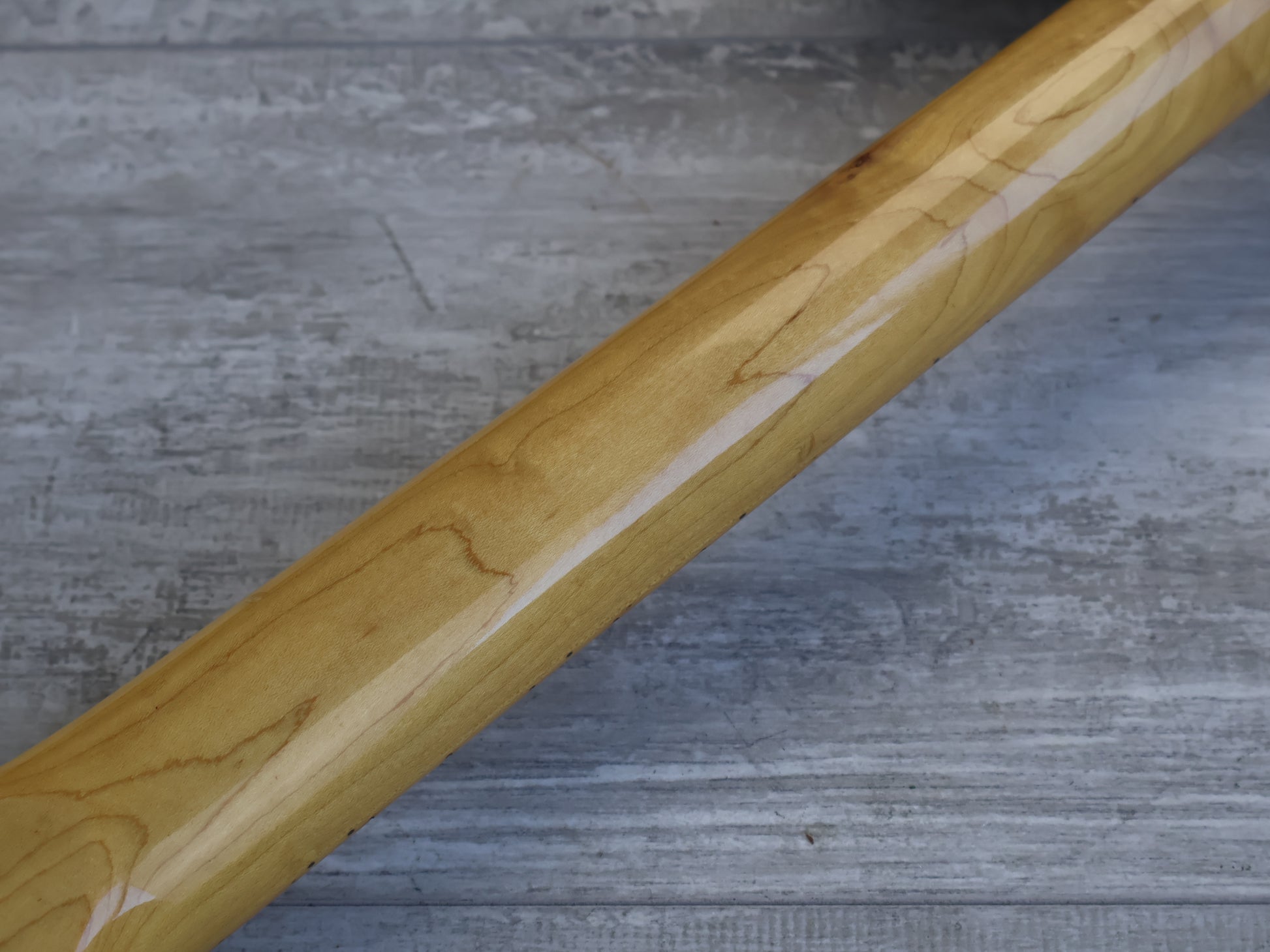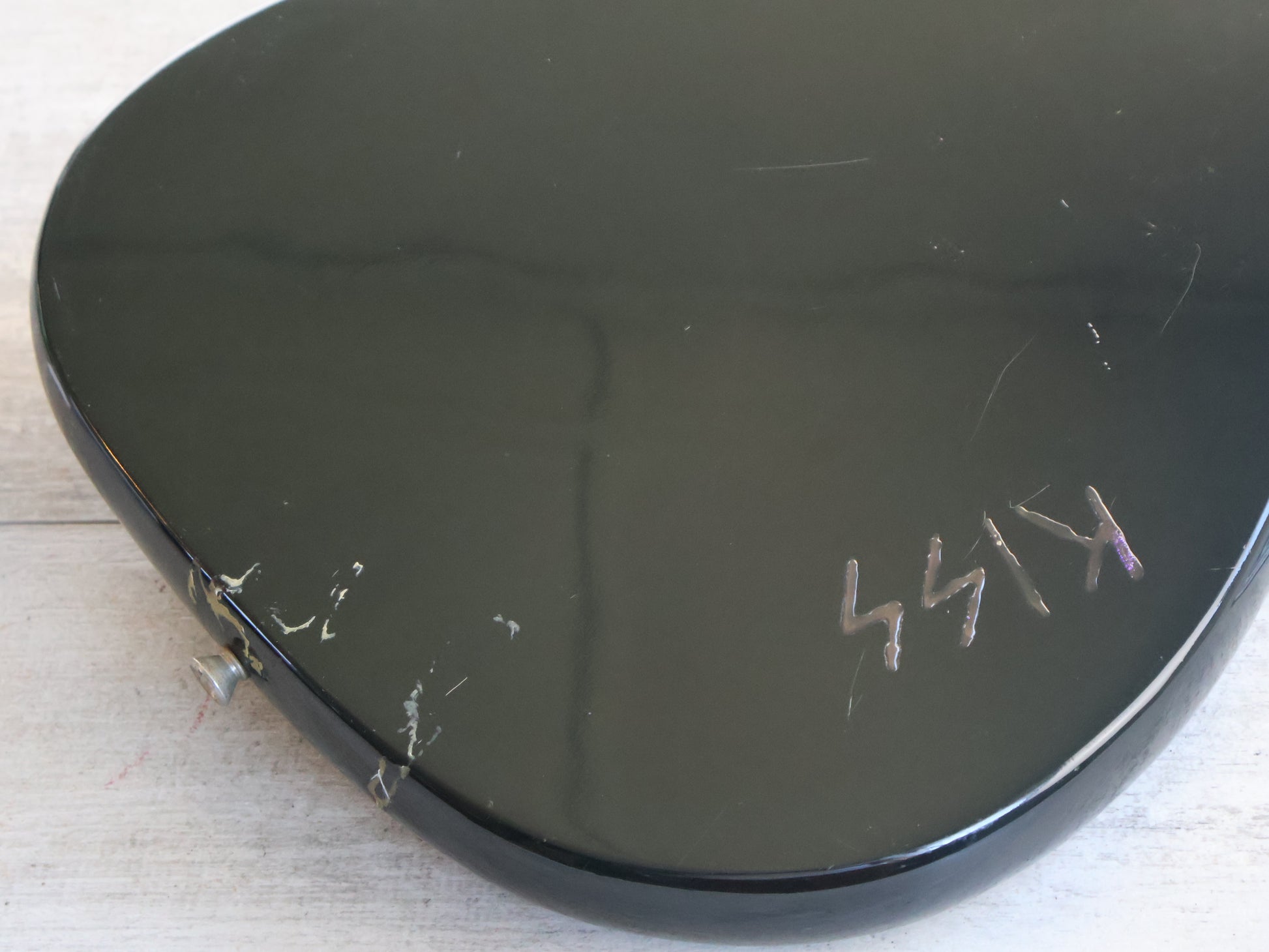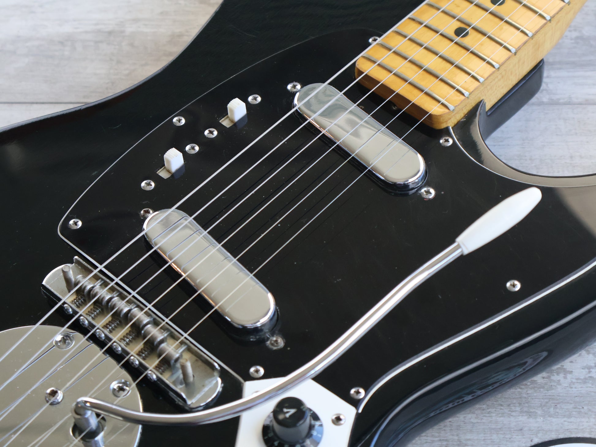 Glossy black finish with what looks to be a basswood body, rounded maple neck and thick maple fingerboard (610mm scale length with 22 frets and a 42mm nut width), it weighs 2.9kg's.