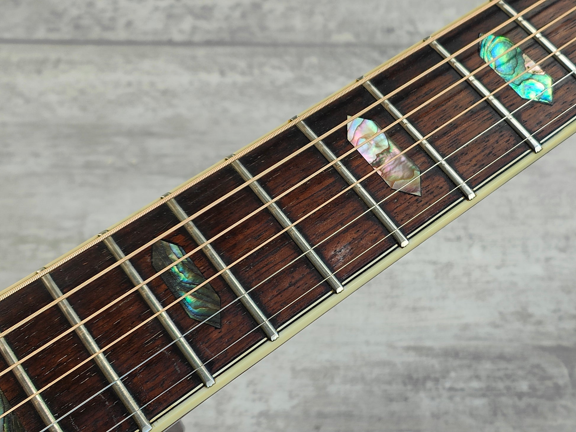 Good vintage condition with some dings and wear as pictured, frets are used but play well, the neck is straight with a functional truss. A nice higher-end build that was handmade and features much higher components and woods than basic models including factory Grover tuners and abalone inlays.