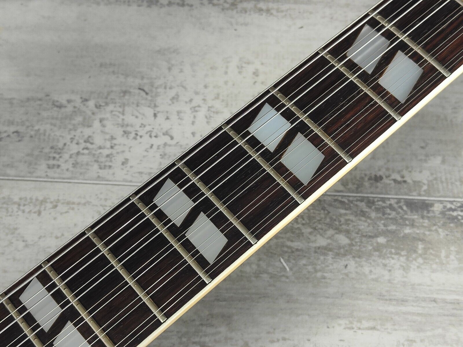 The kind of guitar that almost everyone dreams about but only a select few can actually handle. This is an unknown (headstock logo missing although two small holes remain where the badge would have been) Japanese replica of the Gibson EDS-1275 that was made in the mid 1970's. A big beefy mahogany body with two bolt-on maple necks and 20 fret rosewood fingerboards, it weighs 5.7kg's. This one wears all the Gibson trimmings including an open-book headstock and split inlays, it appears all original with Maxon made humbuckers (chrome covered on the 12 and zebra uncovered on the 6) that have plenty of clarity and bite.