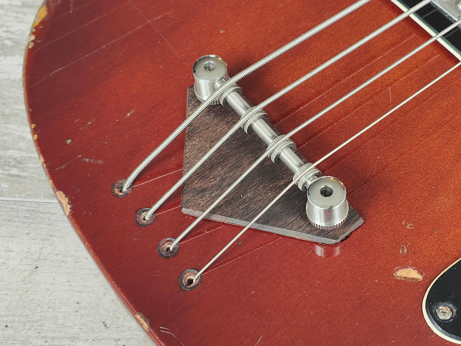 An early 1970's Maya branded SG Bass from Japan. Modified with a new bridge system, only the neck pickup works. Very cool old thing, give it a bit of work or just love it as it is, it was given a setup/service prior to listing.