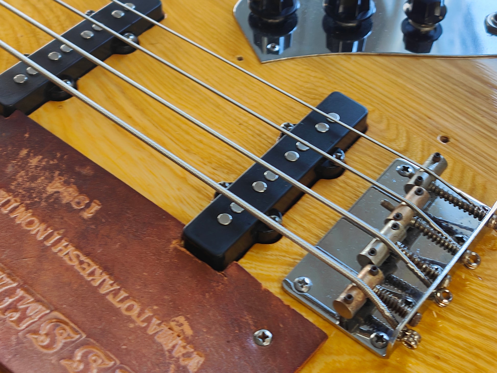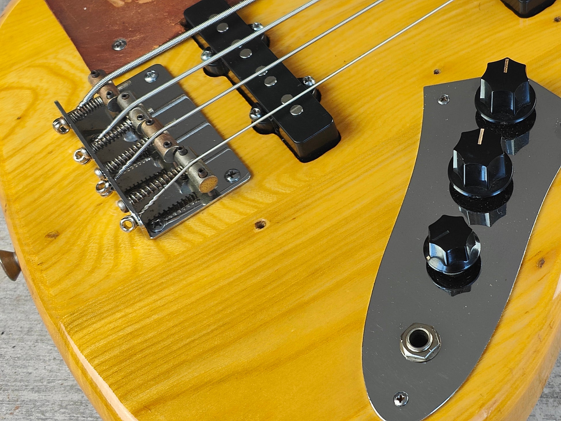 Made in Japan in 1973, this JB500N (that we've nicknamed "the Bassman" because of the leather patch that was installed by the previous owner) was the Greco model that aimed at replicating Fender's 70's Jazz Bass. Sen ash body with a maple neck and bound maple fingerboard (with block black inlays), it weighs 4.3kg's. Has an aftermarket pair of unknown pickups installed and is missing the pickguard.