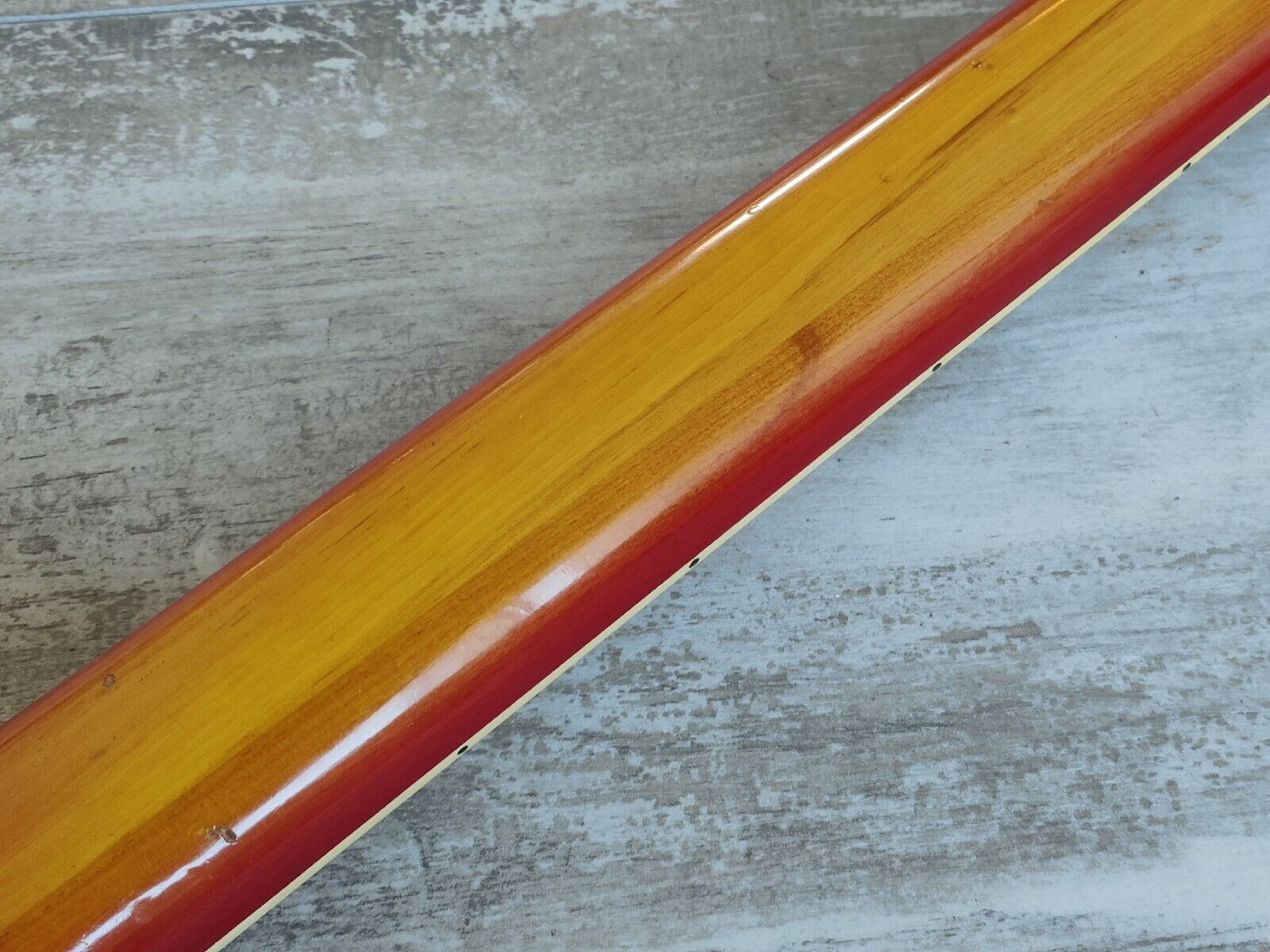 This guitar received a rebuild from our in-house tech to fix some pretty severe sinking of the top around the neck pickup. It's now been brought back up with the addition of a V brace in the middle and shoulder bracing alongside the neck pickup to raise the top back to normal and prevent further movement. He also repaired the binding along the top edge where it was previously separated. Vintage frets are shiny and play smooth, contact us for a professional re-fret quote if you'd prefer some new ones though.