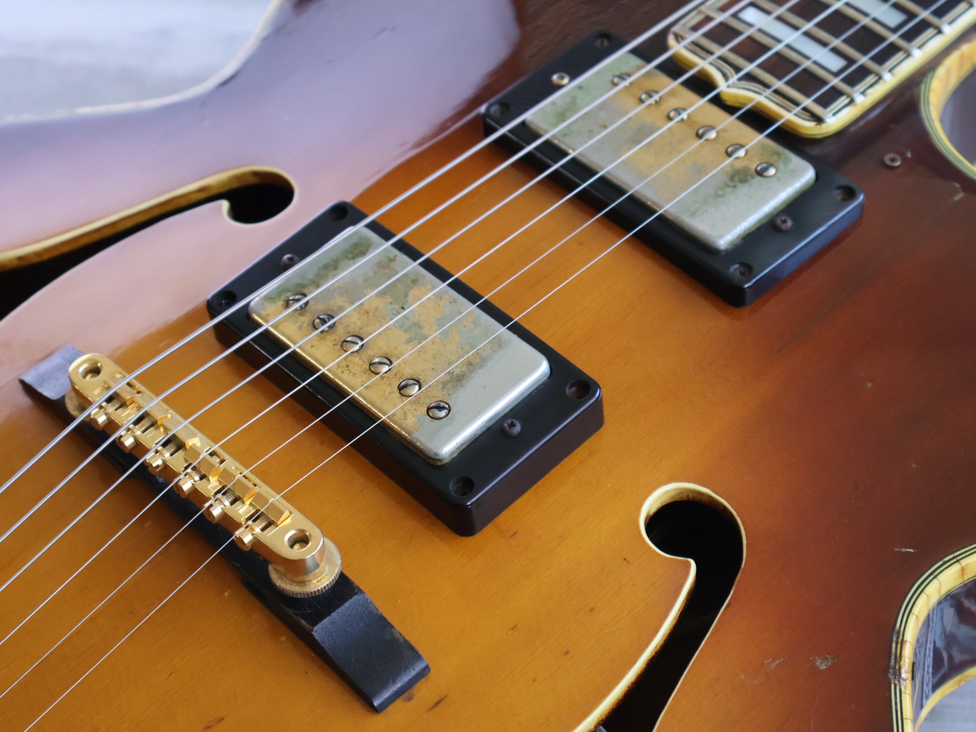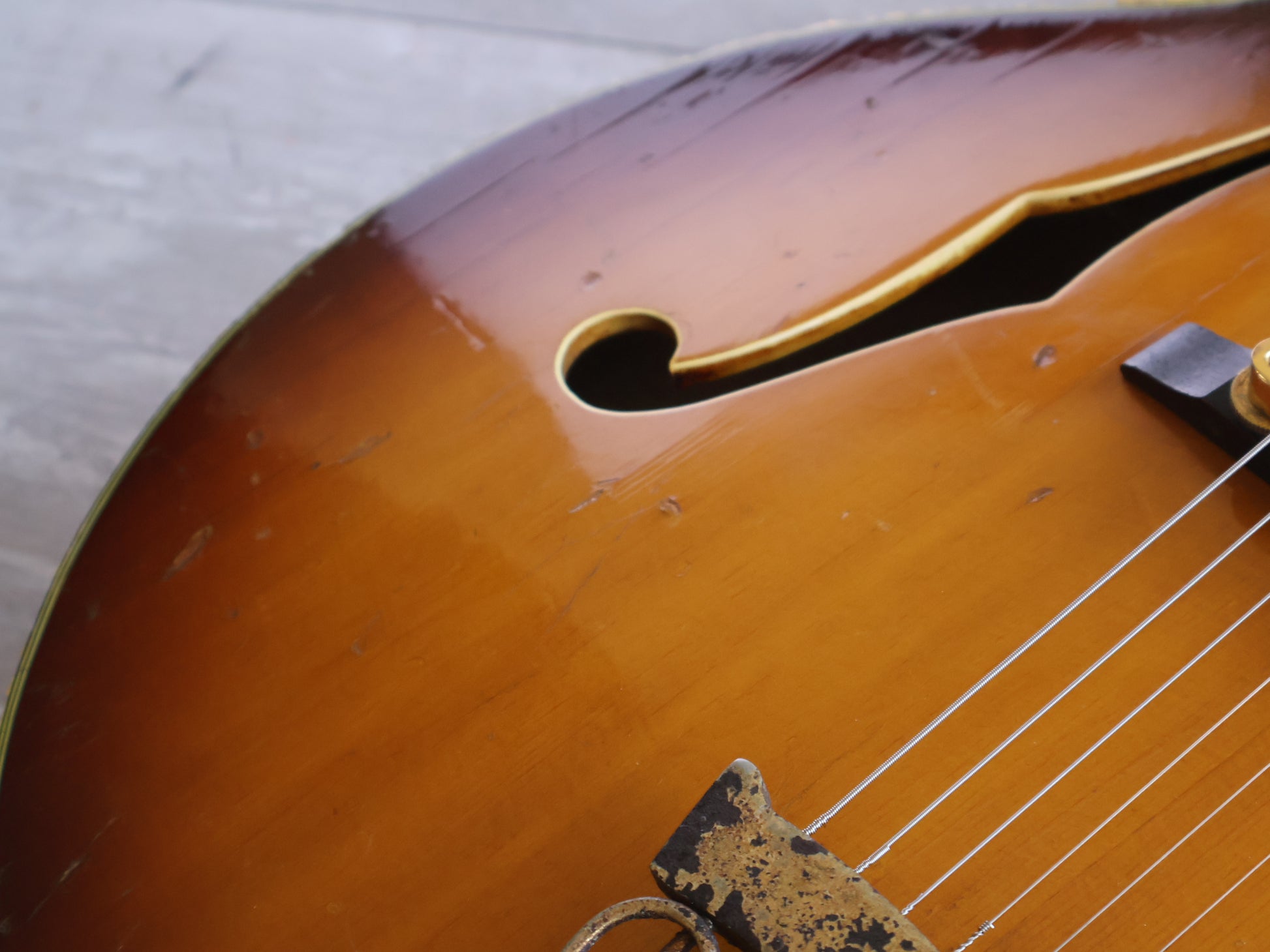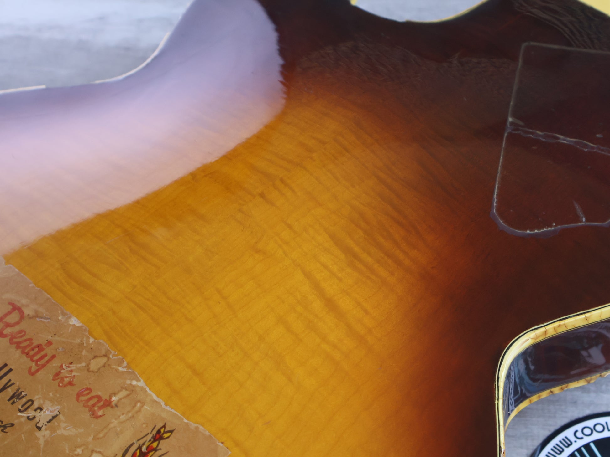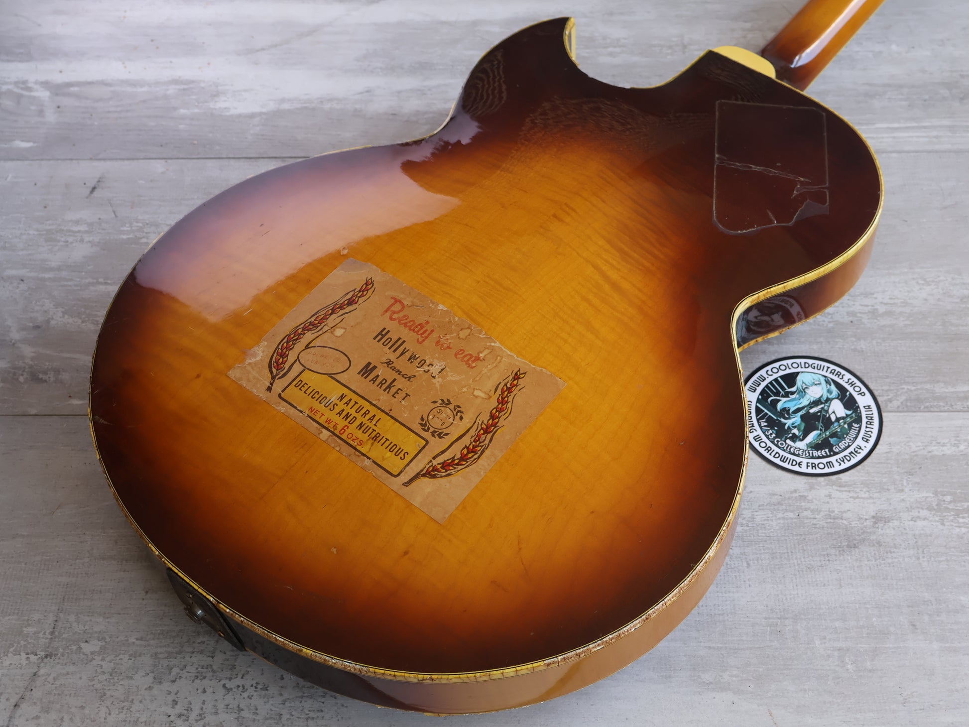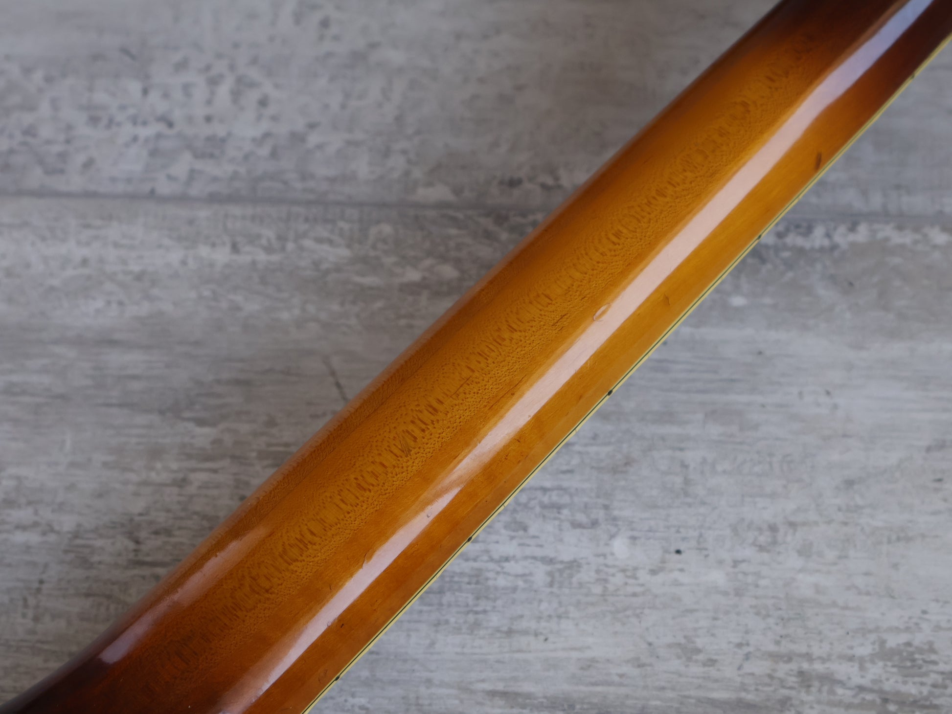 Reasonable condition for a mid 70's build with no breaks or repairs and a shiny, clean sunburst finish. The neck is straight and the truss adjusts as it should, the frets are shiny with some pitting but life left. The binding has crumbled on the body, it's reasonably stable as is but will likely continue to flake.