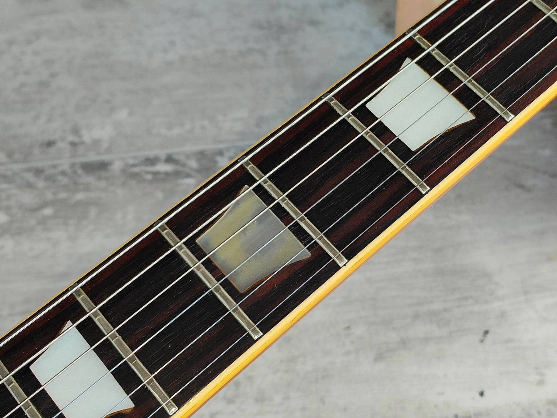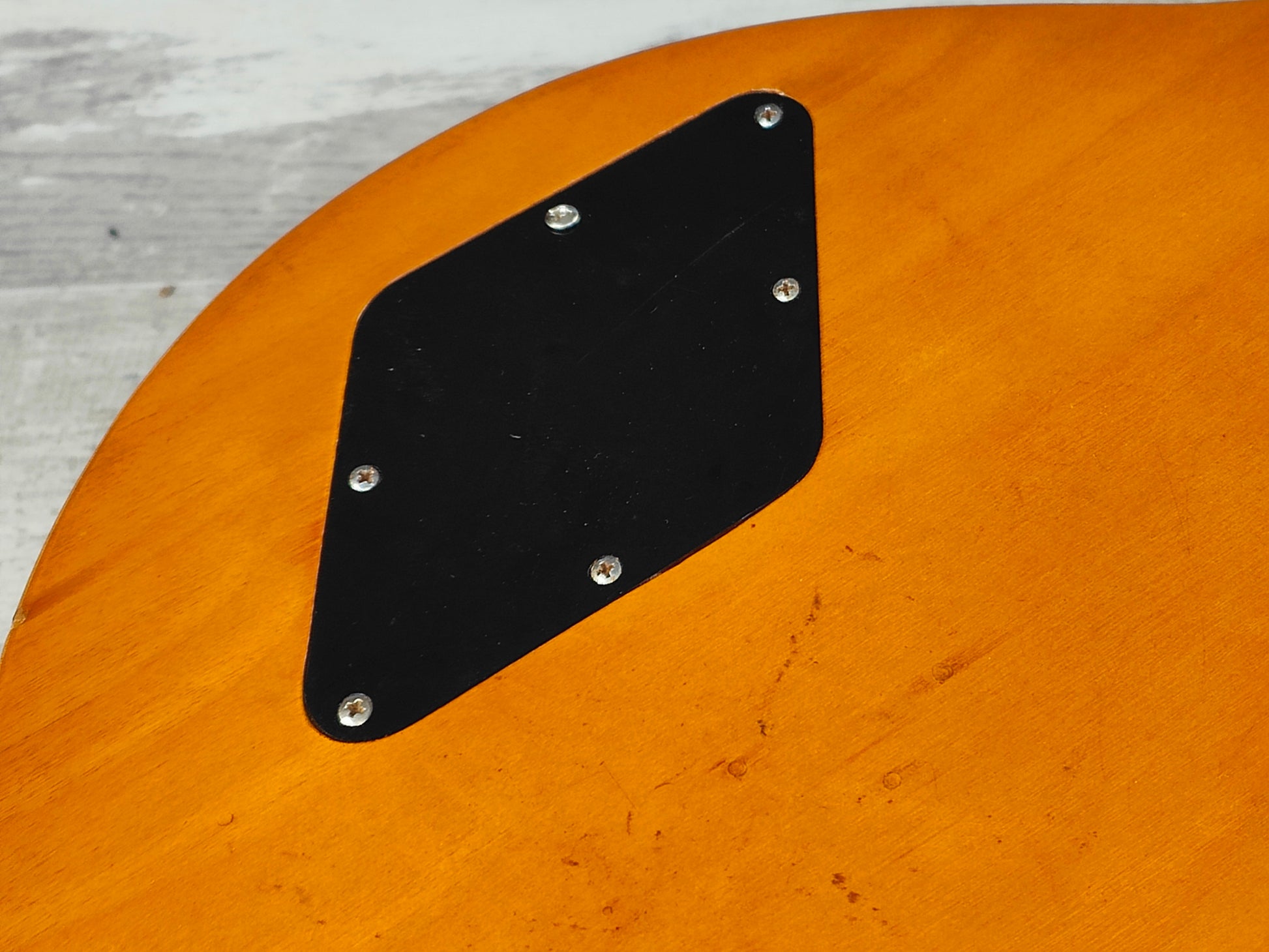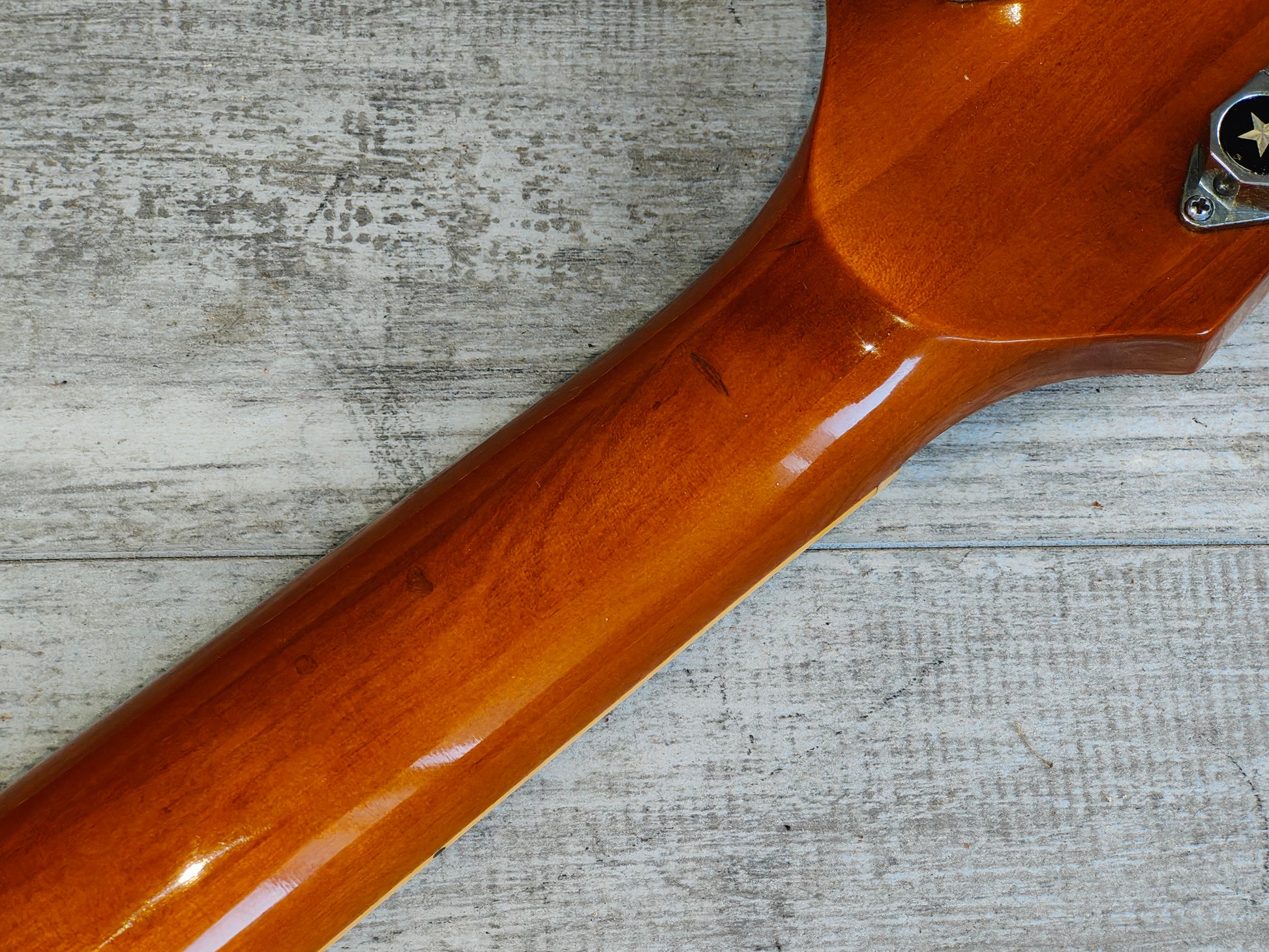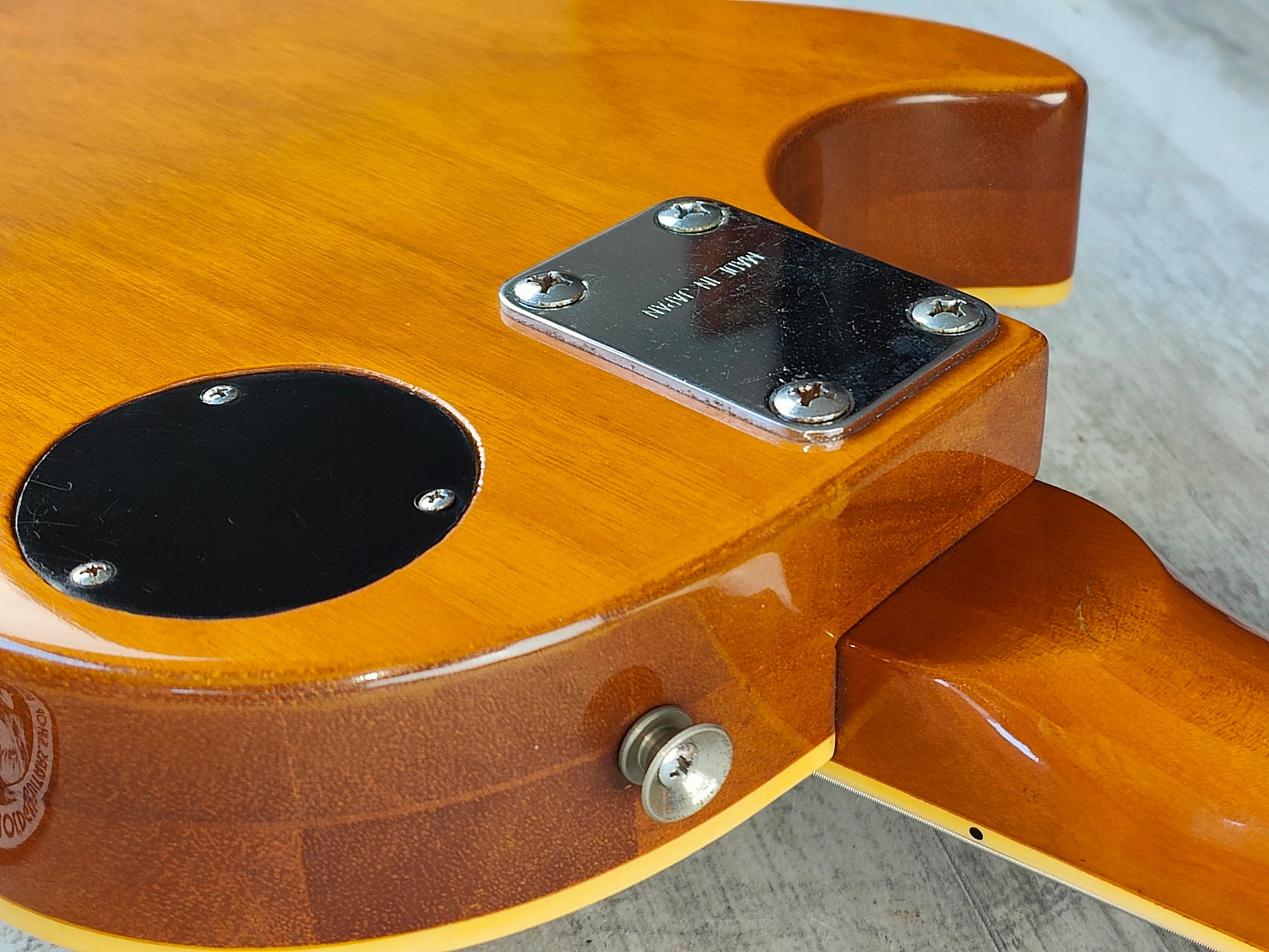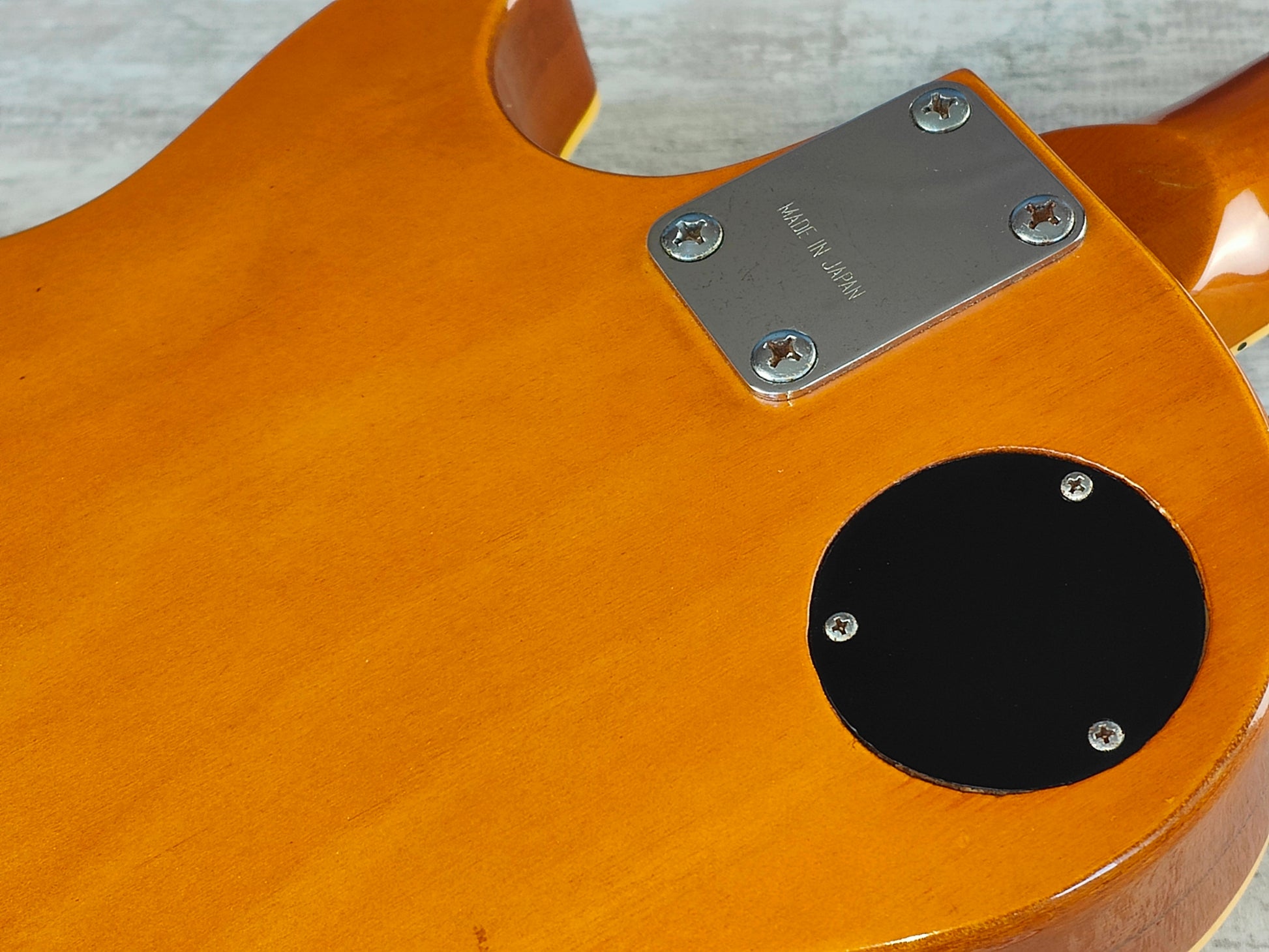 Made in 1973 for Greco's 1974 catalog, the EG-550GS was their seldom seen replica of the Norlin era Les Paul Deluxe. Solid pancake body bolted to a rounded C three-piece neck with a 22 fret rosewood fingerboard, it weighs a reasonable 4.3kg's.