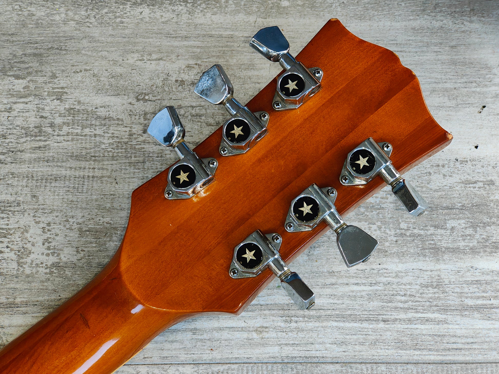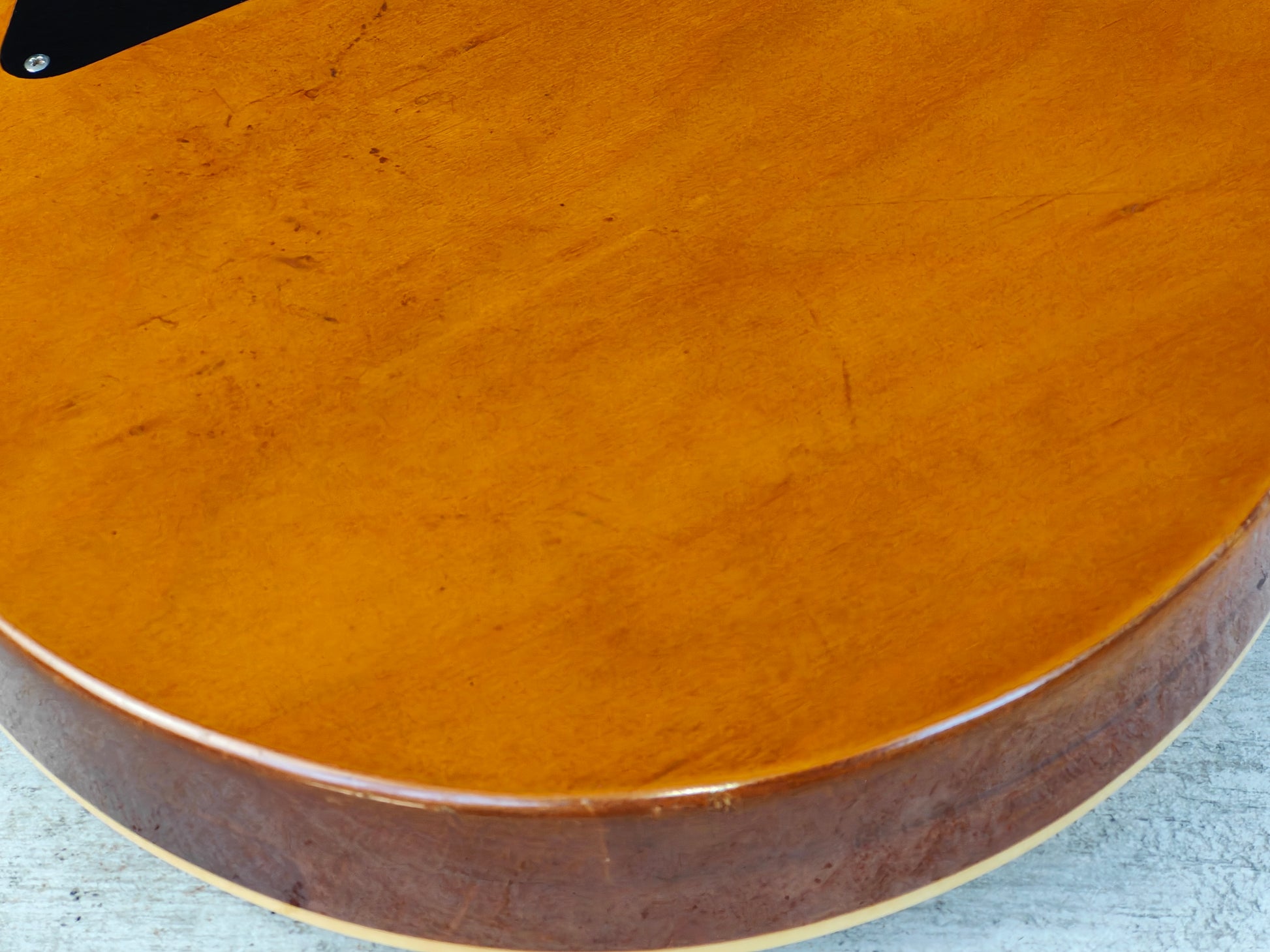 Loaded with the original Maxon made mini humbuckers (designed exclusively for these models) that sound absolutely magnificent, one of the original "goof-strips" is still remaining behind the neck pickup ring otherwise it appears to be close to all original.