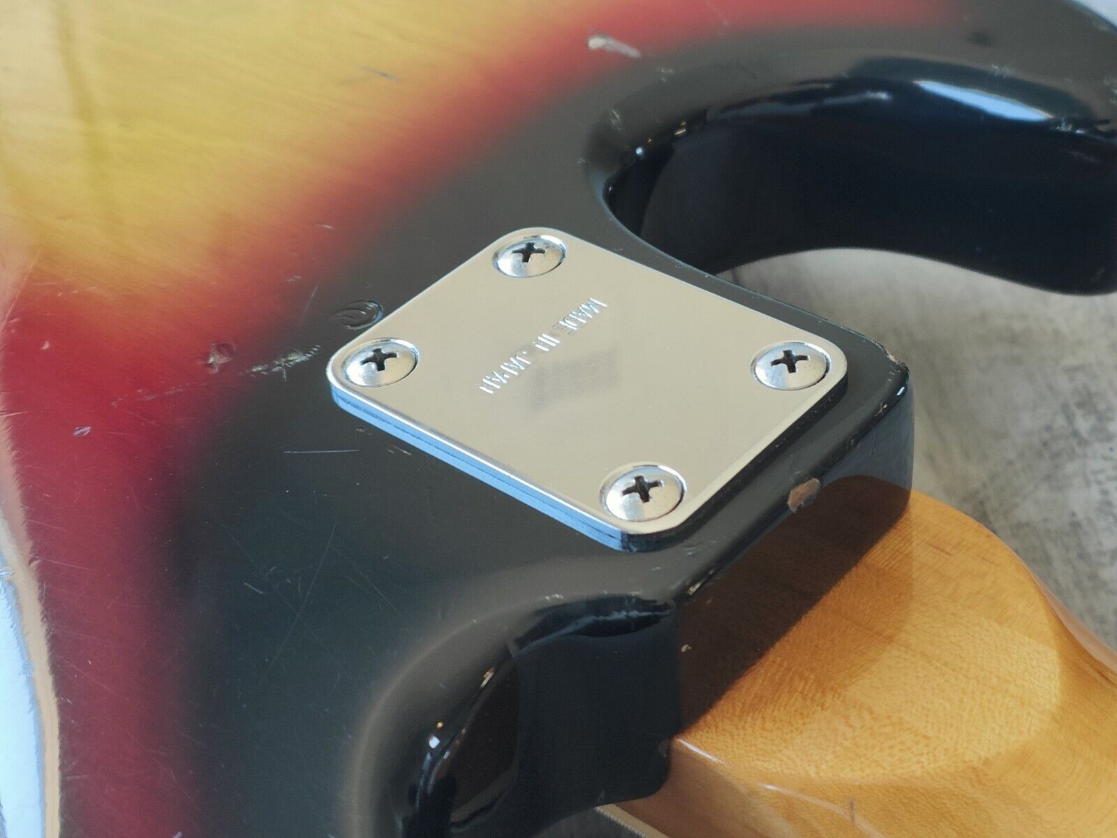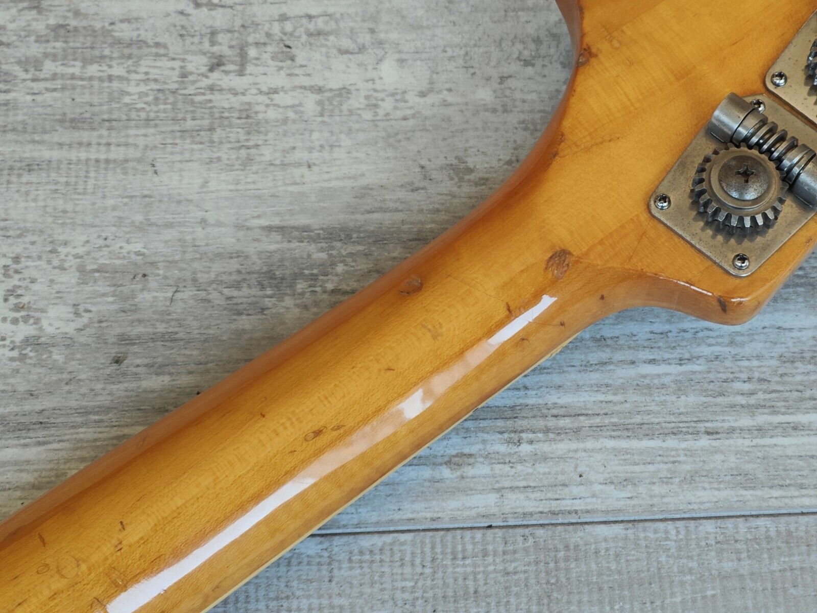 Made in Japan in 1975, the JB450S was the Greco model that aimed at replicating Fender's 70's Jazz Bass. Sen ash body with a maple neck and bound rosewood fingerboard (with block inlays), it weighs 4.5kg's. Looks to be all original with the exception of a new output jack and tone capacitor.