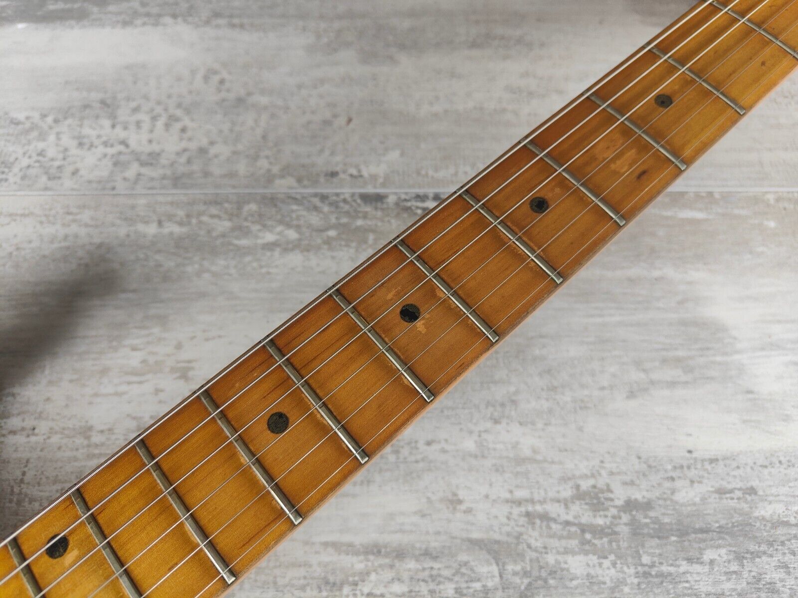 Made by the Matsumoku factory in 1974, this SE-500B is one of those classic old Greco Stratocasters that is a joy to own. Nice heavy body with a rounded maple neck and 21 fret fingerboard, it weighs 4kg's. Loaded with the original Maxon Excel single coils controlled by a three-way toggle, it's got some new screws and likely replacement knobs otherwise it appears original.