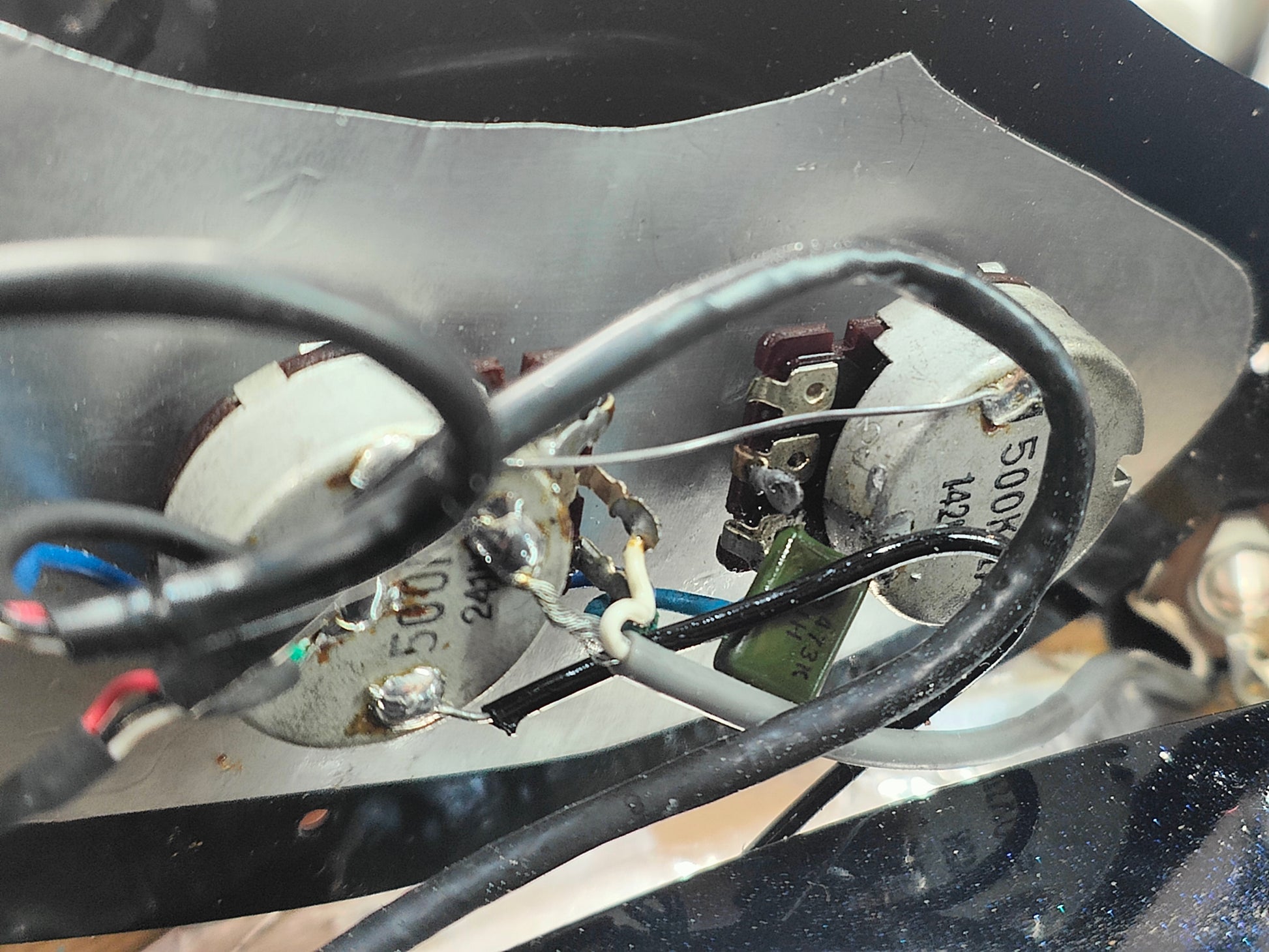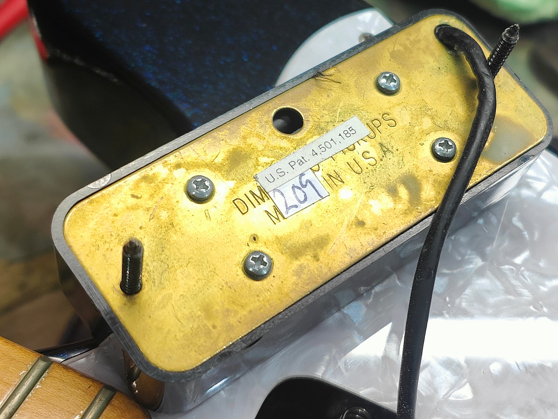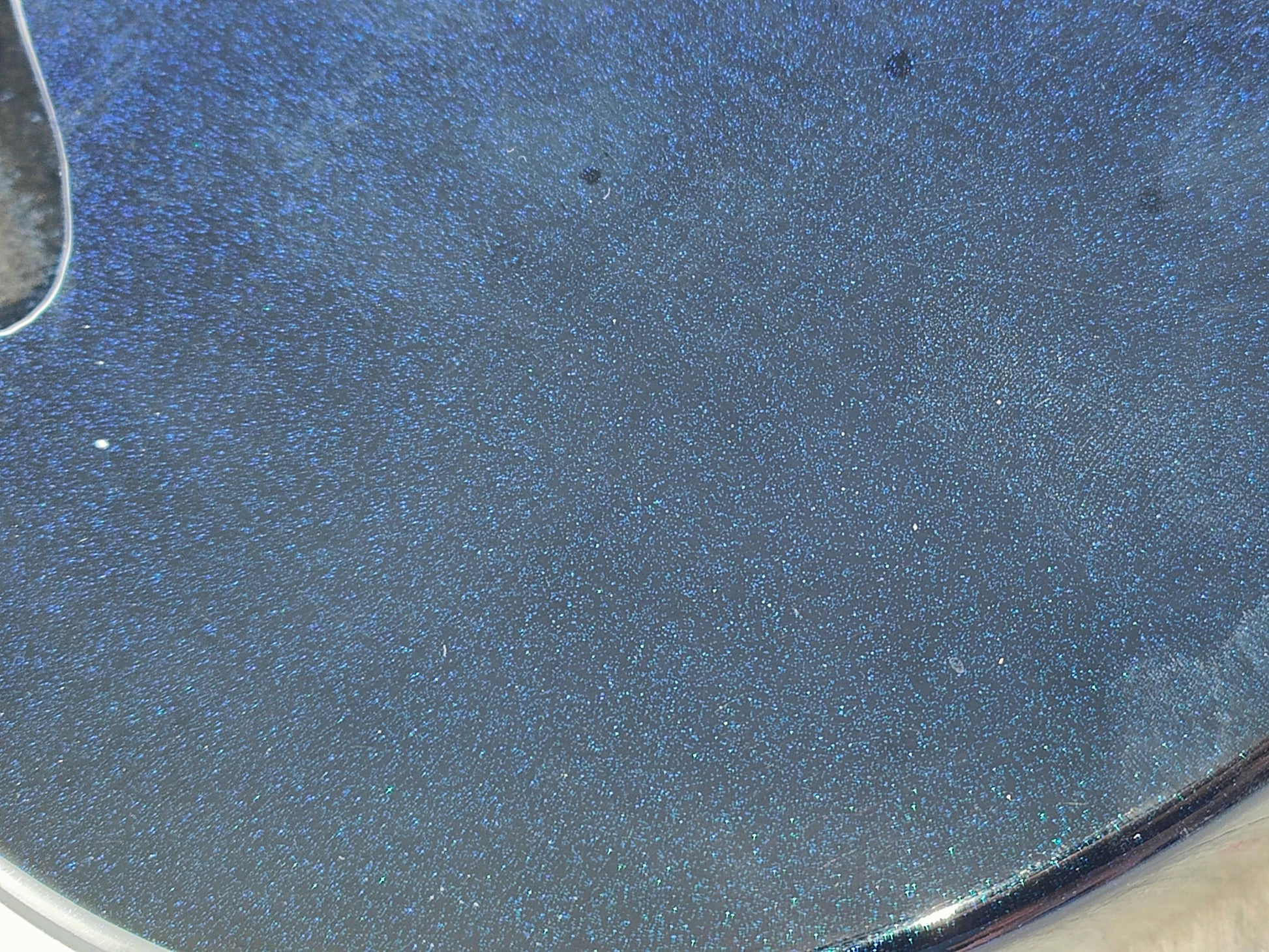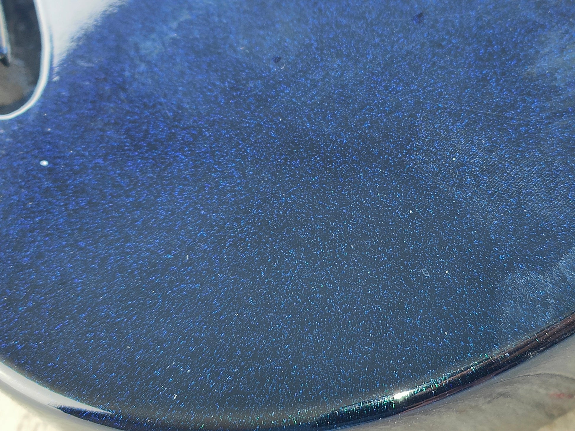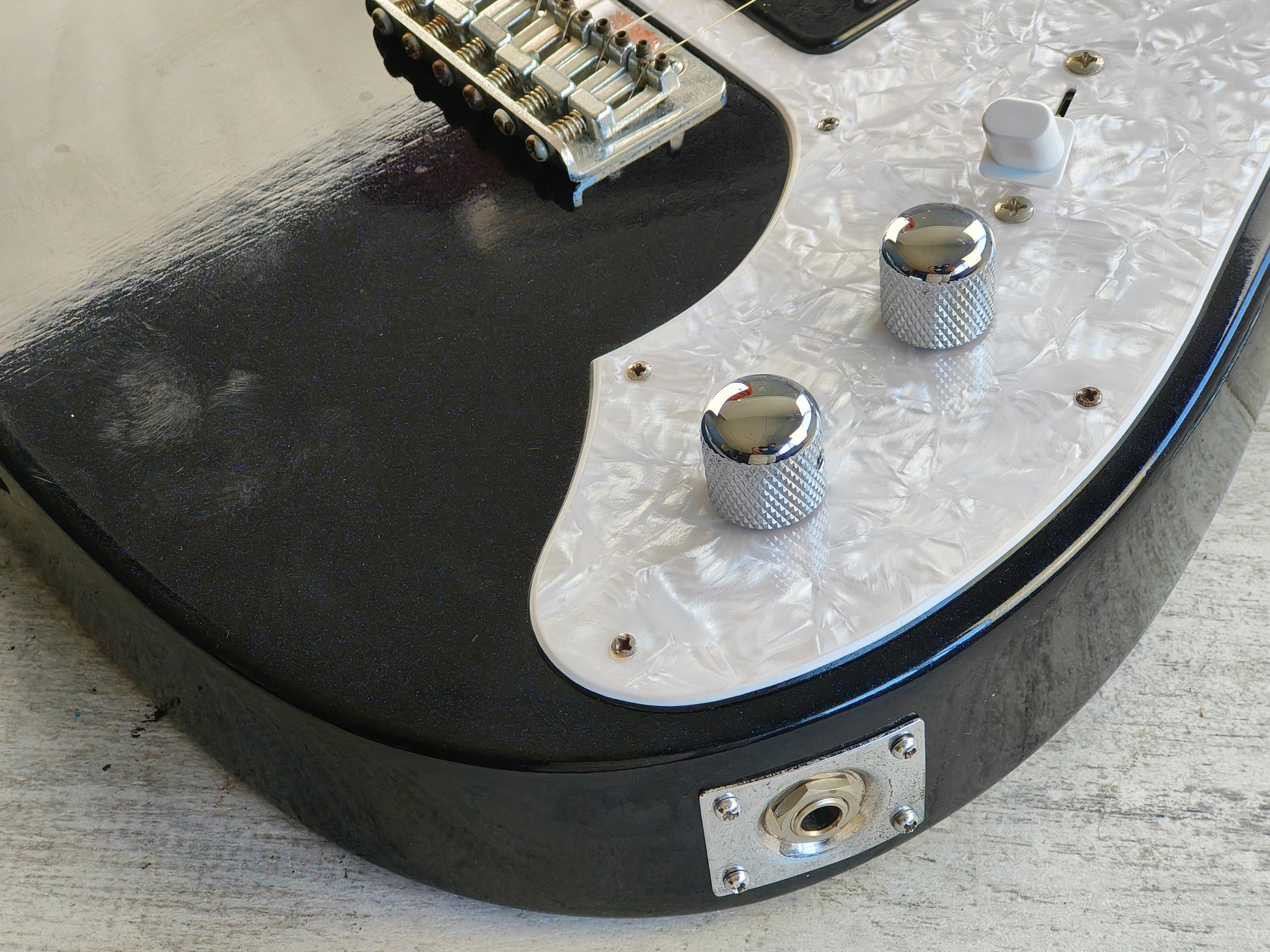 The previous owner had this one professionally refinished in a beautiful navy blue metallic finish that sparkles in the light. They also had it modified with a new pickguard to house a pair of Dimarzio 209 P90 Super Distortions. Still features the original pots, wiring, bridge and tuners that all work perfectly.