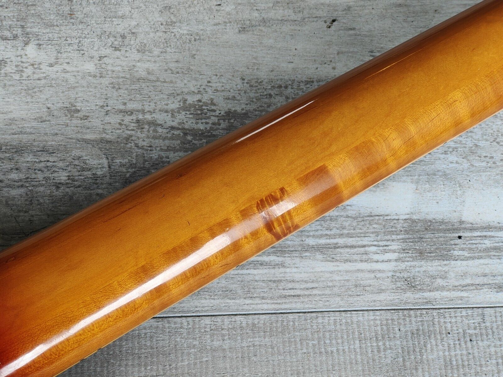 We've had this one in the warehouse for a while as we were waiting for Mick Harron (of Harron Custom Guitars) to fly up to Sydney and refret it for us and we're glad we were patient. Known for his flawless fretwork, he removed the old frets and corrected the fretboard radius to 12" before loading it with stainless steel medium jumbo frets and a brand new nut and setting it up perfectly with 10-46's.