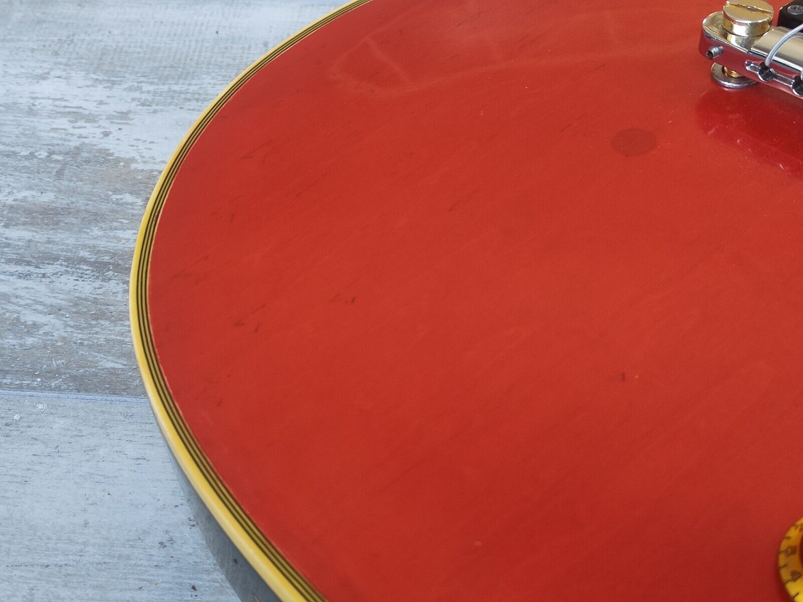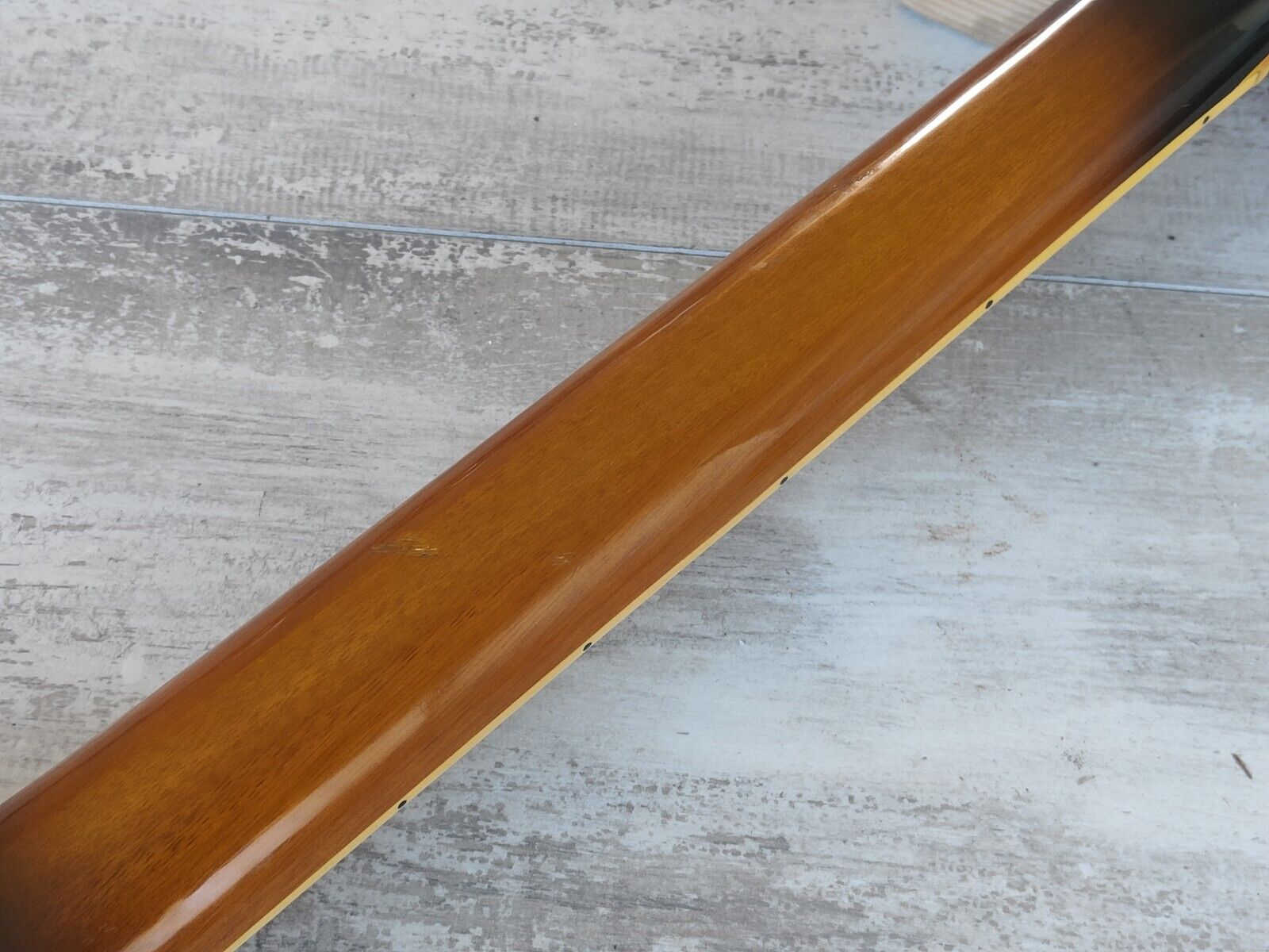 Used and modded vintage condition as pictured with basic signs of wear for it's age. Binding has some crumble (common for these models) and there's some dings to the finish but overall it's a rock solid build that's guaranteed to lead to compliments (or insults) from anyone who sees it. Neck has a slight twist but it still plays well as it sits.