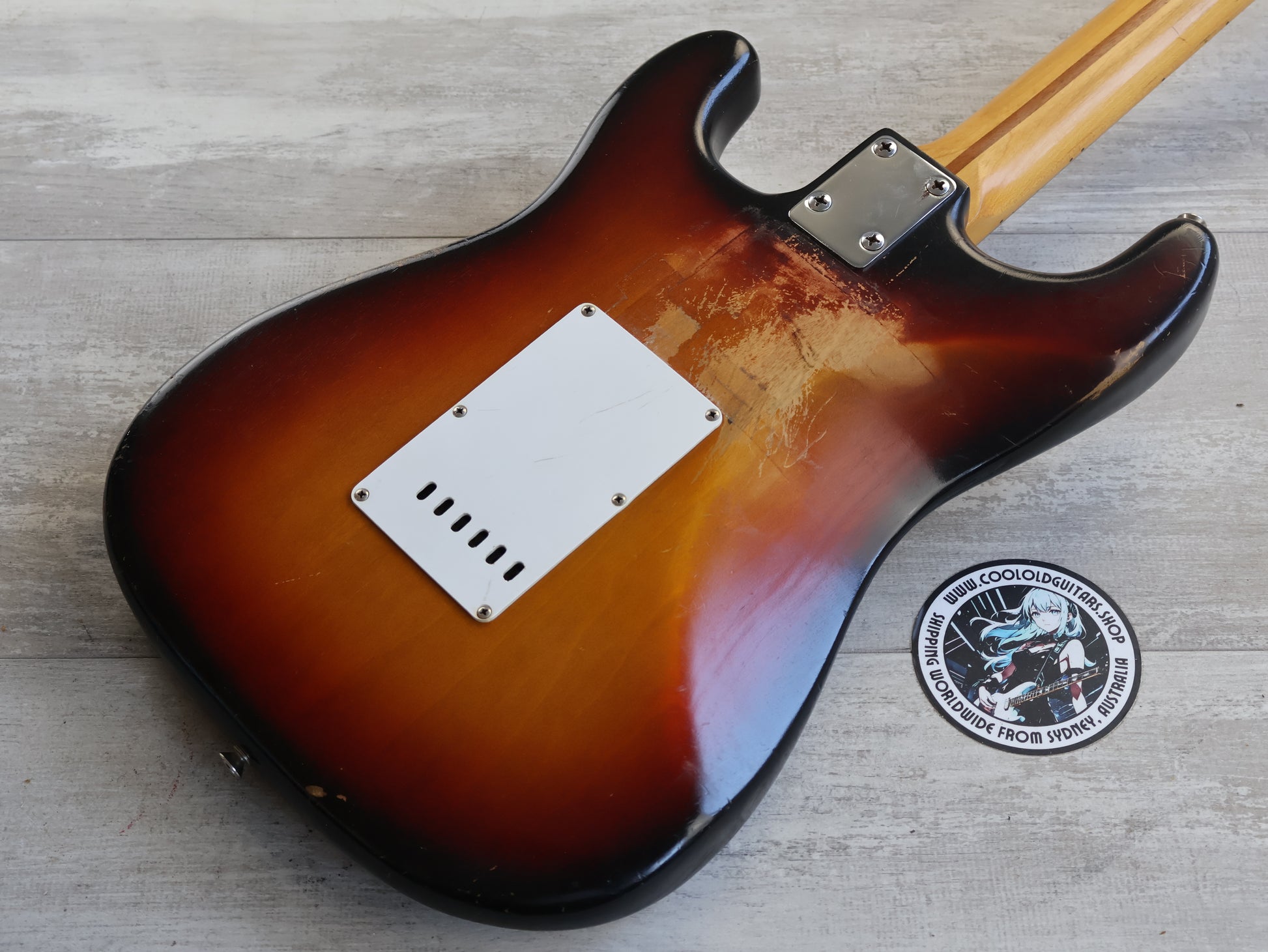 Made in Japan in 1976, this was a mid range FST-85 model that aimed to replicate the mid 50's Stratocaster. The catalog lists these as being built with a mahogany body with a "silver heartwood" center block bolted to a hard-maple neck, this one weighs 3.8kg's.