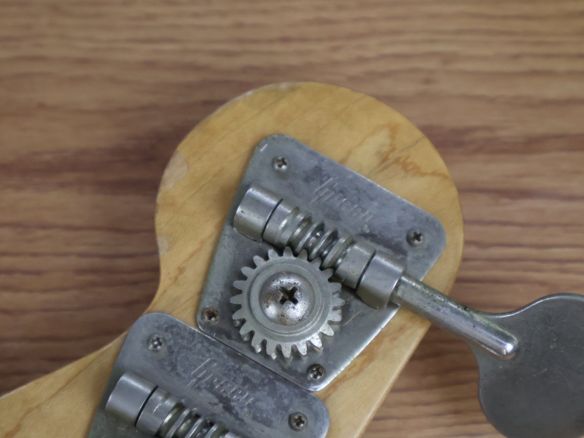 Seems to be all original and is in good vintage condition as pictured. The frets are shiny and smooth and the neck is straight with an adjustable truss rod. A small section of headstock has been reglued as pictured, the area is rock solid with no movement.