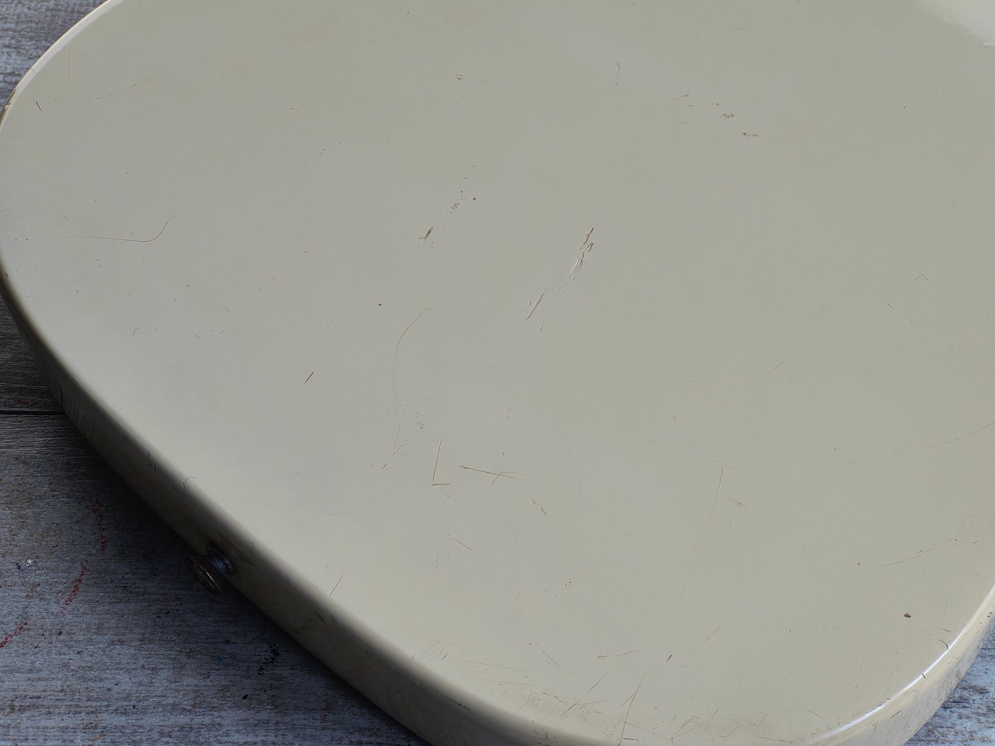 Faded to a nice vintage white/cream look, it's in decent vintage condition as pictured and was given a full professional setup and service prior to listing. The neck is straight and the truss works as it should, the frets have plenty of play-wear but are shiny and play smoothly.