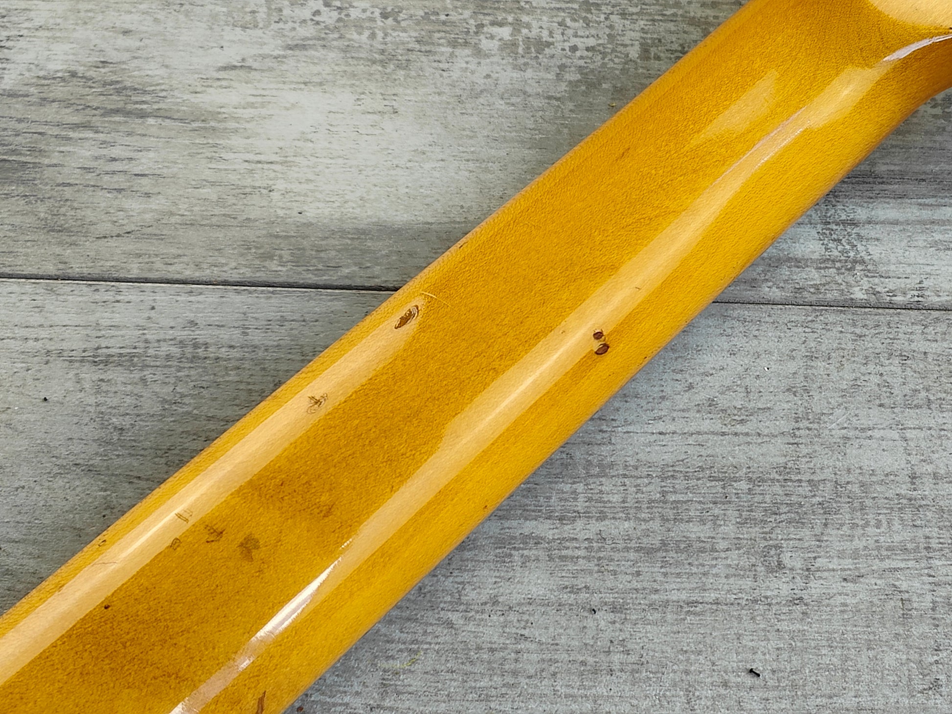 Loaded with the original Maxon single coils, the switch has been converted to a LP style three-way toggle and the knobs have been swapped otherwise it appears to be all original.