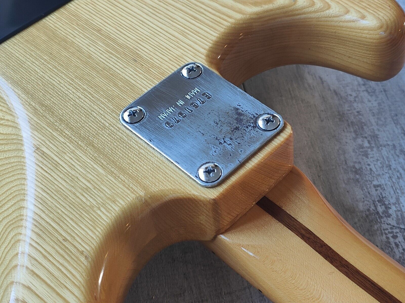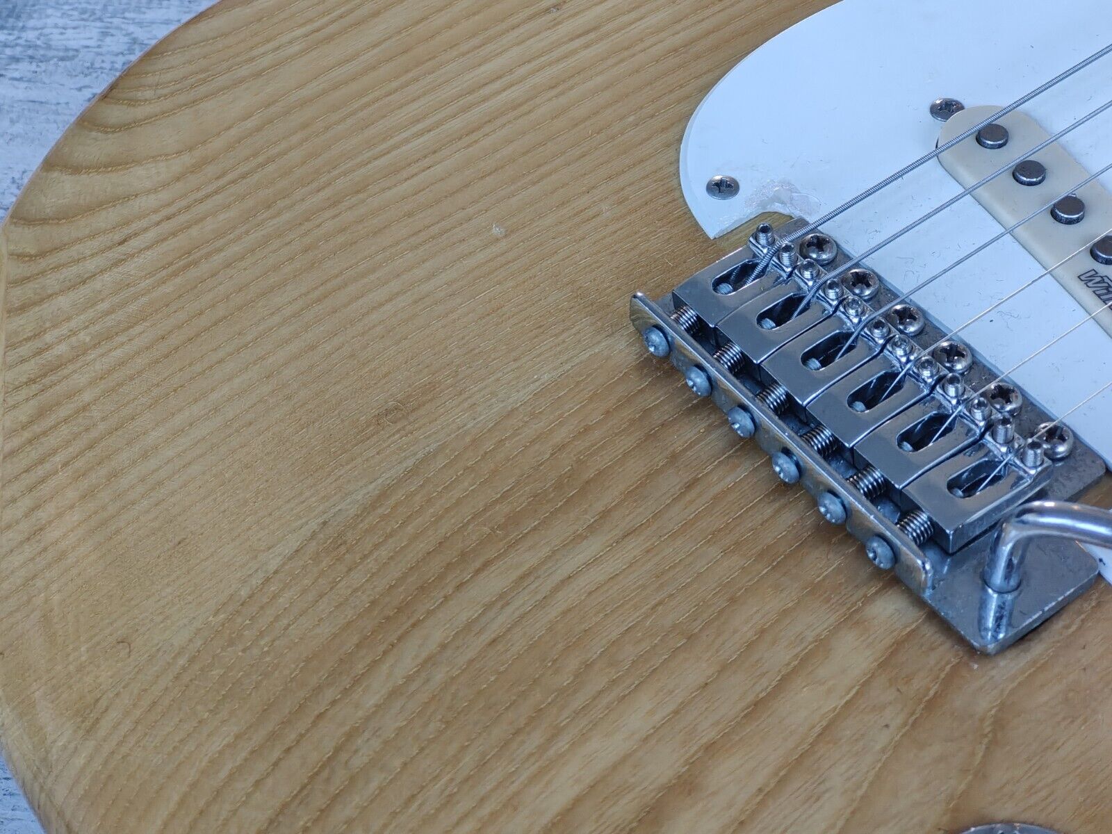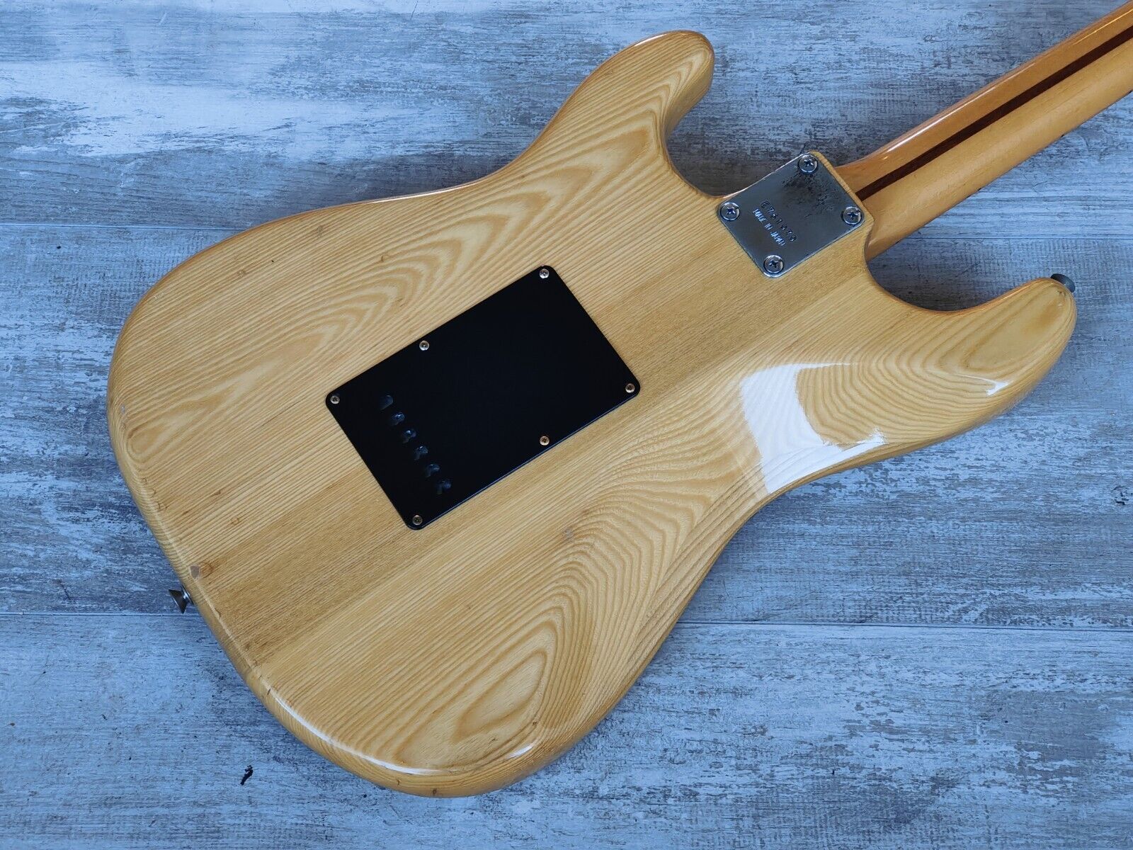 Made by the Fujigen factory in 1976, this SE-500N is one of those classic old Greco Stratocasters that is a joy to own. Nice grain on a natural ash body with a slim C 21 fret maple neck, it weighs 3.8kg's. Loaded with some aftermarket electronics including Wilkinson single coils controlled by a five-way toggle and some aftermarket saddles to accompany the original Greco branded tuners.