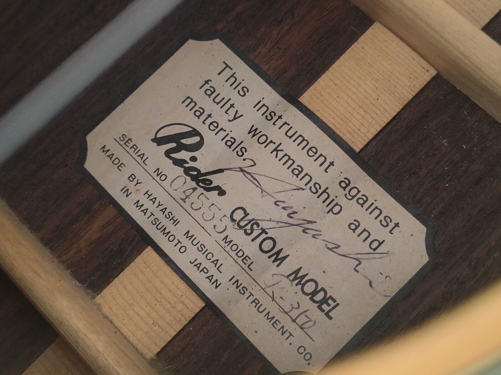 Rider acoustic guitars were made in Japan by Hayashi Gakki. This is a 1976 build made during the period that Yasuo Momose (who went on to establish Headway guitars only a few years later) was working at Hayashi just before he and some of his colleagues left the company to establish Headway Guitars.