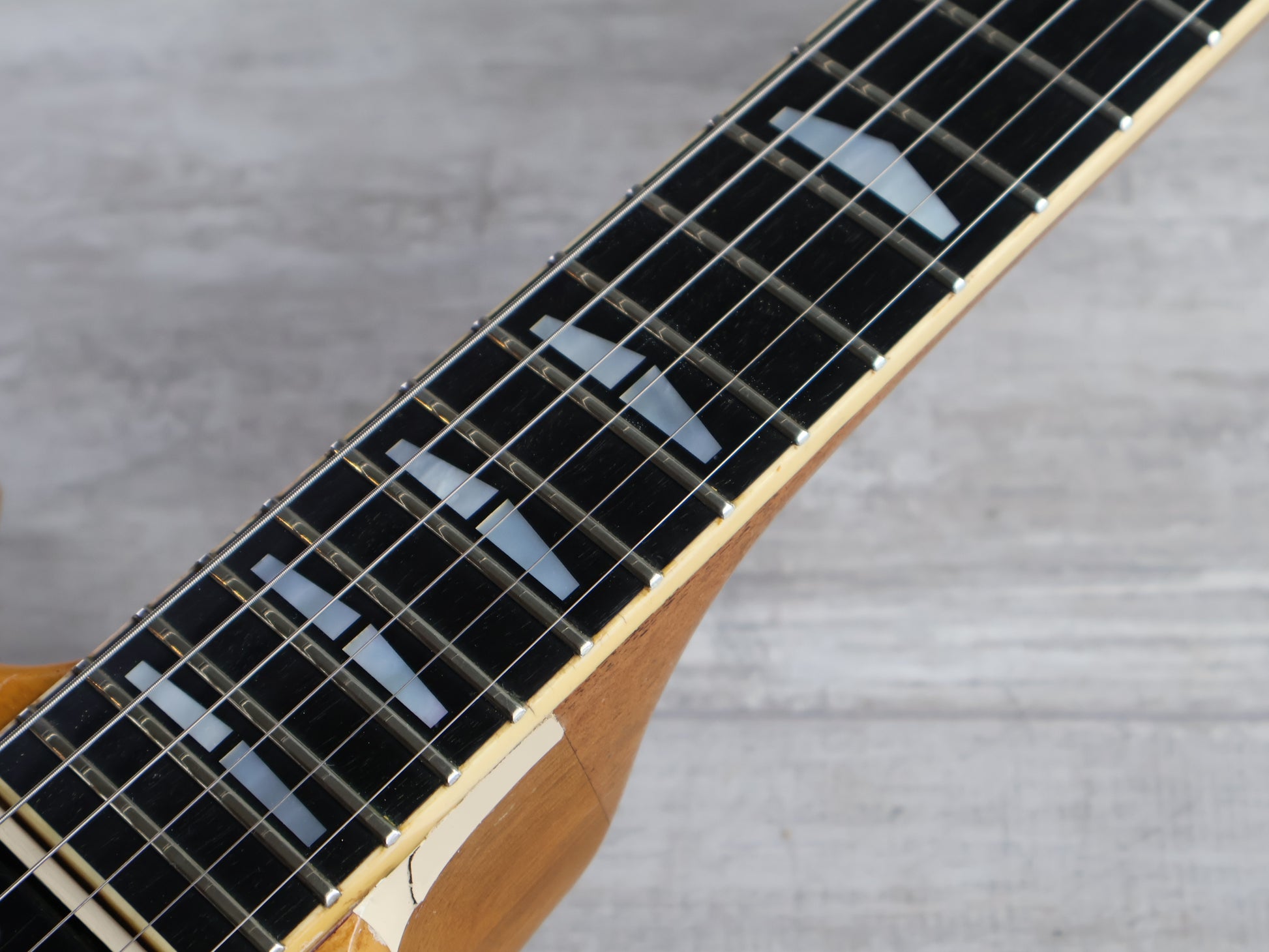Good vintage condition as pictured with the modifications as mentioned previously, has a few bumps and dings from general use over 40 years. The frets are shiny and smooth and play well with a straight neck and fully functional truss.