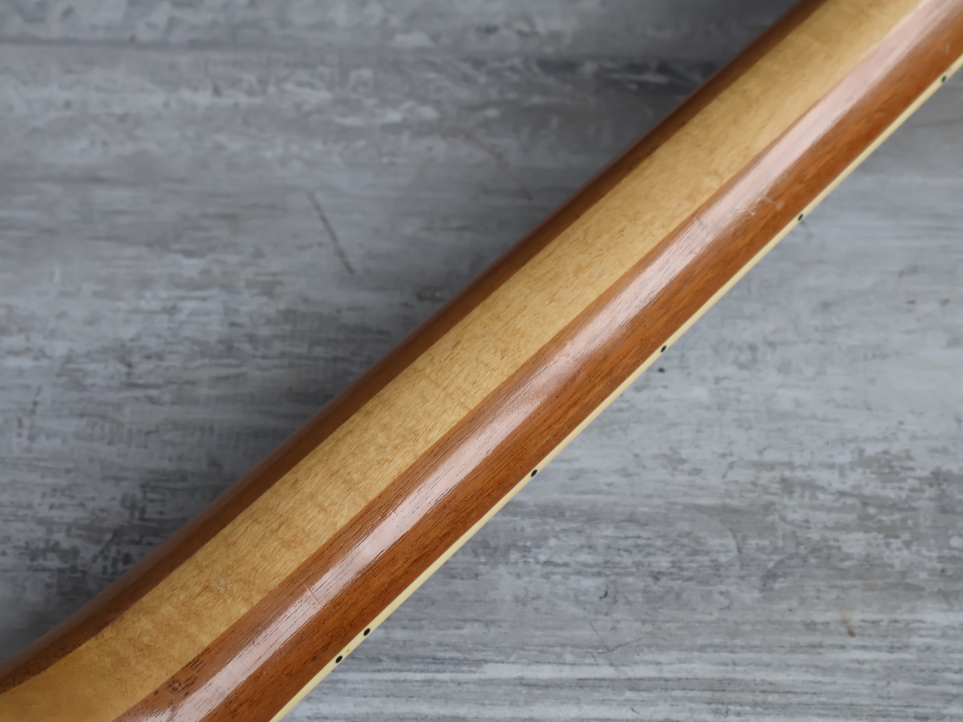 Considered by many as an upgrade to the standard Les Paul design, the Yamaha SG series are some of the fullest sounding guitars you'll ever play. This SG1000 is one of the earliest iterations and features a mahogany body with a maple cap, slim mahogany set neck and an ebony fretboard (12" radius, 628mm scale length, 43mm nut width), weighs 3.8kg's. This one was heavily modified over the years with a previous owner having it completely stripped and refinished in a natural lacquer along with the removal of the binding and beveling of the top to give it a softer look around the edges.