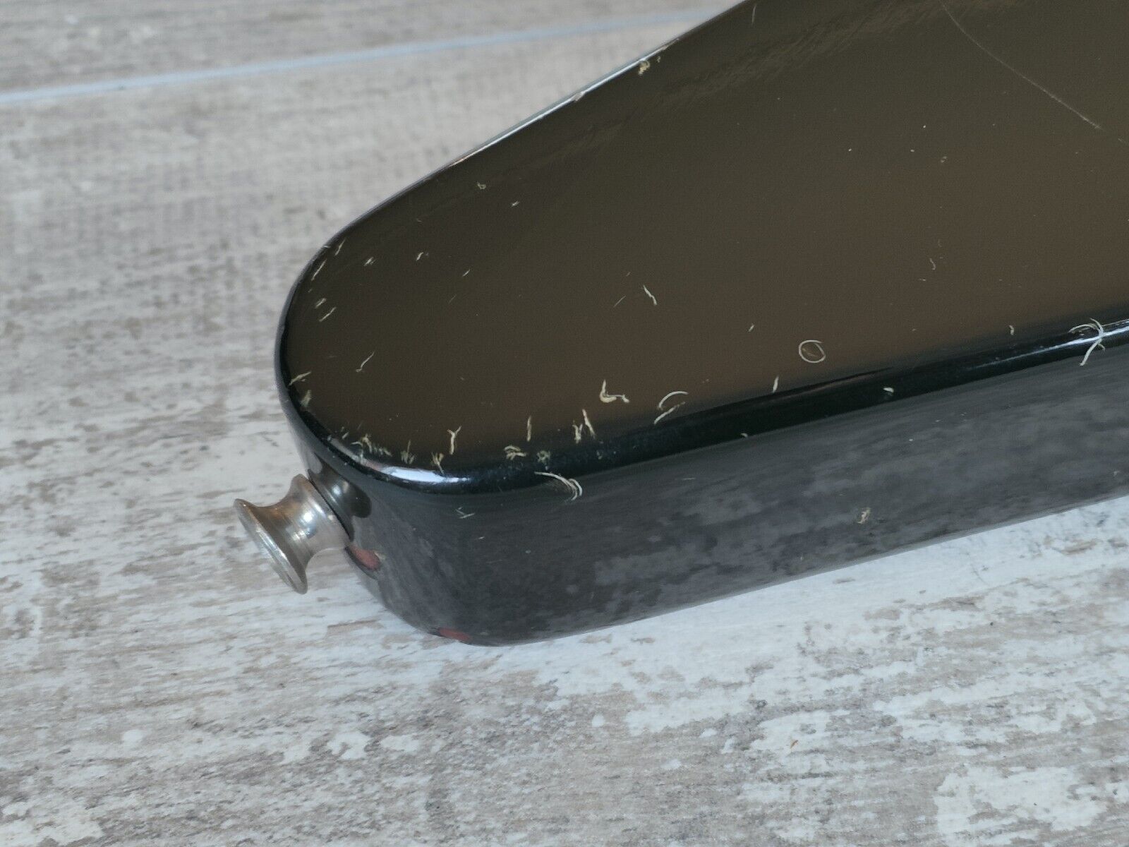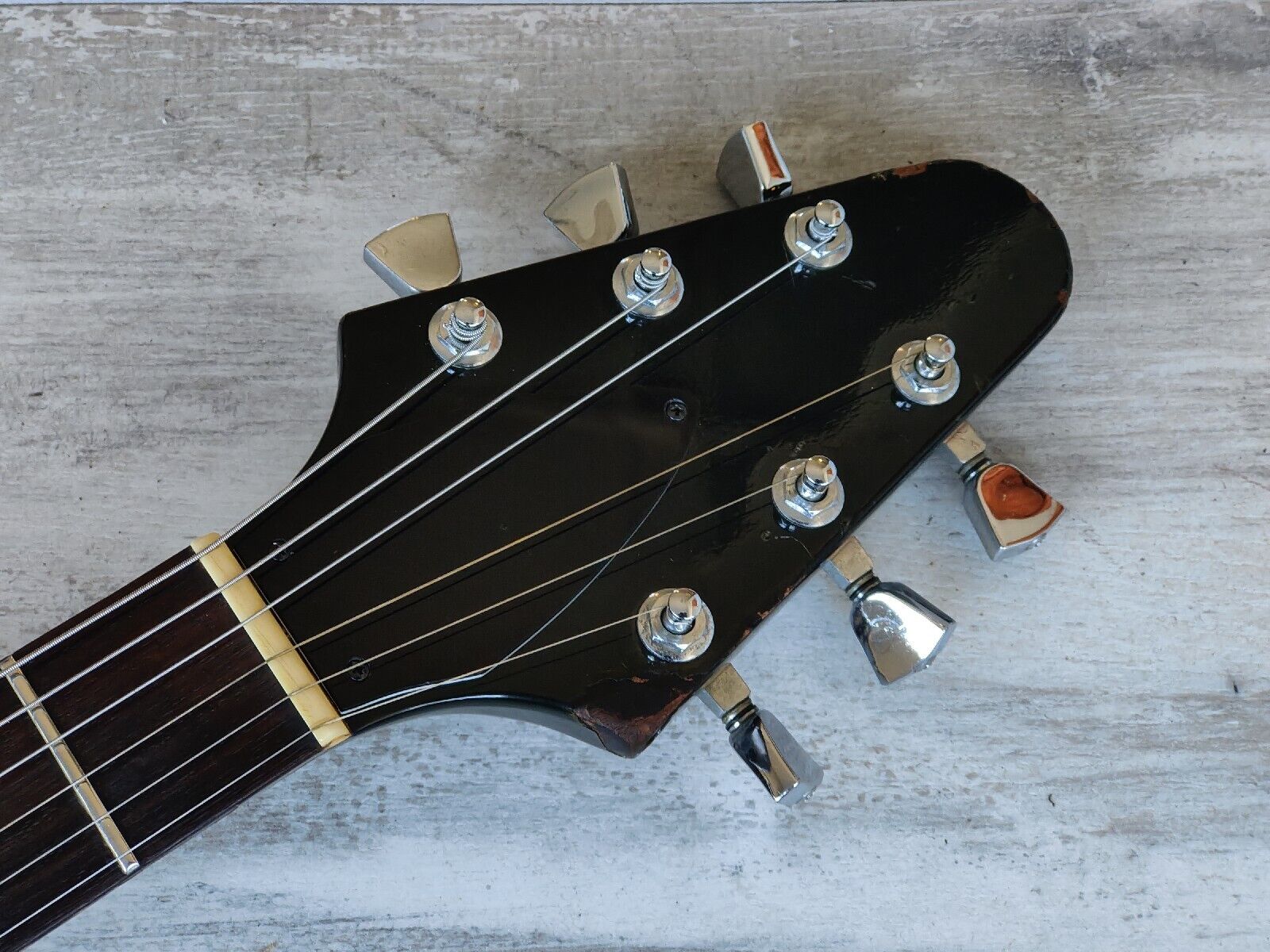 Overall it's in pretty well used vintage condition with plenty of signs of wear from 40 years of use. The frets are shiny with some wear but have life left and the truss works as it should, the neck is straight and plays smoothly. There's a finish crack on the back where the paint has shifted a little around the factory join, no movement at all and is purely cosmetic.