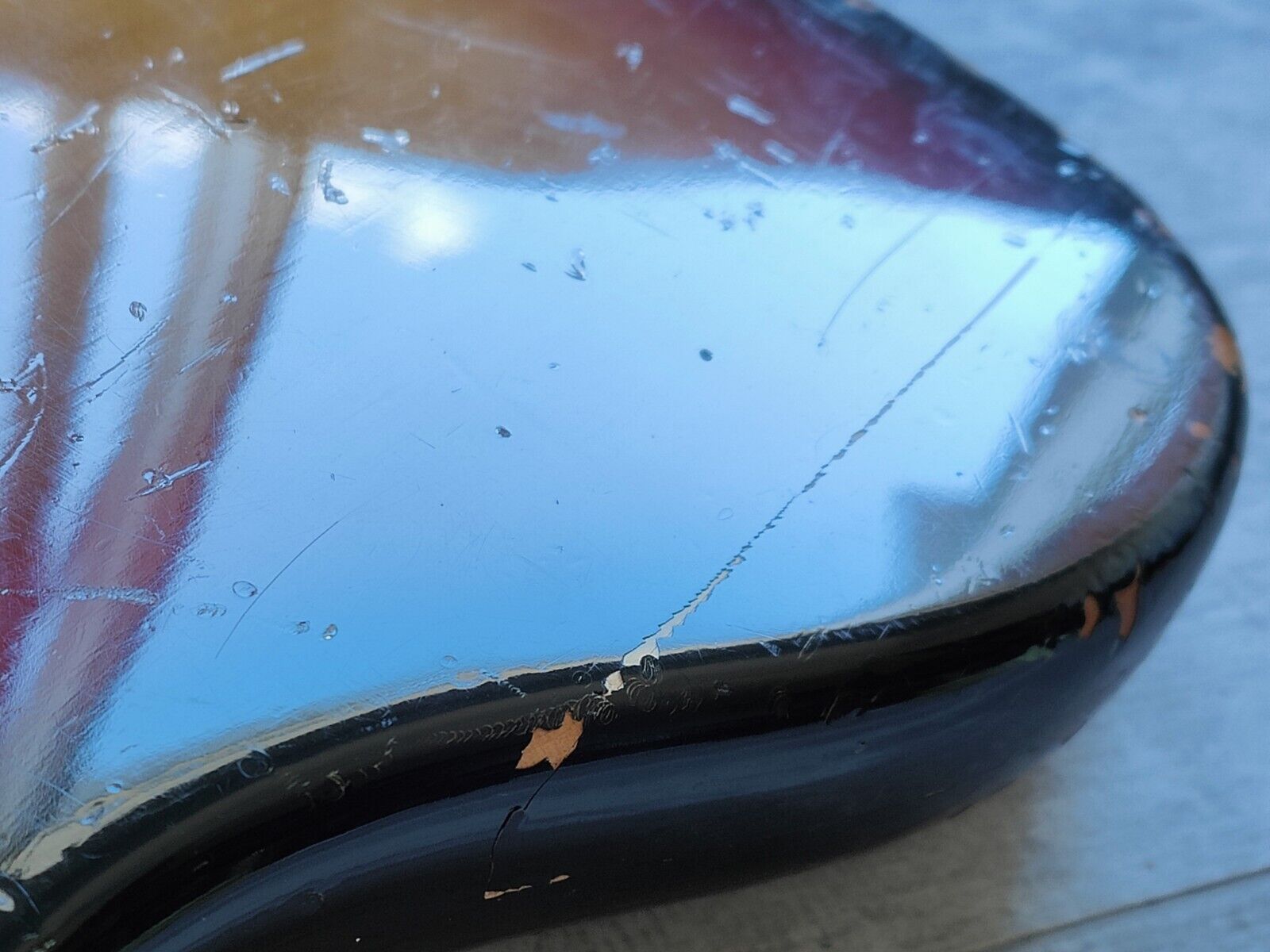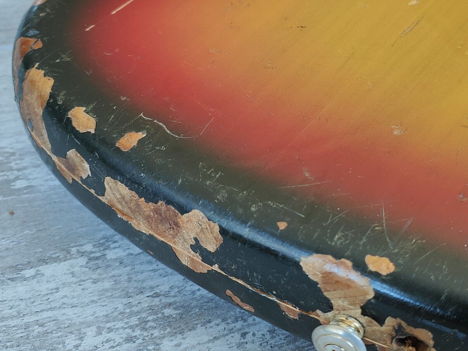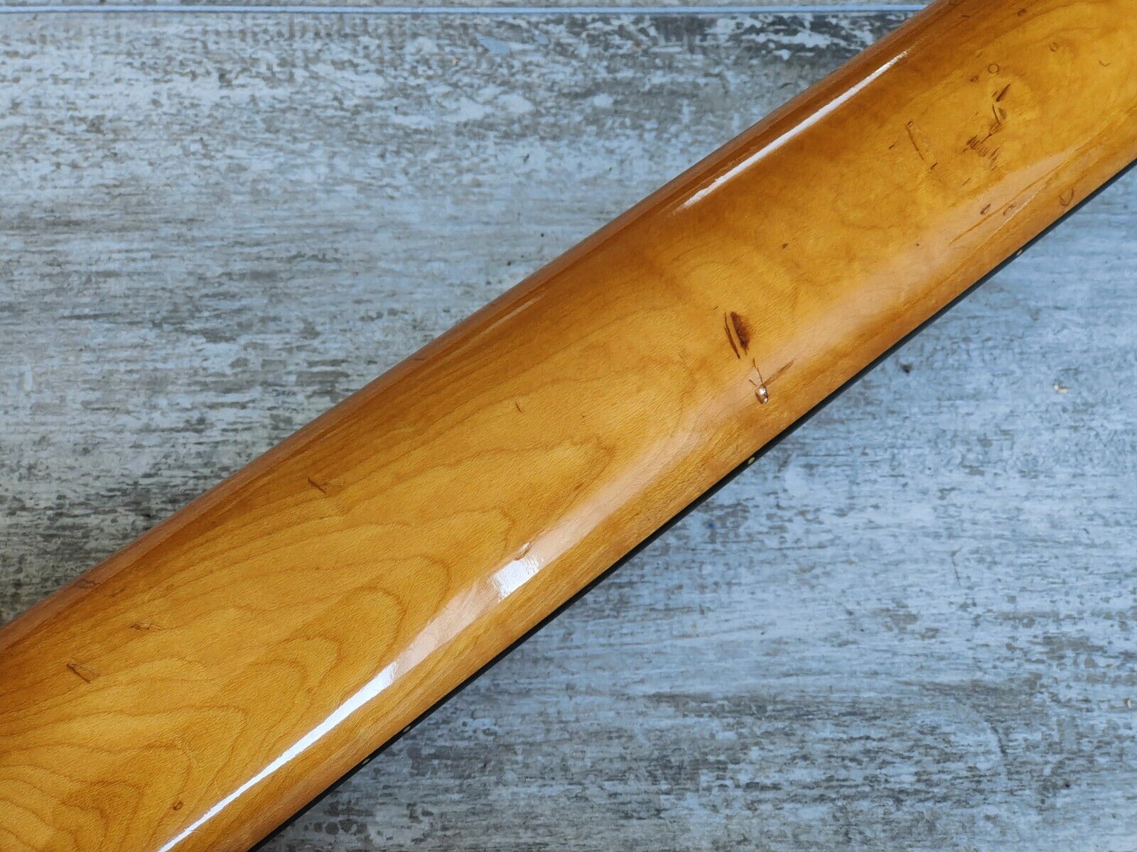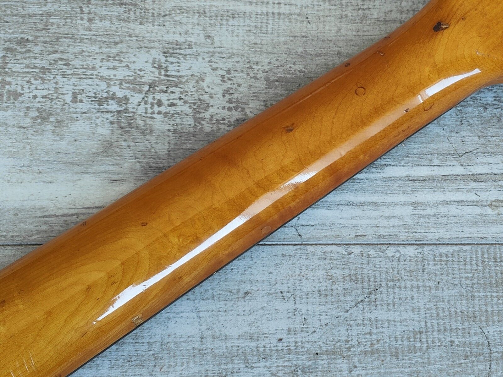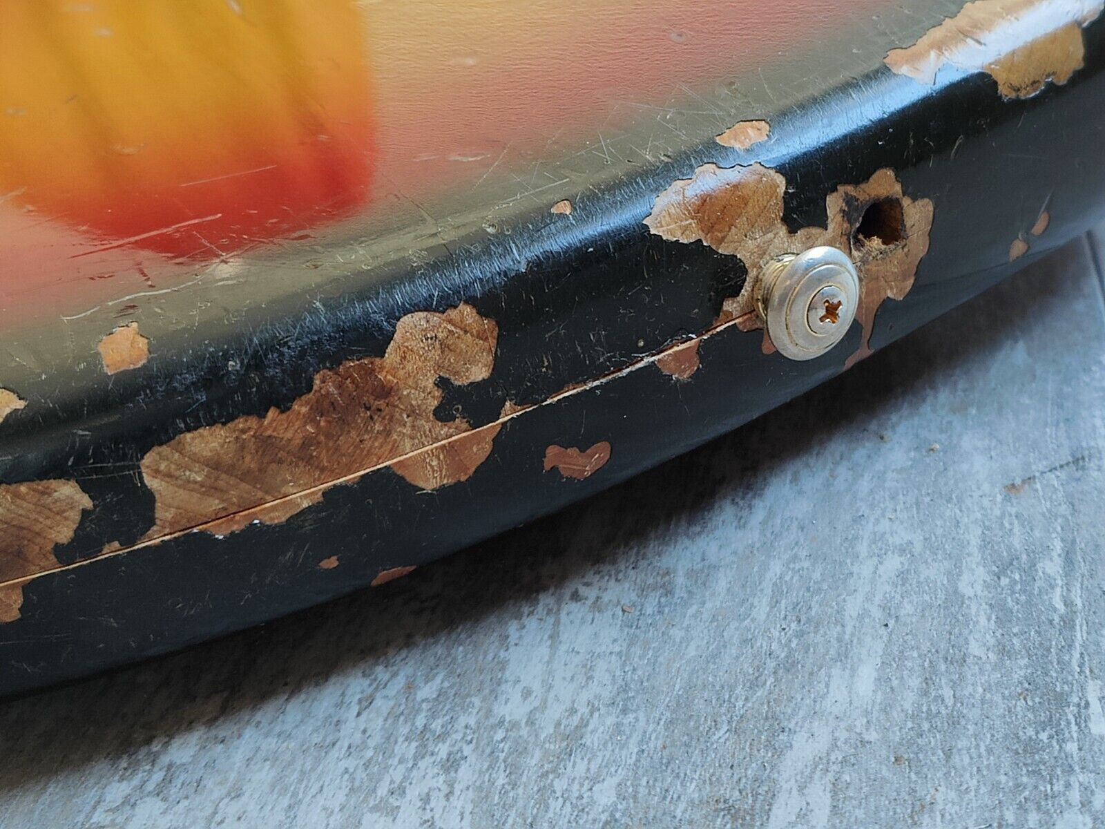Heavy natural relic on this one as it's in true players grade condition with plenty of bumps and bruises (mostly on the bottom of the body) as pictured. Some of the factory joins have been glued and clamped so they're solid where they had partially separated, everything is rock solid now. The neck is in decent shape and plays well with some wear to the frets and a functional truss.