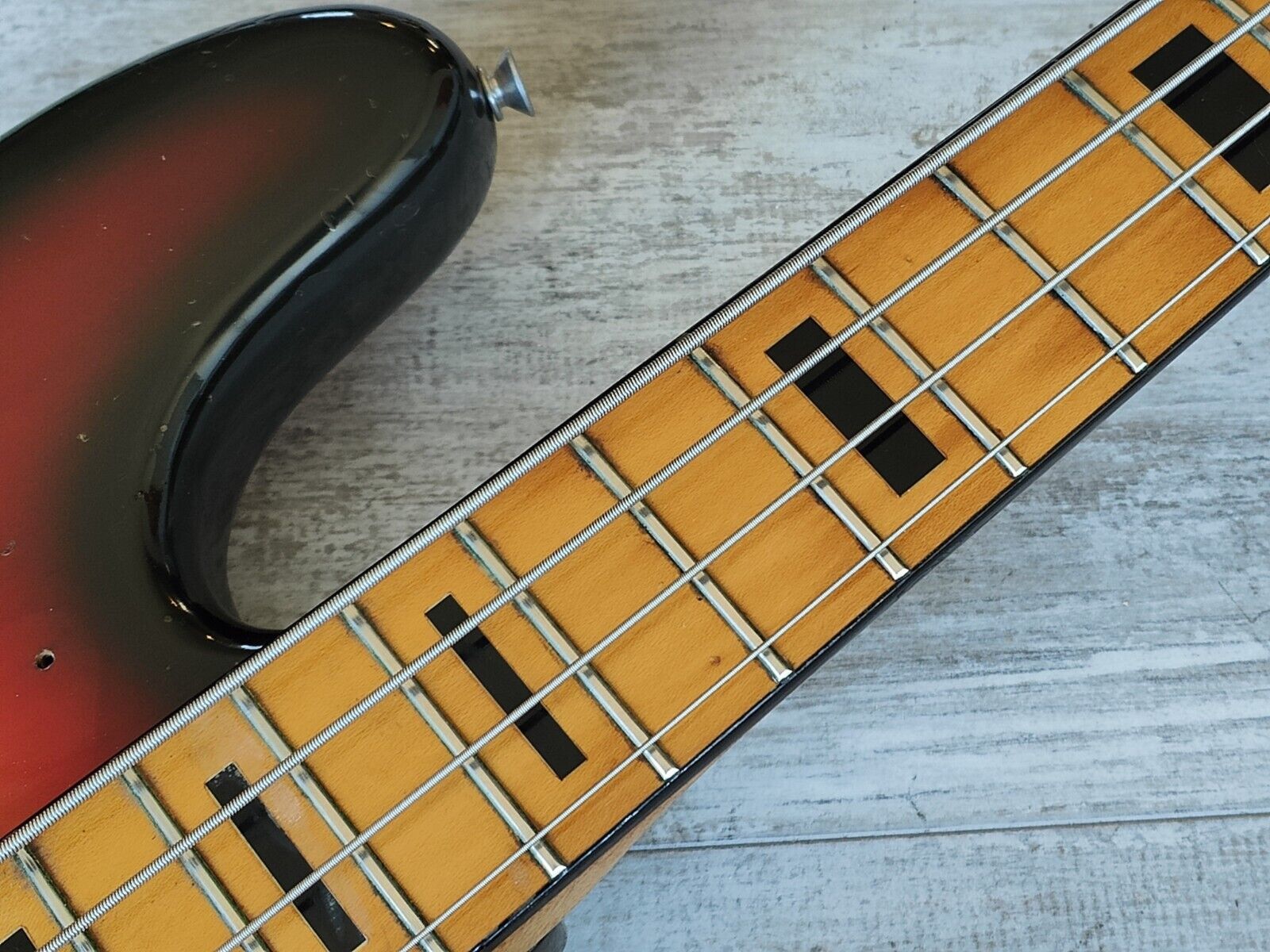 Made in Japan in 1977, the JB500S aimed at replicating Fender's 70's Jazz Bass. Basswood body with a maple neck and bound maple fingerboard (with black block inlays), it weighs 4.2kg's. Loaded with the original Maxon pickups and Japanese pots/wiring, this one's missing the bridge cover and the pickguard otherwise it appears to be all original.