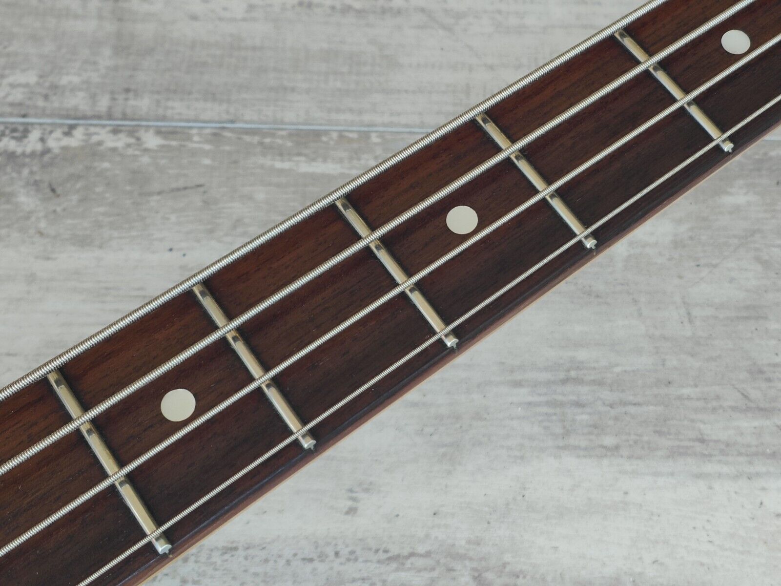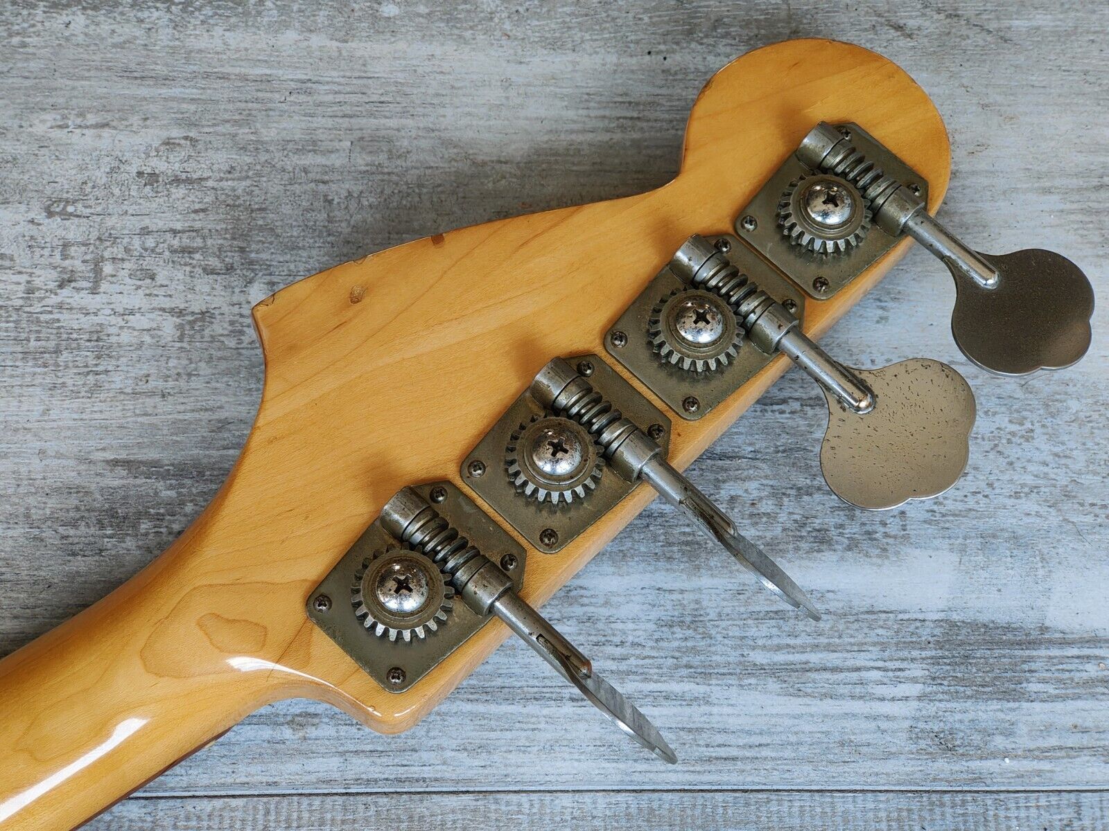 Made in Japan in 1977, the PB420W was the Greco model that aimed at replicating Fender's 60's Jazz Bass. Alder body with a maple neck and rosewood fingerboard (with dot inlays and a 41mm nut width), it weighs 4.6kg's. Looks to be all original with the exception of the missing pickup and bridge covers.