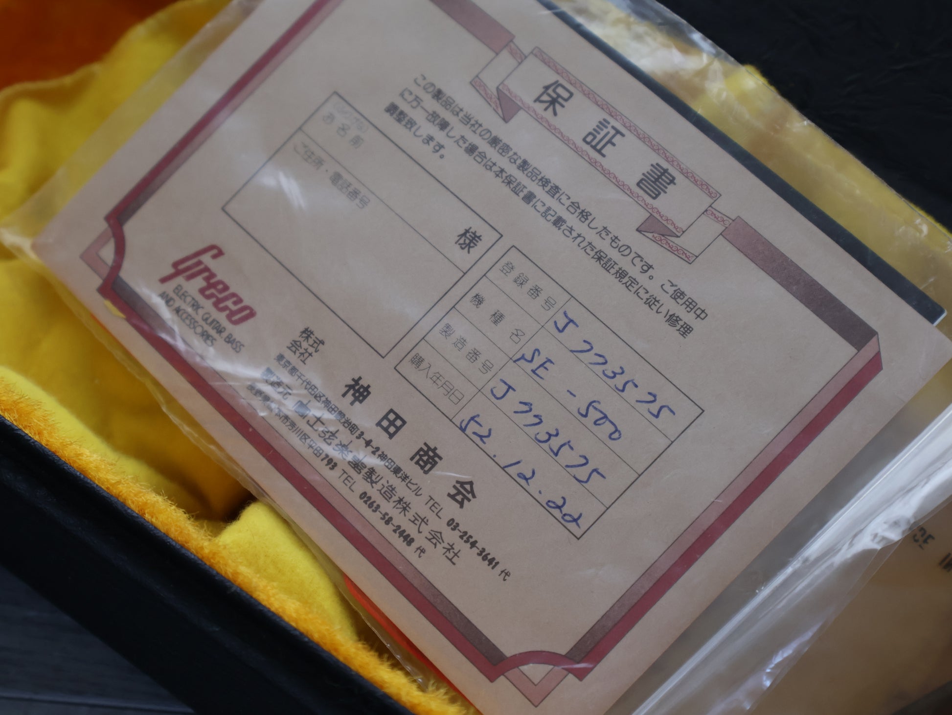 Made by the Fujigen factory for Greco in late 1977, this is one of the cleanest examples of an SE-500 we've ever seen. Natural finish on the Sen ash body with a maple neck and fingerboard, it weighs 3.6kg's. Loaded with the original pots, three-way selector and Maxon Excel single coil pickups along with Greco branded machine heads, this one still has the original paperwork from when it was sold back in 1977!