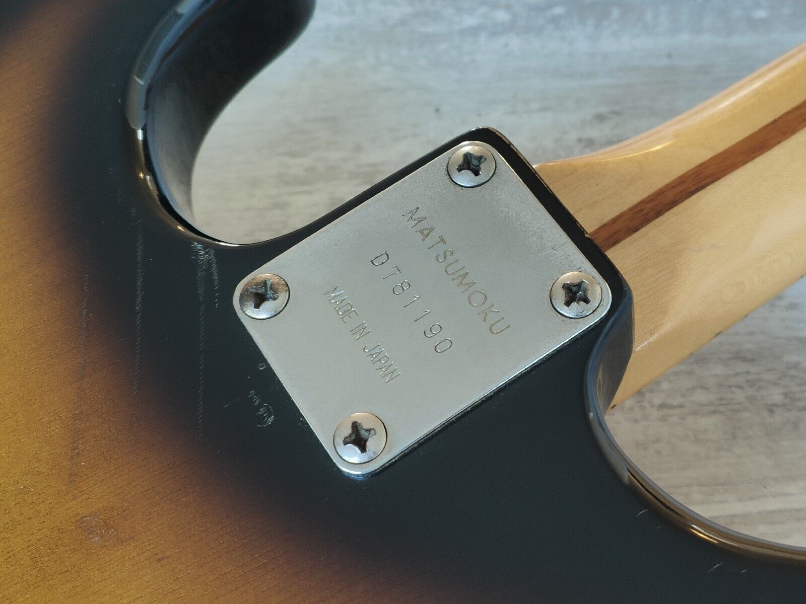 A classic '57 style Stratocaster made by the Japanese Matsumoku factory in 1978. Brown sunburst finish on an ash body with a one-piece maple neck, weighs 3.5kg's.