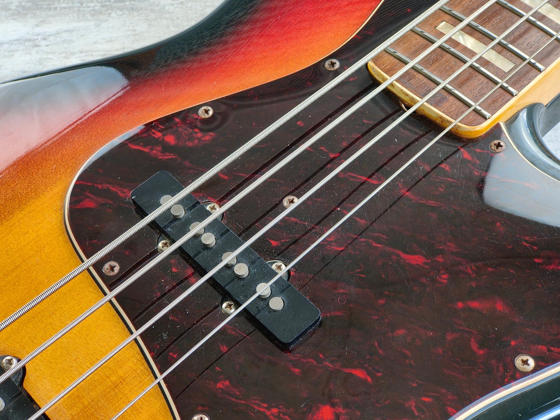Made in Japan by the Matsumoku factory in 1978, the JB-450S was a classic model that aimed at replicating the Fender Jazz Bass being made around the same period. Sunburst finish on the alder body with a maple neck (39mm nut width) and bound rosewood fingerboard with block inlays, it weighs 4.1kg's. This one appears to be all original except for the missing bridge cover.