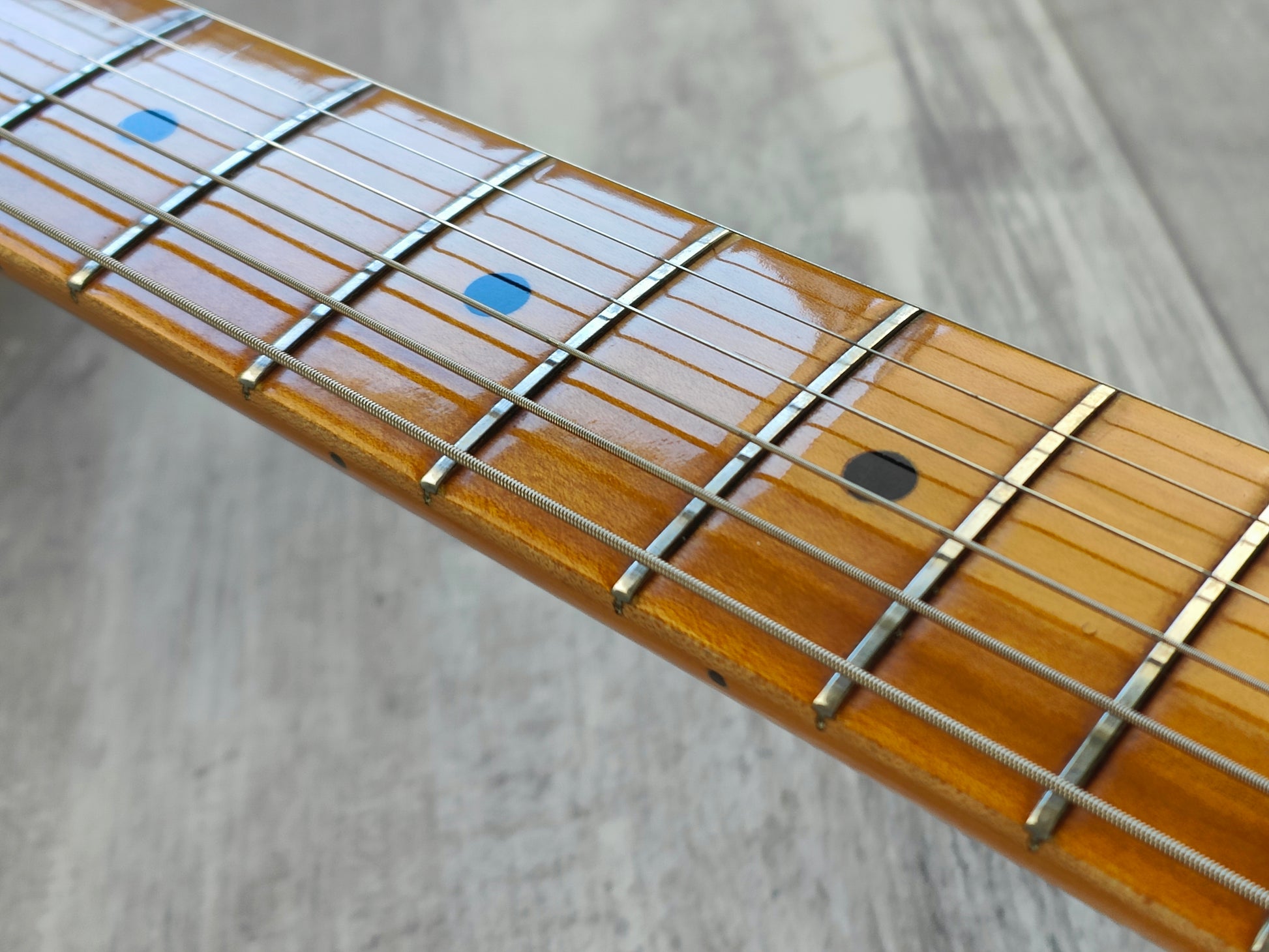 Nice honest condition for a late 70's guitar with a few cosmetic signs of wear and tear and no breaks, repairs or refinish. The frets appear to be original and have life left in them, the fretboard edges were professionally bevelled at some stage to give the neck a smoother feel.