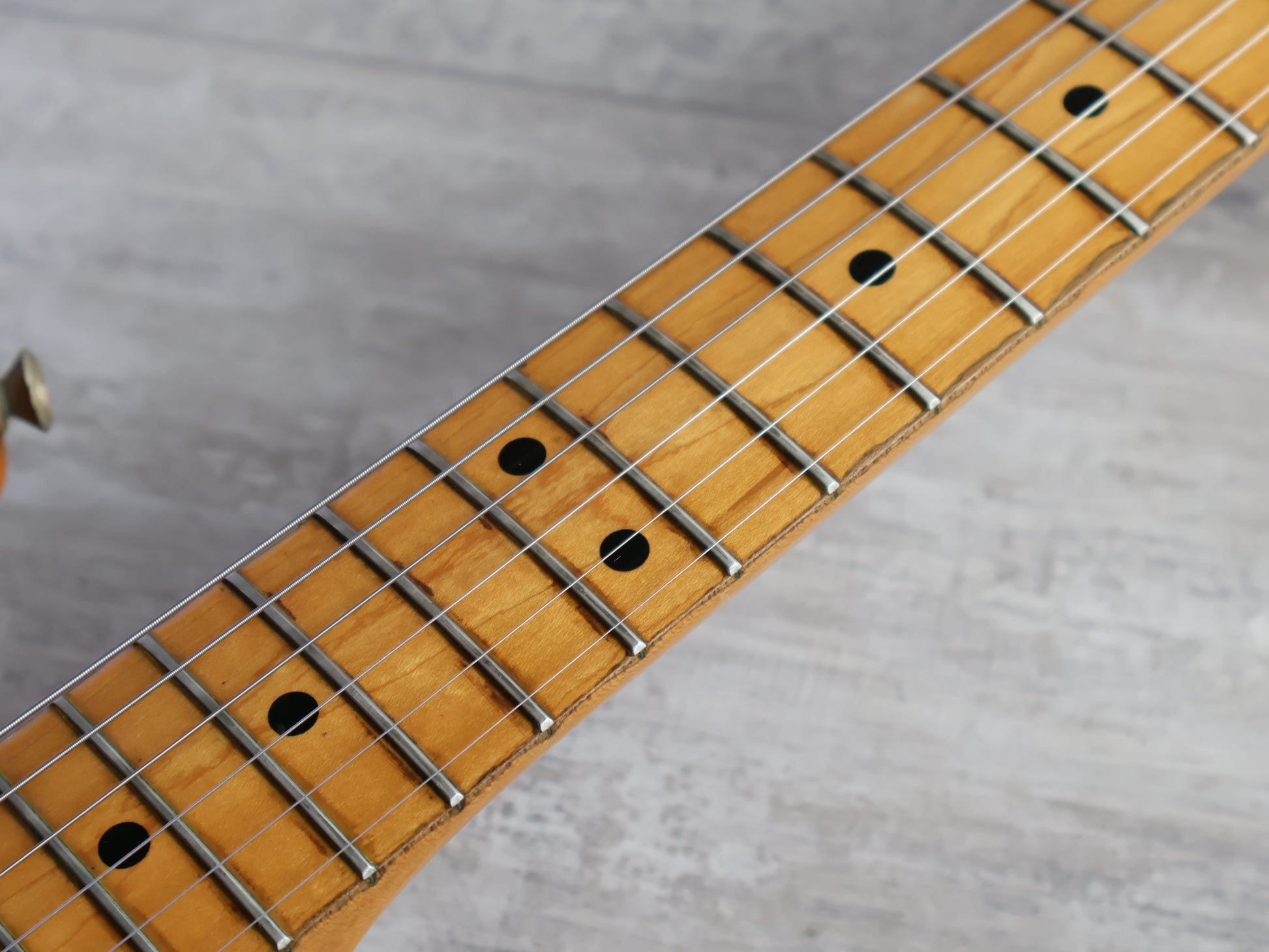 Looks to be all original as pictured with plenty of wear from general use but overall it's a well cared for and well loved vintage guitar. The frets have plenty of life and play smoothly, the neck is straight and the truss works as it should. There's some sticker tan from a previous owner giving it a two-tone competition stripe vibe.