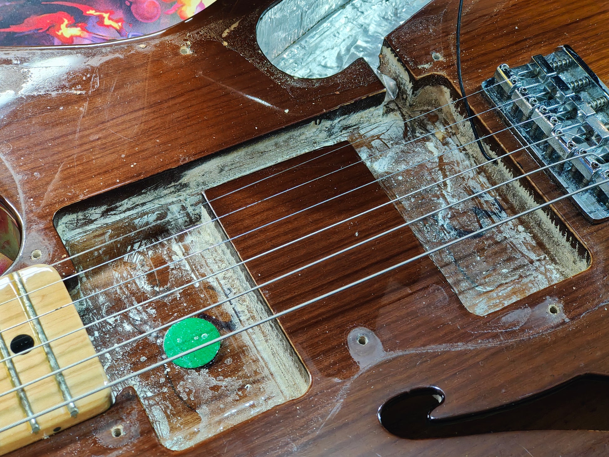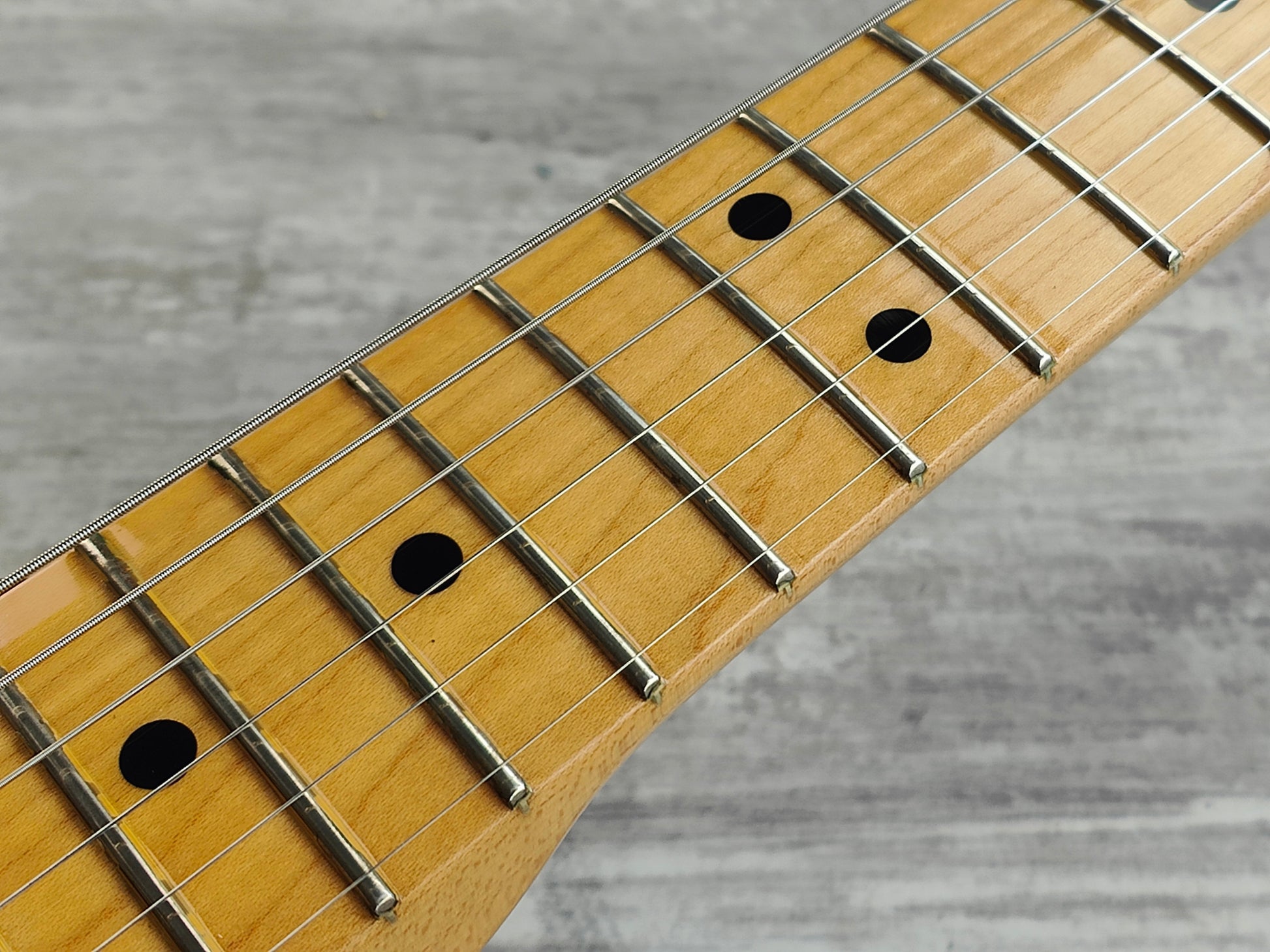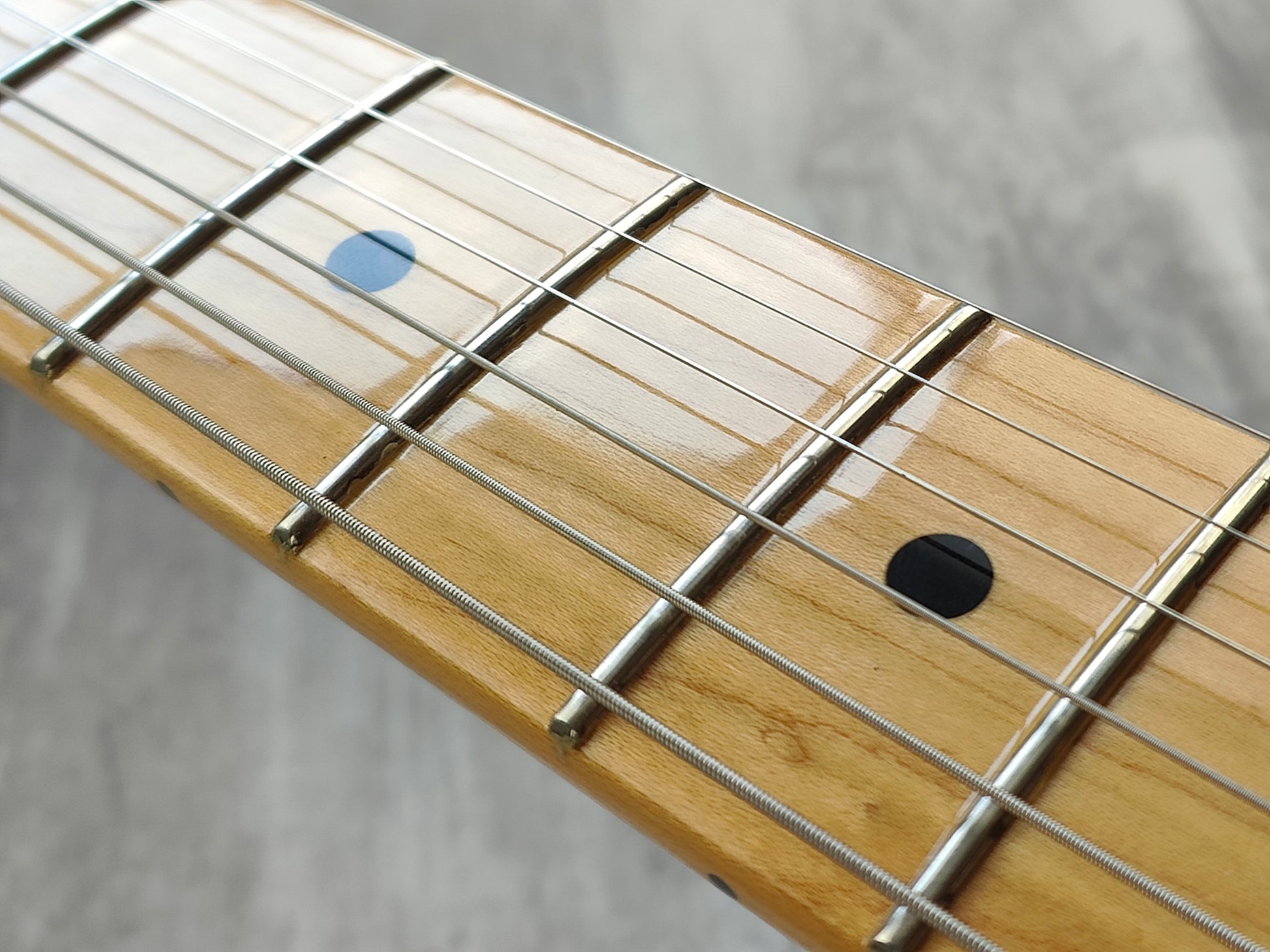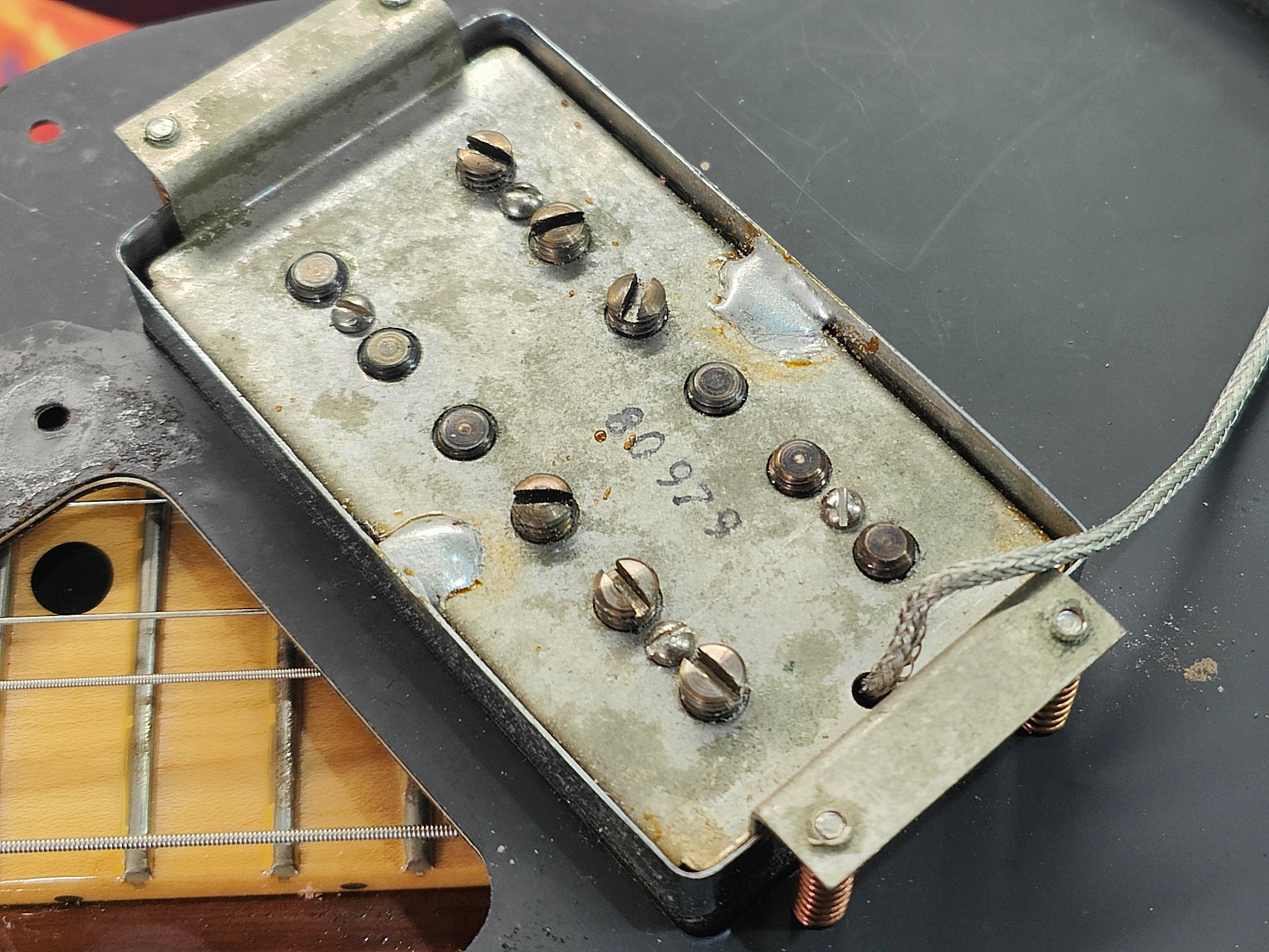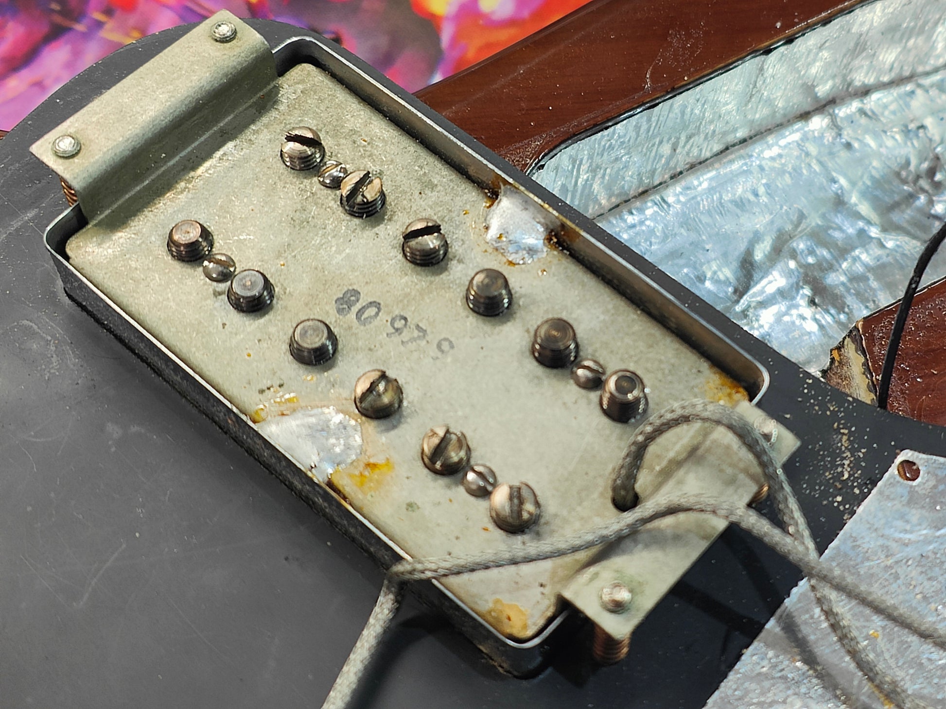In terms of hardware the guitar seems close to all original except for the switch tip and some new knobs. The Seth Lover wide-range humbuckers sound perfectly and the original pots and wiring have no cracking when in use. The three-bolt neck with micro-tilt system works as it should and the original F stamped tuners and hardtail bridge keep it tuned and intonated.