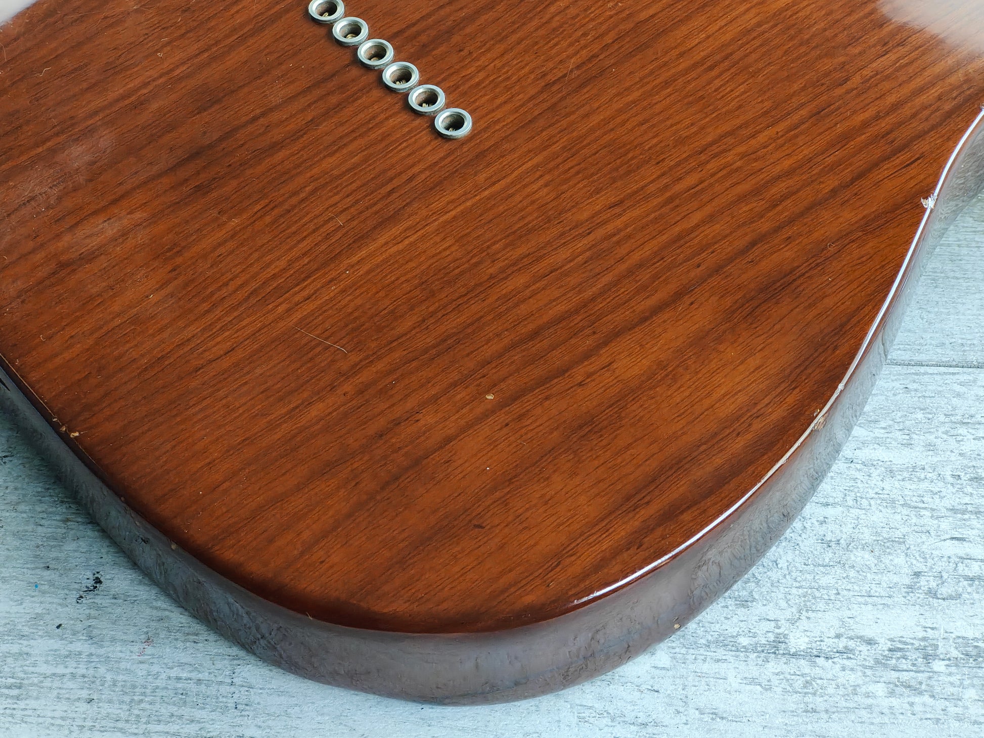 American made in 1978, this is an incredibly nice example of a Fender Thinline Telecaster that would suit both players and collectors. Chambered two-piece alder body with the timeless "Mocha" finish bolted to a nice chunky medium D profile maple neck (42mm nut width), it weighs 3.7kg's. The guitar was recently with Frank Grubisa (one of Australia's best) for a refret including levelling the fingerboard radius to a perfect 7.25" before having some medium-jumbo frets installed and re-lacquering the board so it looks almost factory fresh.
