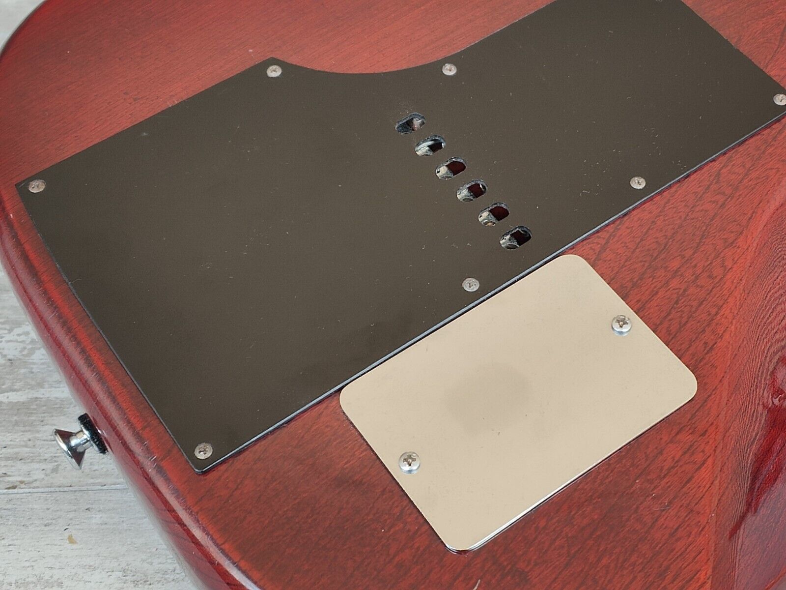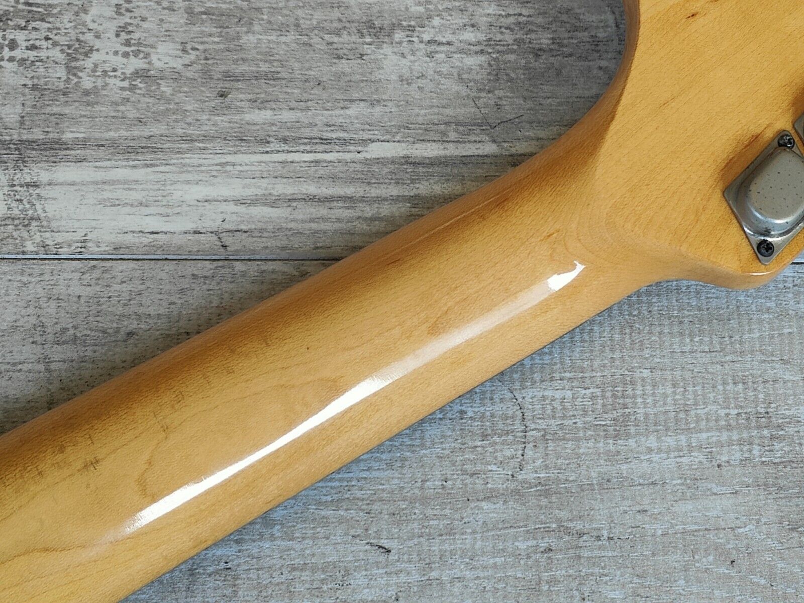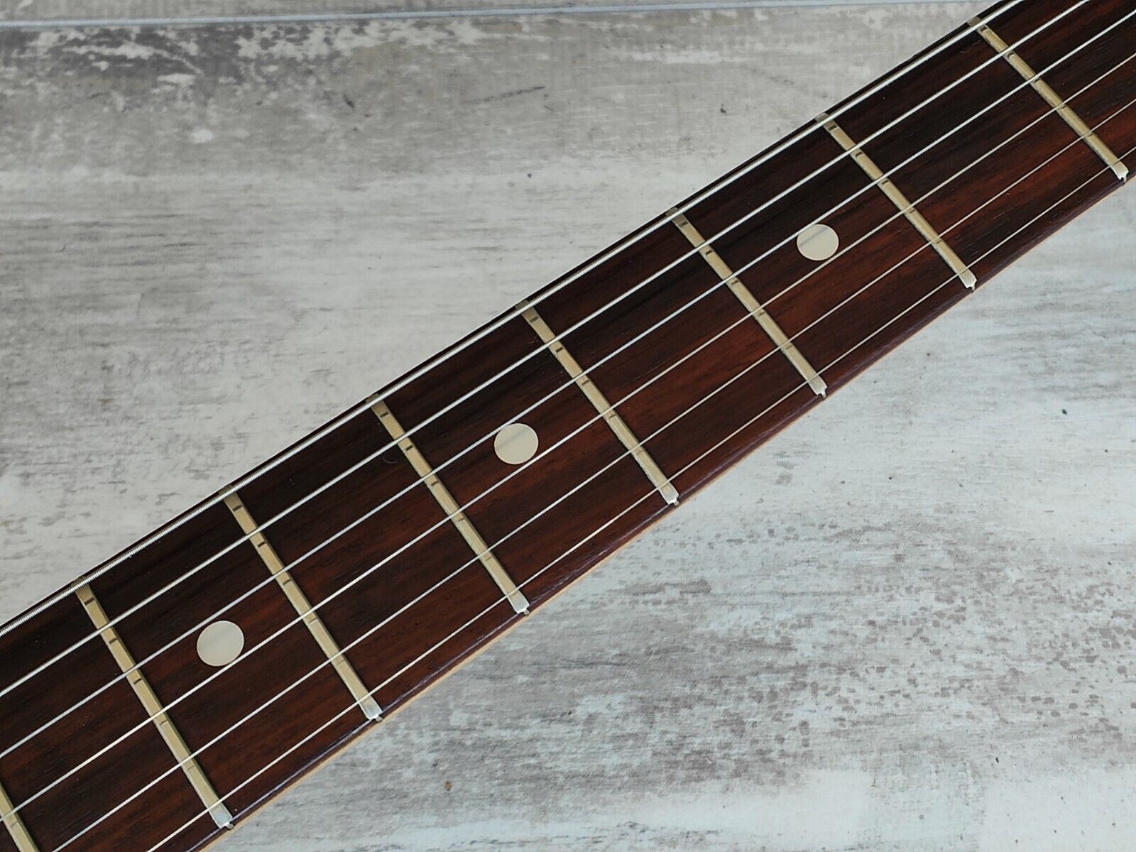 This one appears to be all original both inside and out with all the effects working exactly as they should and the guitar itself playing very nicely. The neck is straight and the truss adjusts as it should with a straight, smooth neck. There's life left in the original vintage frets and they play well as they sit.