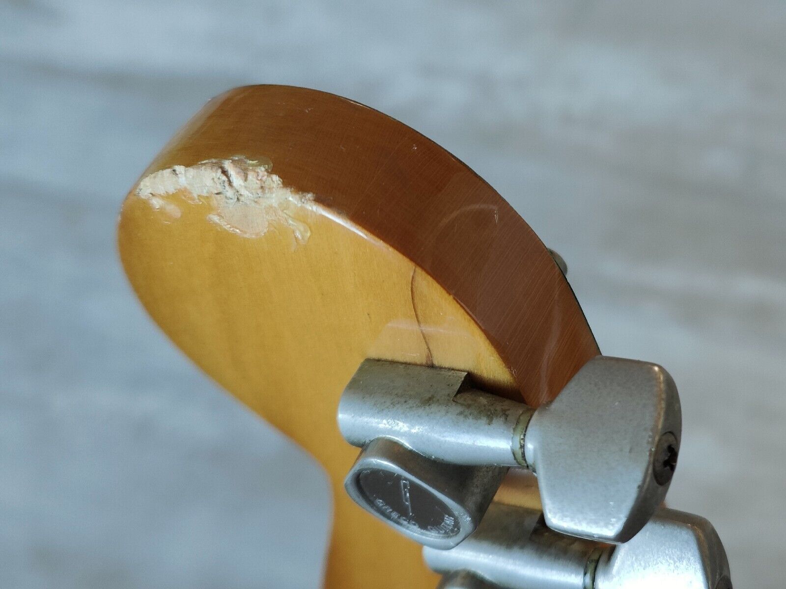 Good cosmetic condition as pictured with light wear and tear, these metallic models commonly have chips in the finish and this one's no exception. Given a full professional service prior to listing including a full fret level/crown/polish, truss adjustment, electronics flush and setup. The neck is straight and the truss works as it should. Has a purely aesthetic line along the back of the headstock along the tuner holes, no signs of it being a crack as it doesn't appear on the side of the headstock as pictured.