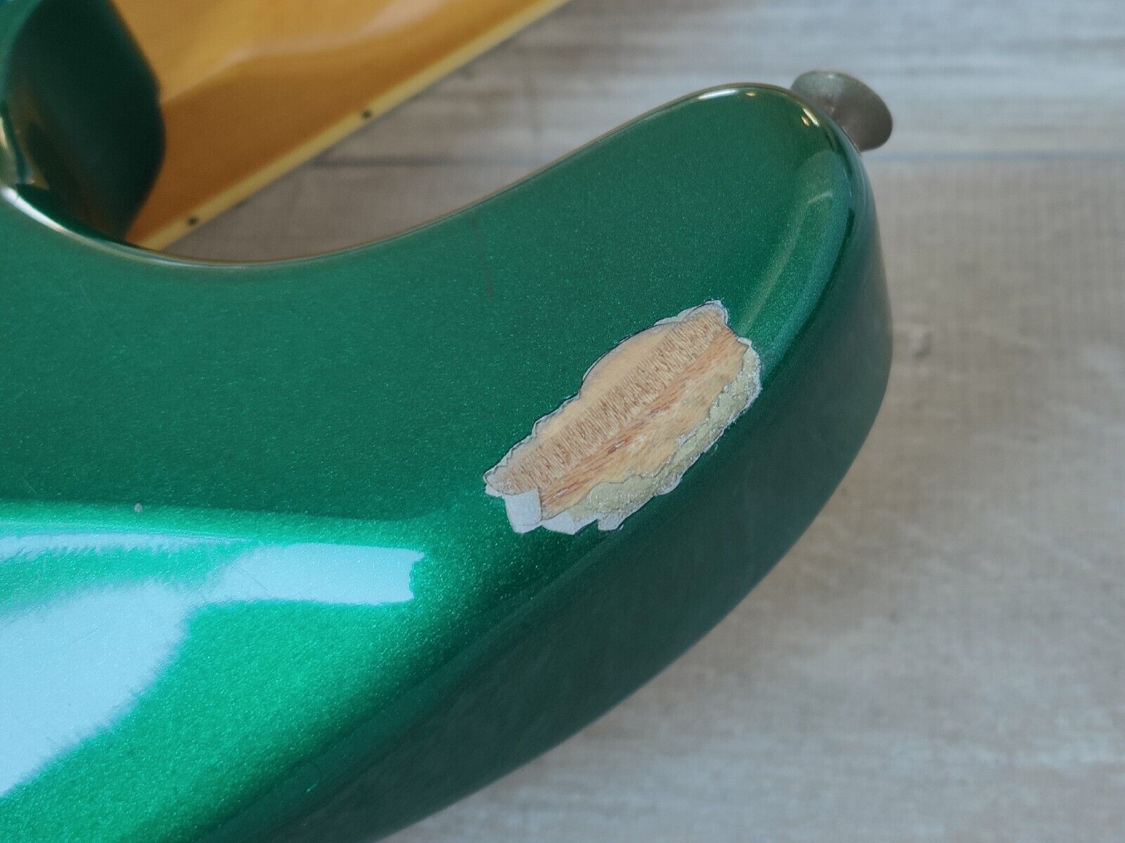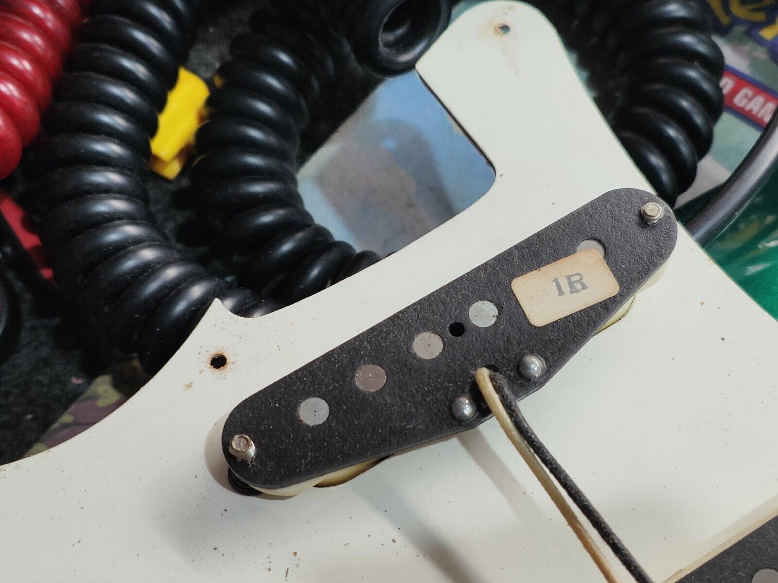 Sherwood Green Metallic finish with a matching '54 style headstock, it features an alder body with a slim C profile maple neck and bound 21 fret maple fingerboard, weighs 3.6kg's. Loaded with the original Greco stamped tuners and six-point tremolo along with the original factory Vandzandt single coils in the bridge and middle and a Seymour Duncan in the neck position (IR stickered).