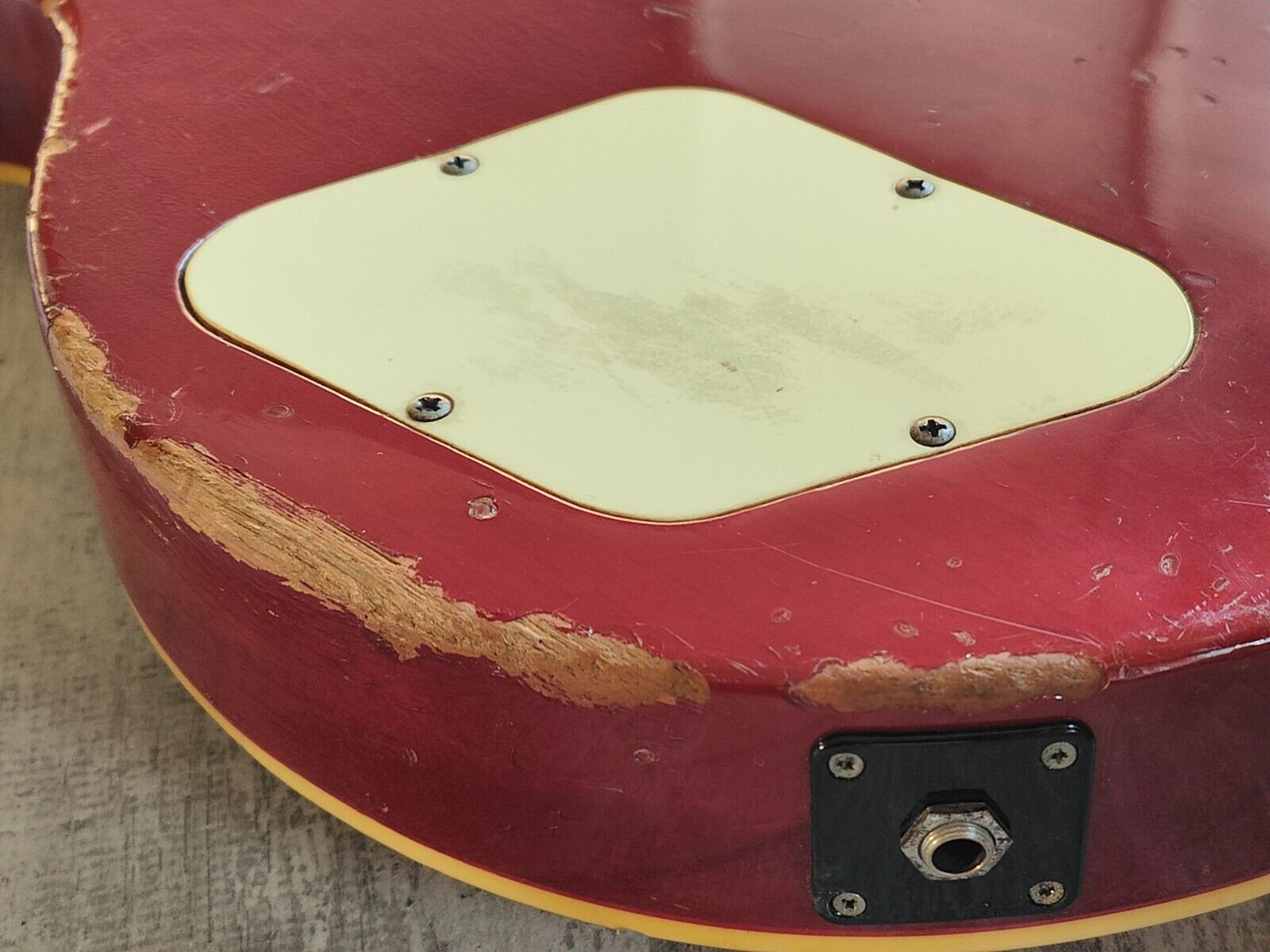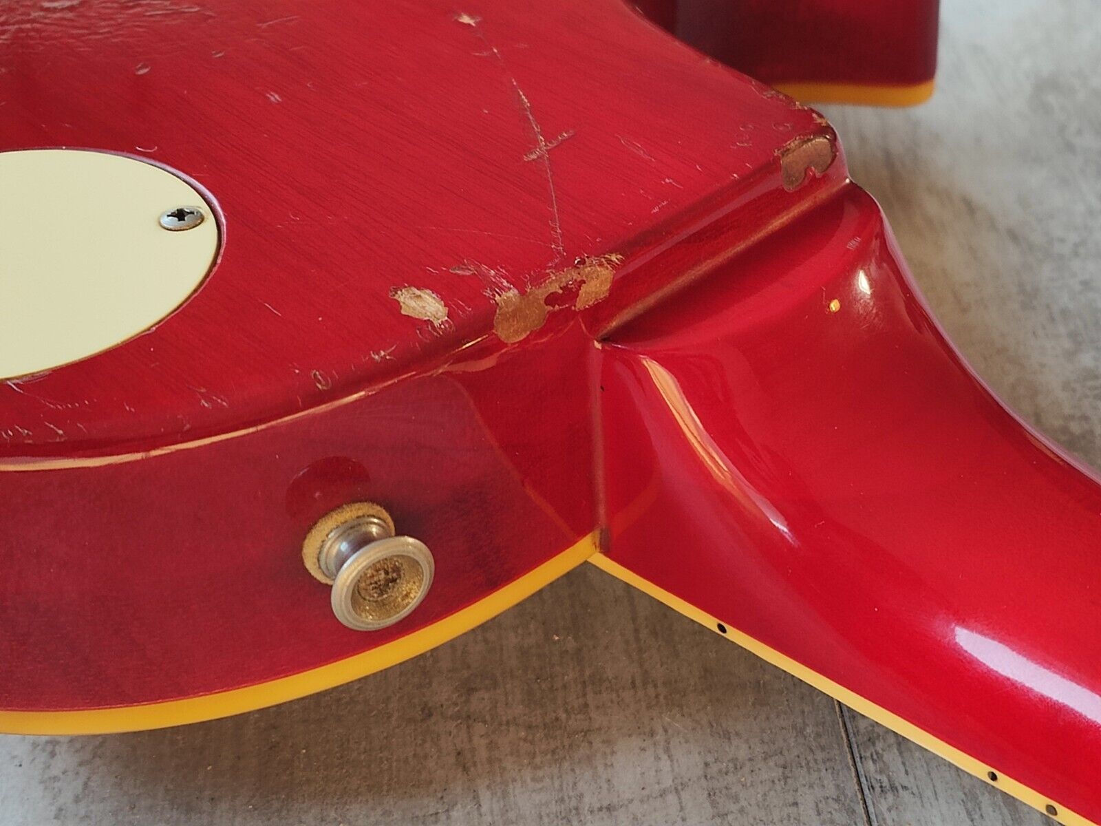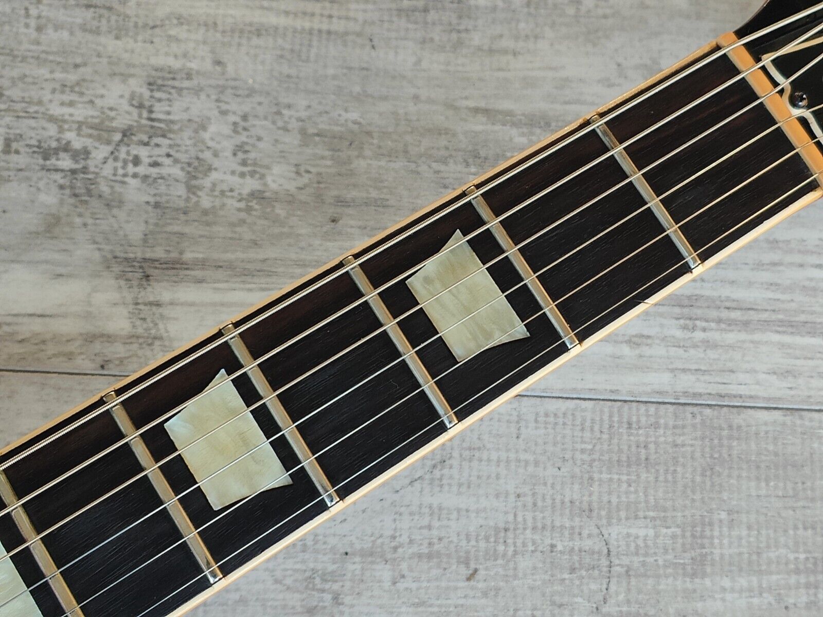 Made in Japan by the Fujigen factory in 1978, this Greco EG-500 features a sycamore top with a two-piece mahogany back and three-piece maple neck and weighs just over 4kg's. This one's loaded with the original Greco branded tuners and Japanese bridge/tailpiece along with a pair of replacement unbranded humbuckers and new knobs1