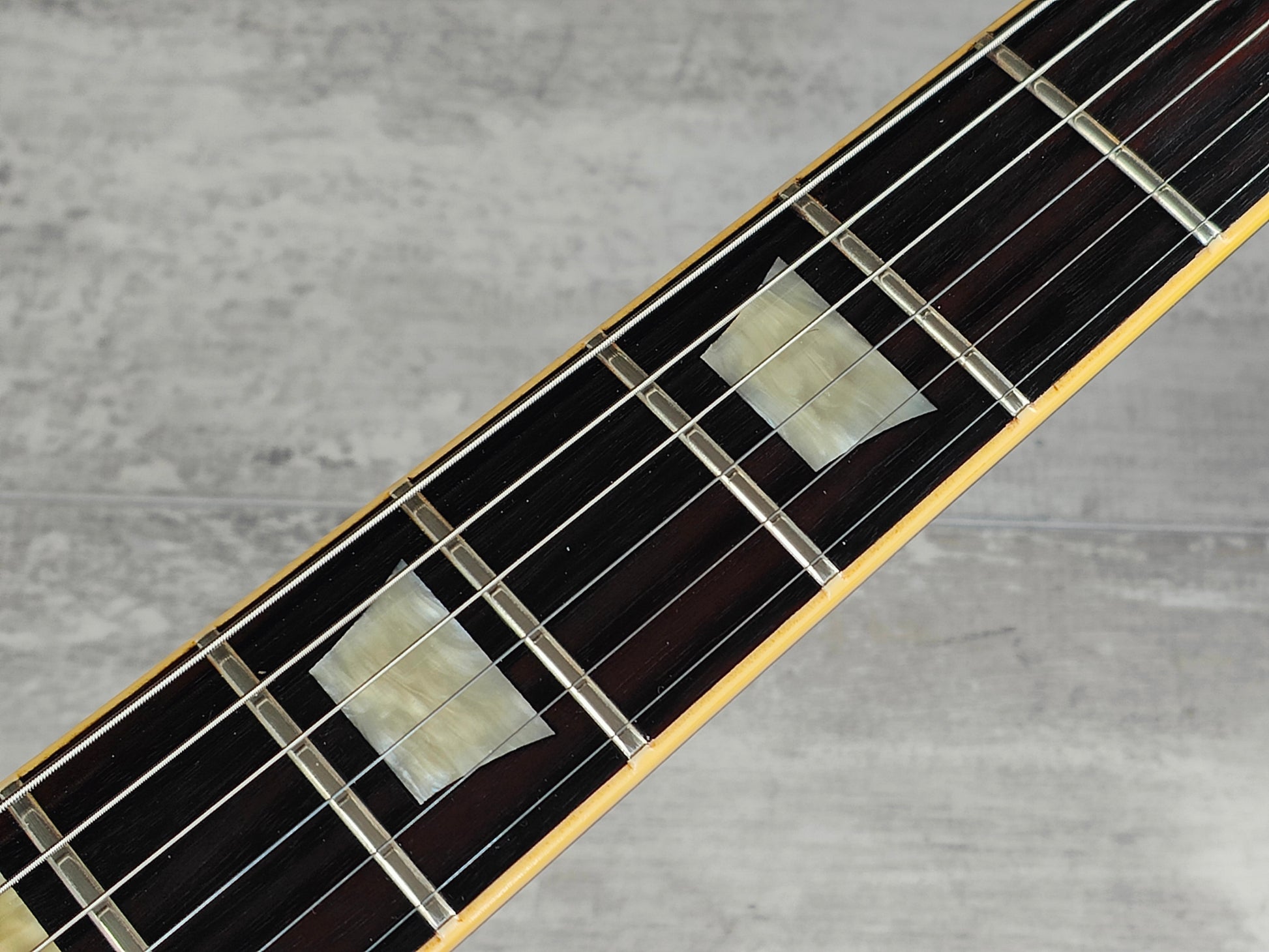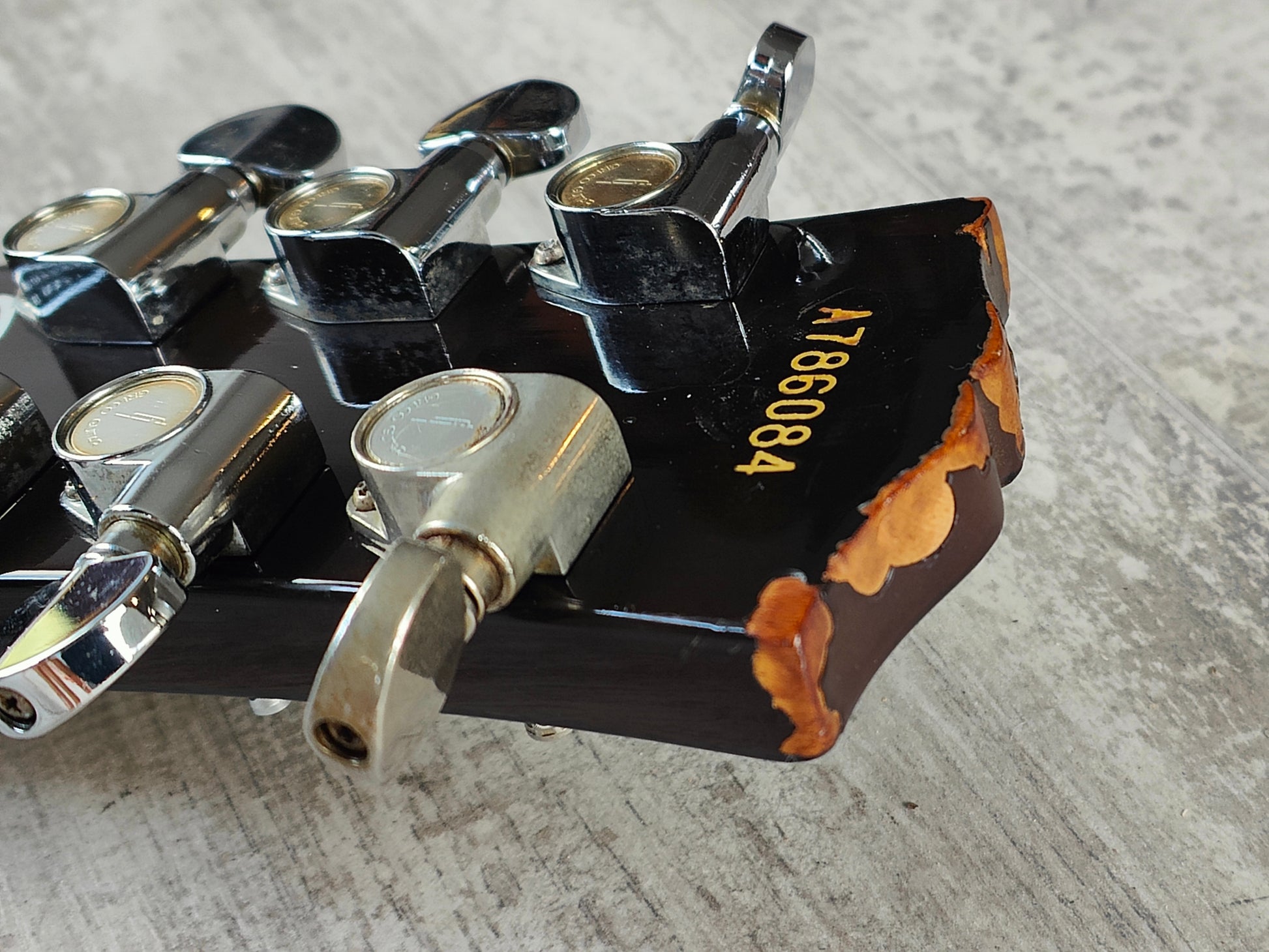 Made by the Fujigen factory in early 1978, the EG-900 was one of Greco's higher end Les Paul Standard models. Built with a mahogany body, maple top, slim 60's neck profile, a bound striped rosewood fingerboard and weighs 4.4kg's. Loaded with the original factory loaded Dimarzio PAF humbuckers in the neck position and an aftermarket Dimarzio DP151 PAF Pro in the bridge. The Greco branded tuners and Japanese hardware are tidy and working as they should.