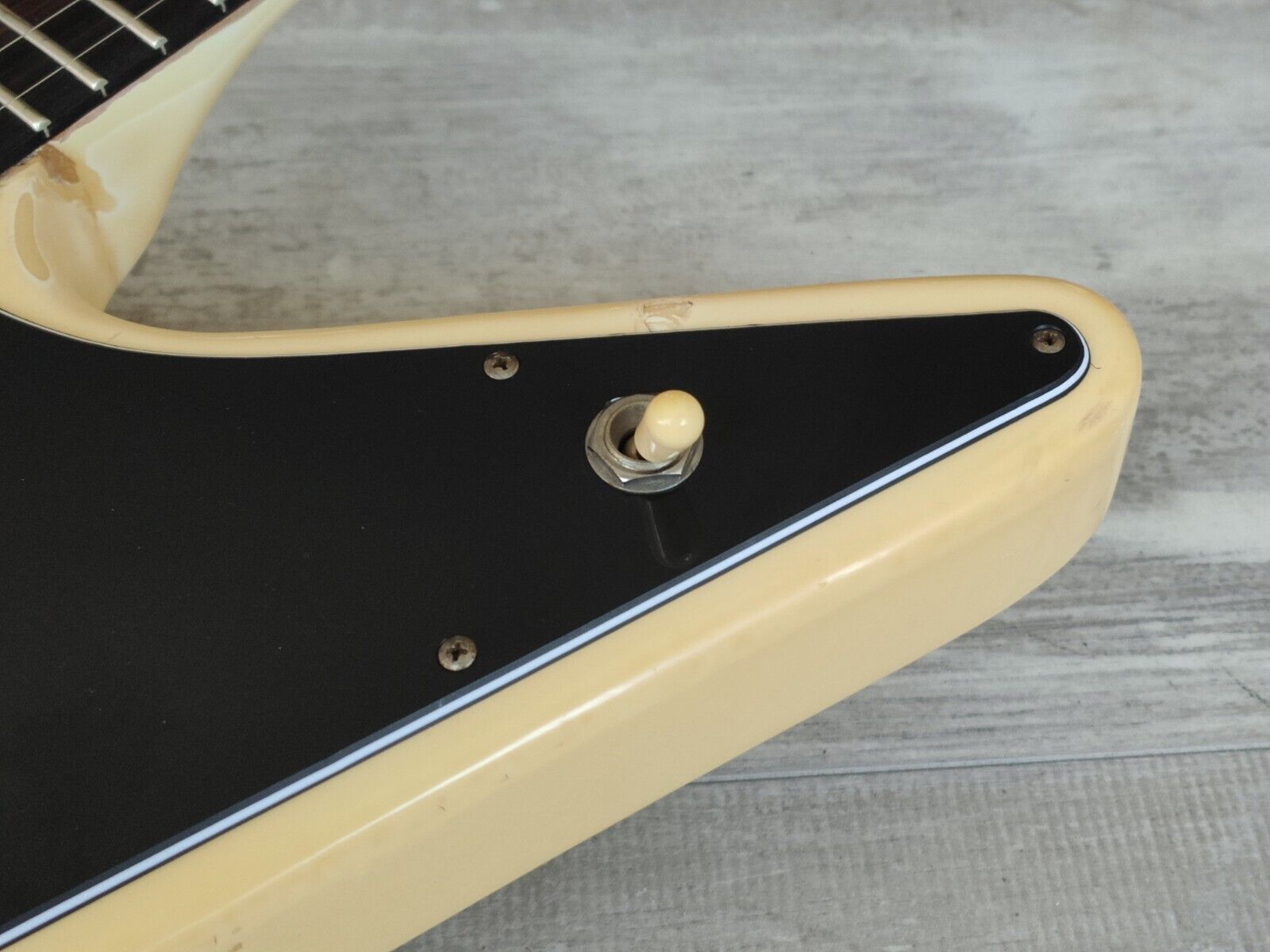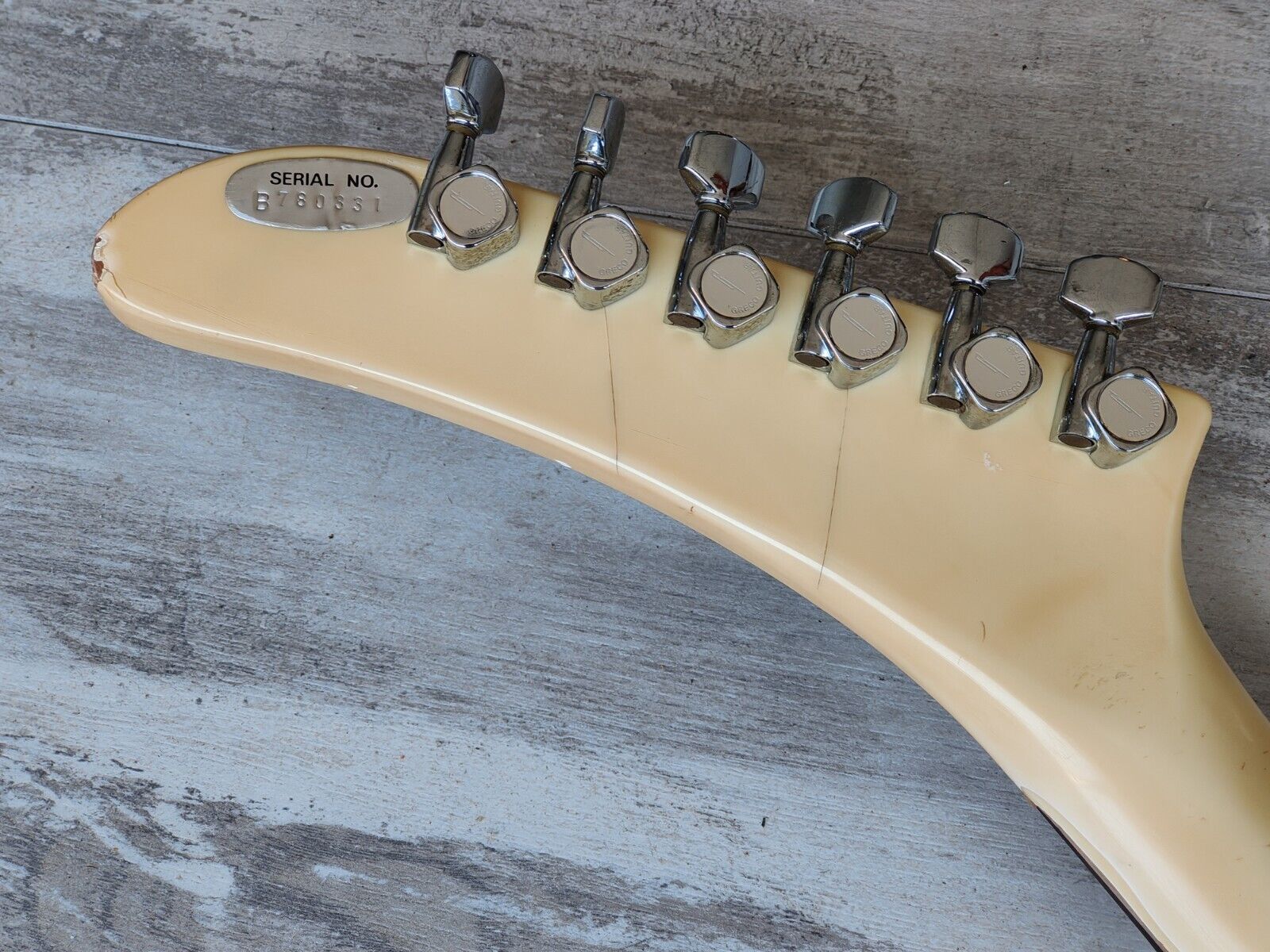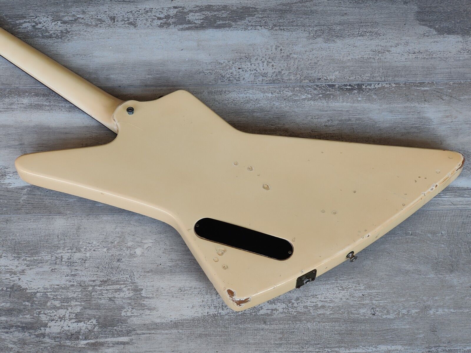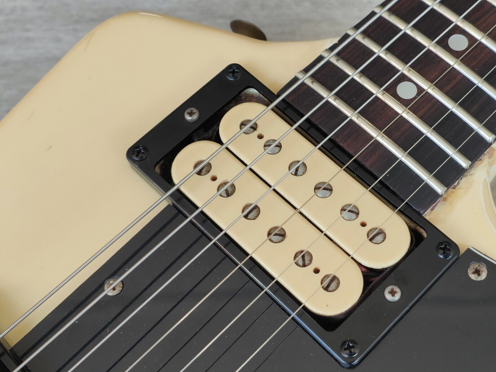 Made by the Fujigen in February of 1978, the EX800W was a non-catalog variant of the Greco EX range to feature a white finish. Sen (ash) body with a maple neck and a 22 fret rosewood fingerboard (9.5" radius, 44mm nut width), it weighs 3.9kg's. Loaded with the original Maxon PU humbuckers and Greco stamped tuners.