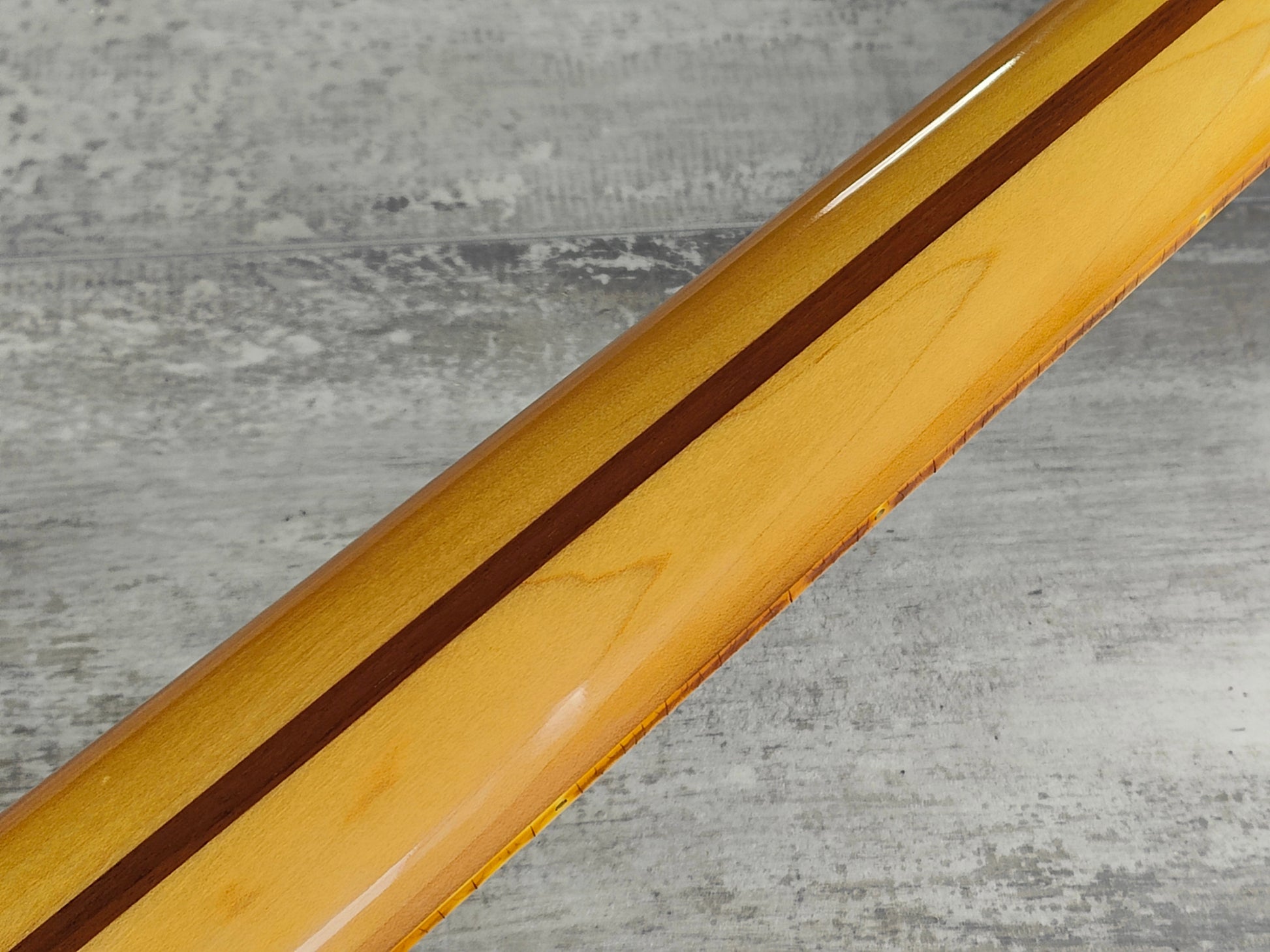 Cosmetically this one's in reasonably good condition with a few bumps and dings, the binding along the fretboard has aged and is cracking but still seems to be solid at the moment and isn't overly rough to play. The truss works perfectly and the neck is straight, the frets are shiny and smooth with plenty of life left. The original pots are slightly crackly when turned but still function as they should.