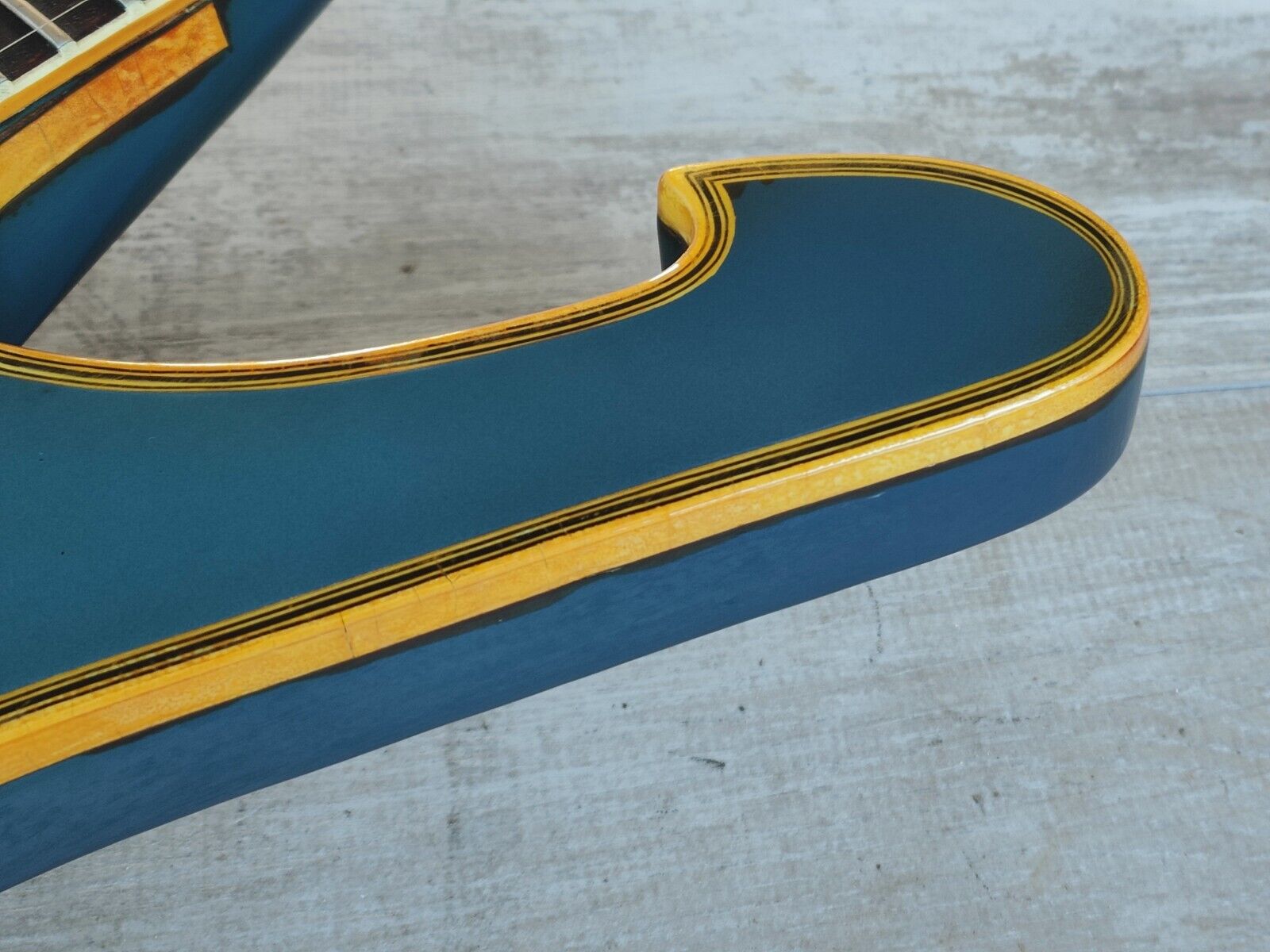 Made by the Fujigen in May of 1978, the MS-1000 was Greco's flagship Mirage/Iceman model identical to the guitar played by Rick Nielsen at the famous Budokan shows in 1979. Mahogany body with a slim 60's profile neck and a 22 fret rosewood fingerboard (44mm nut width, 628mm nut width), it weighs 3.9kg's. Loaded with the original Greco PU-0 pickups, Greco PAT tuners and the original harmonica bridge and ornate tailpiece.