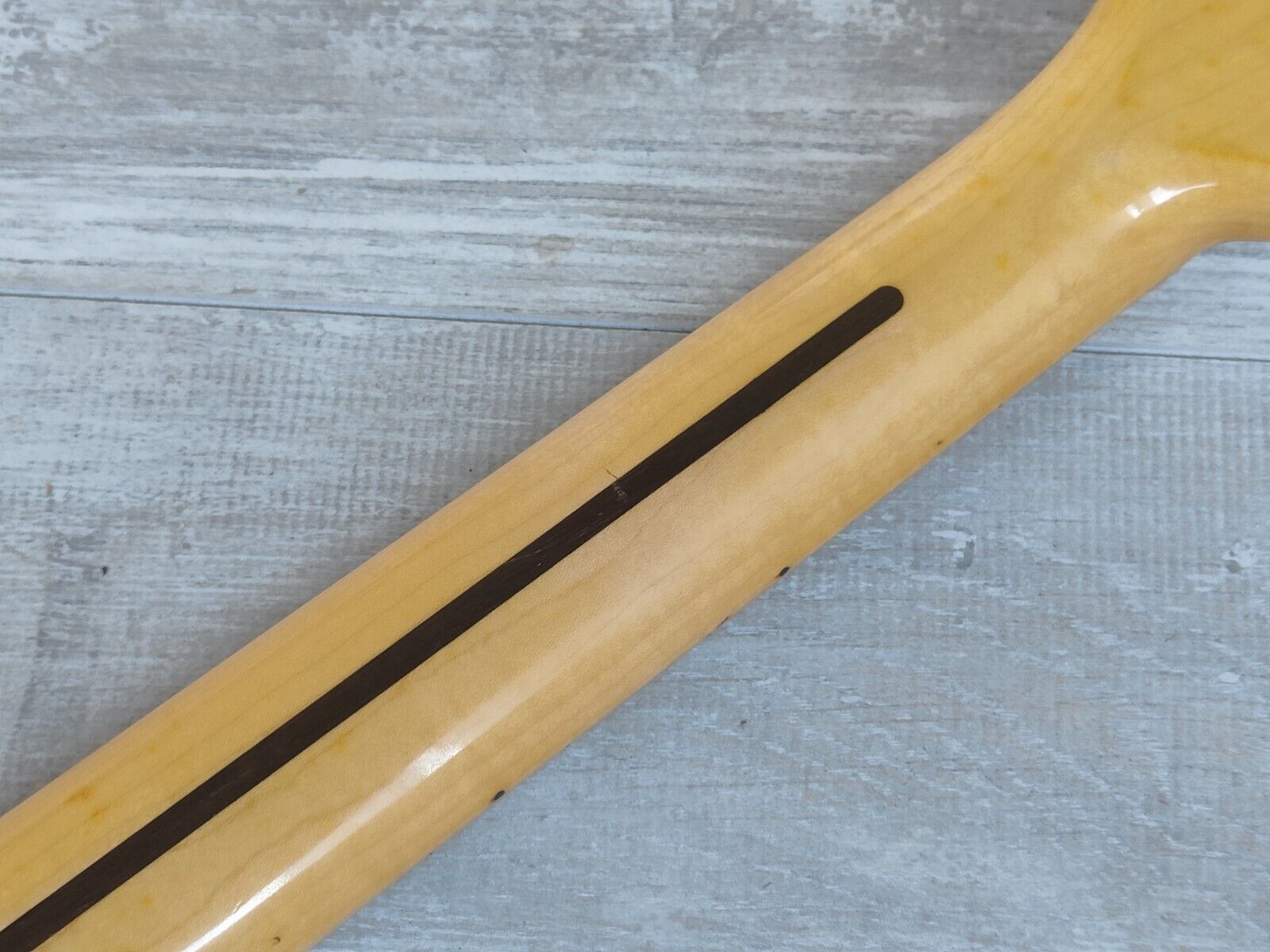 Given a basic service and restring prior to listing, frets are low but are polished and play smoothly and the neck is straight with a fully functional truss. Cosmetically it's showing some signs of wear including some buckle rash on the back of the body but there's no breaks or repairs.