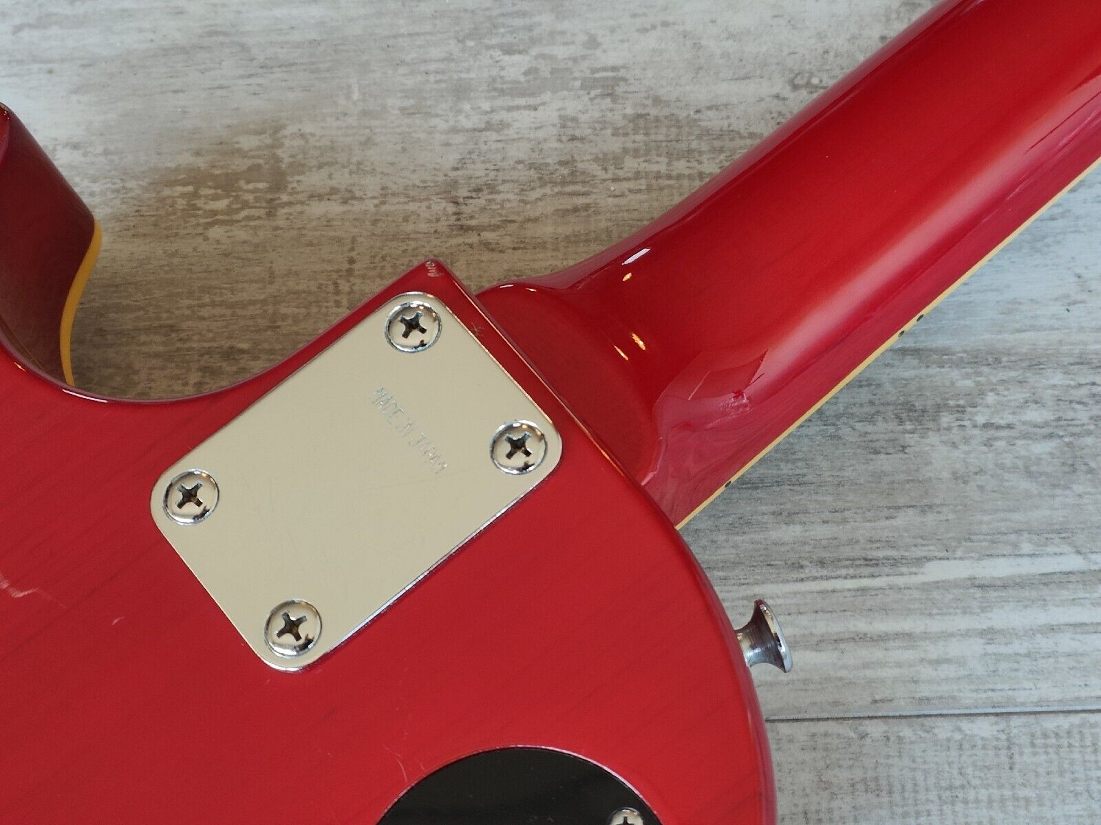 Made in Japan by Yamaha in the late 1970's, the SL-380 was the entry level Les Paul model in the SL series. Maple top with a cherry sunburst finish, bolt-on maple neck with a 22 fret rosewood fingerboard (13.75" radius, slim 60's profile), weighs 4.2kg's. Yamaha L2 humbuckers with Grover-style Yamaha stamped tuners, it appears all original.