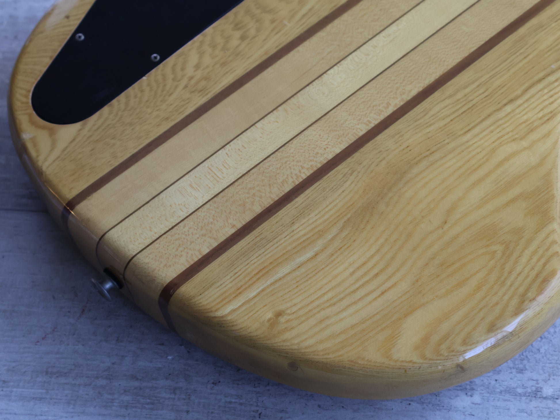 Good used condition with a few light bumps and dings as pictured, some light scratches and play-wear on the neck and body. Restrung and given a basic setup/service prior to listing including a truss adjustment and fret polish. There's some finish missing on the back of the neck that was buffed back and feels smooth with no jagged edges that impact on playing.