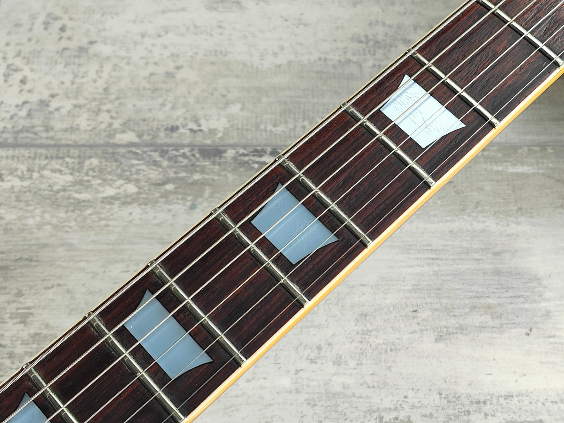 Made by the Fujigen factory in late 1979, the EG-500 wore Greco's "original" headstock design that was aimed at avoiding any kind of legal issues. Built with a sycamore body, plain maple top, slim 60's neck profile, a bound rosewood fingerboard, it weighs 4.1kg's.