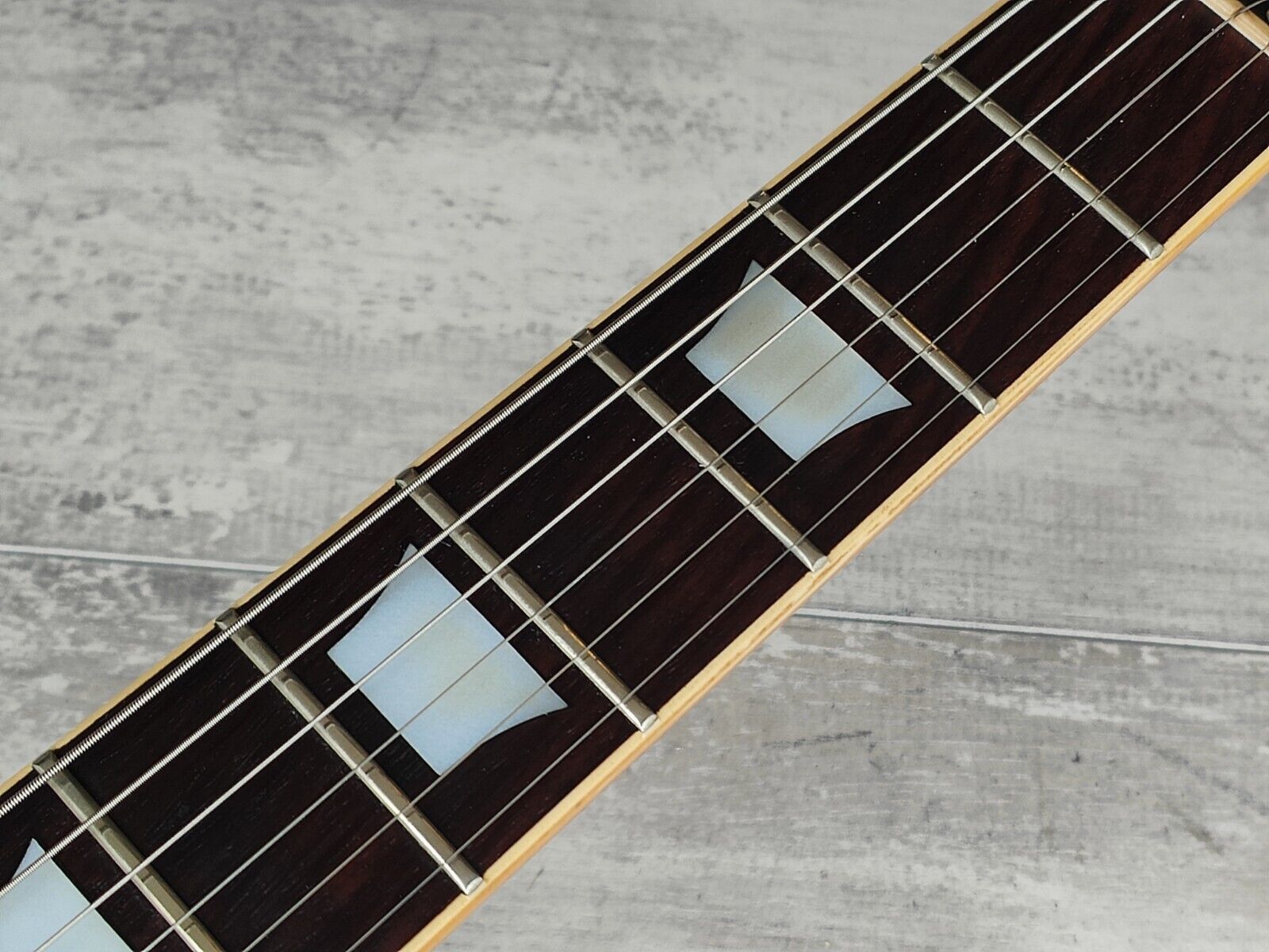 Made in Japan in 1979, the SL500 was a mid-range Les Paul Standard model from Yamaha's Studio Lord series. Agathis body with a maple top set to a slim 60's style maple neck with a 22 fret rosewood fingerboard (trapezoid inlays, 13.75" radius, 43mm nut width), it weighs 4.2kg's. Chrome hardware including Yamaha branded tuners and L2 humbuckers, this one appears to be all original except for the missing pickguard.