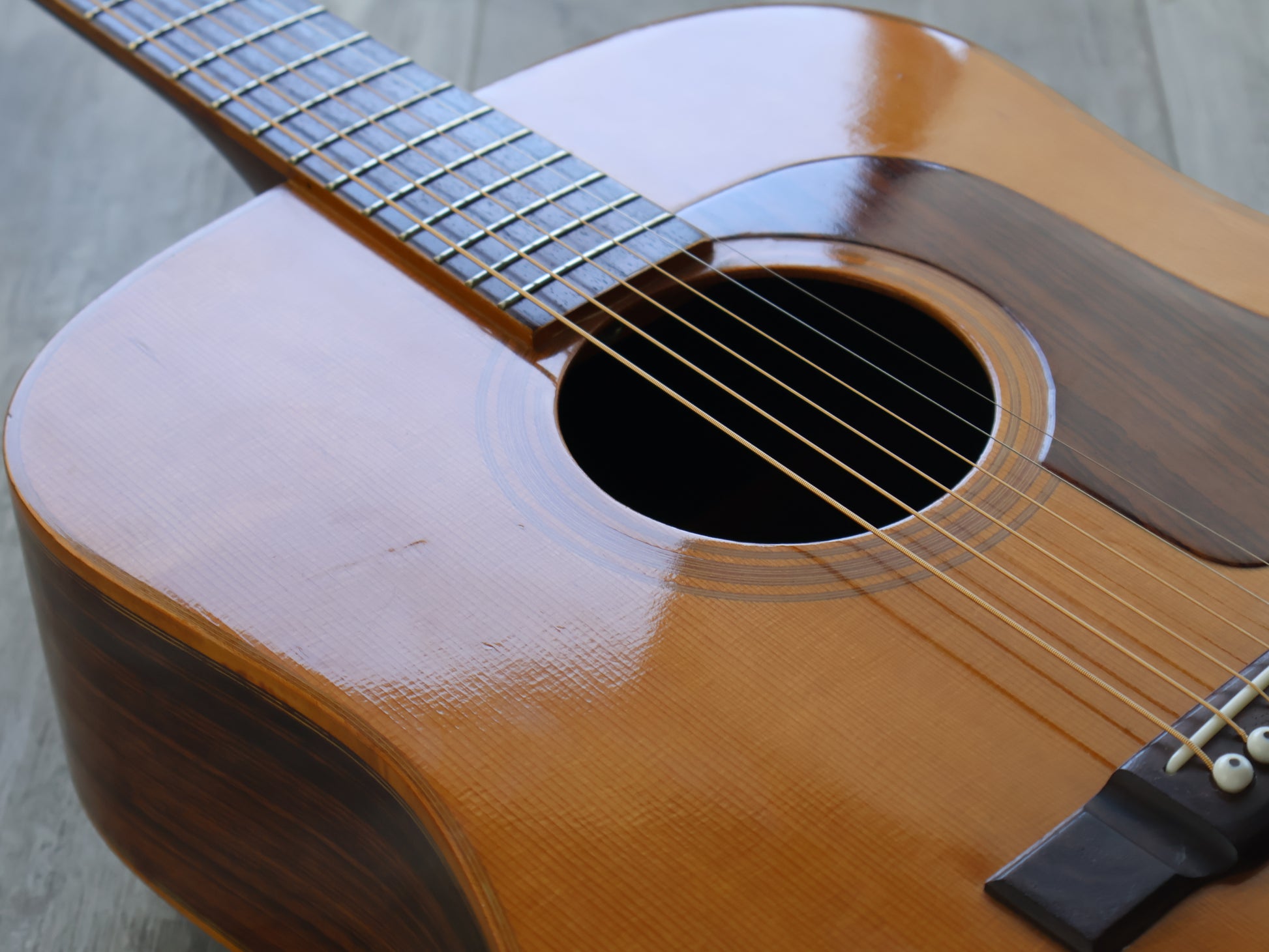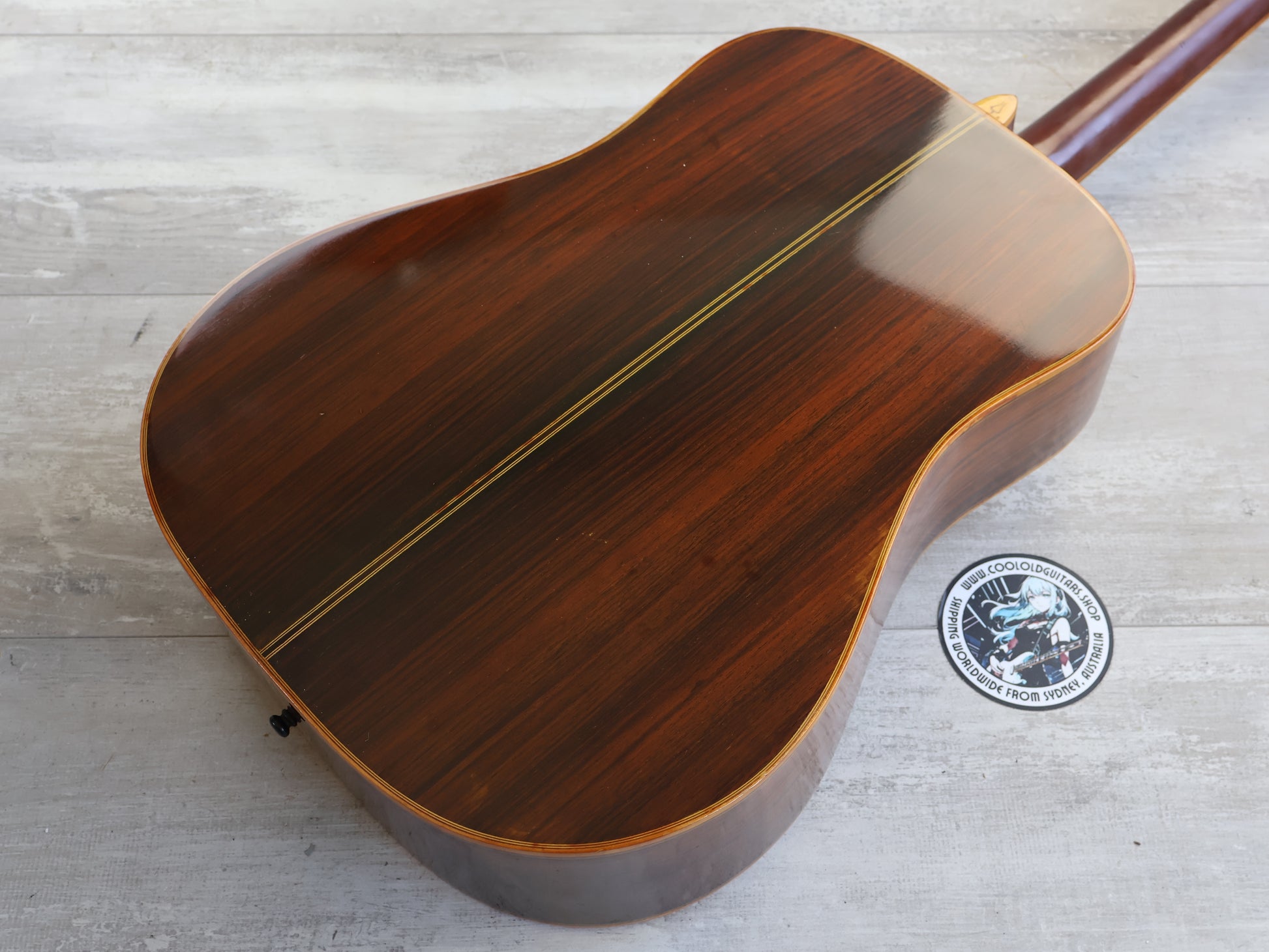 Part of the high end Woodcraft Series from Yamaki's 1979 catalog, the Y-70D is a fully solid dreadnought aimed to replicate the famous Martin models of the same era. If you're looking for a higher end Japanese acoustic from the 1970's without the typical laminate construction then this is one of the nicest available.